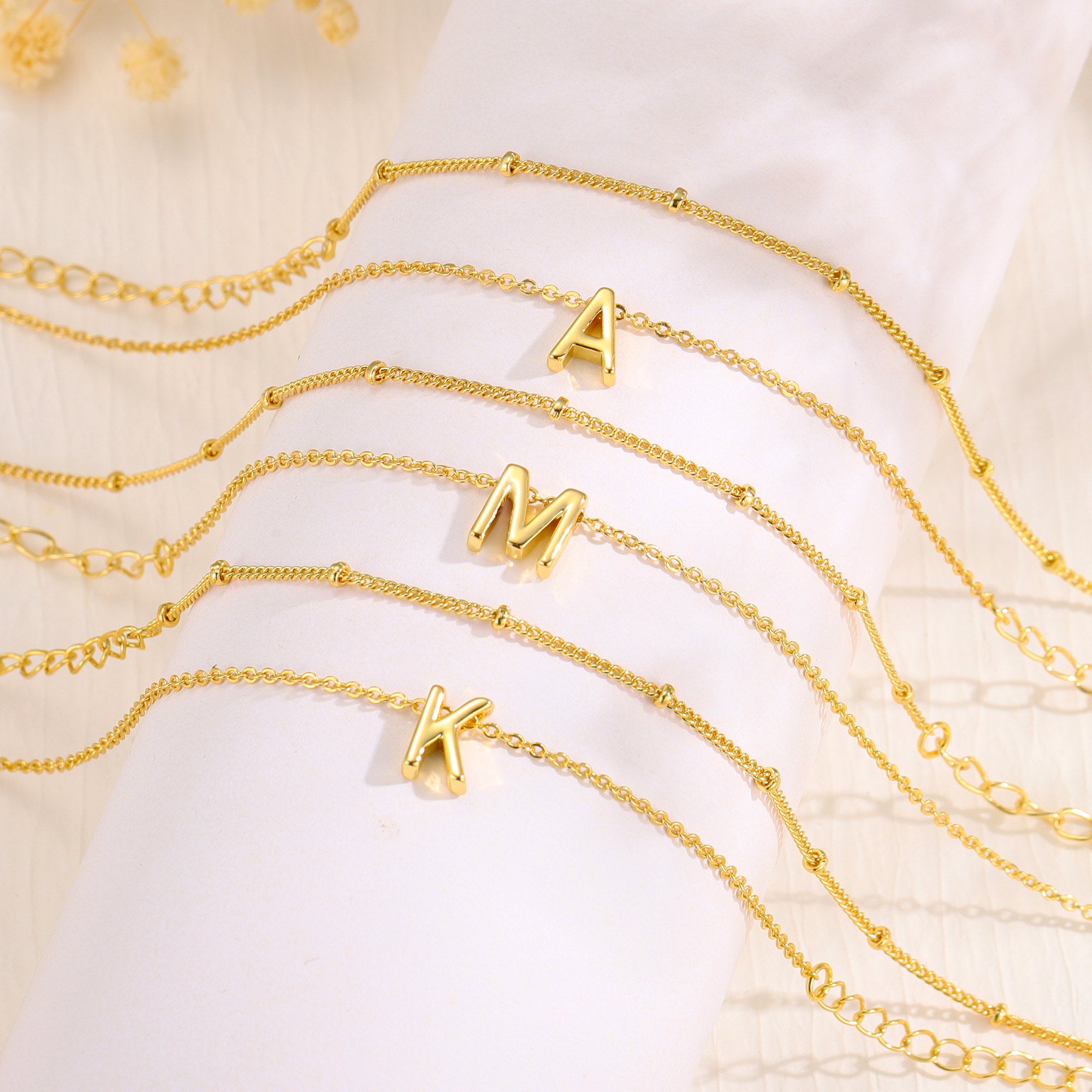 This dainty gold initial layered bracelet features 18K real gold plating for lasting shine and is hypoallergenic. Adjustable at 6" + 2", it's a perfect gift in a beautiful box for any occasion. Enjoy our 60-day return policy!