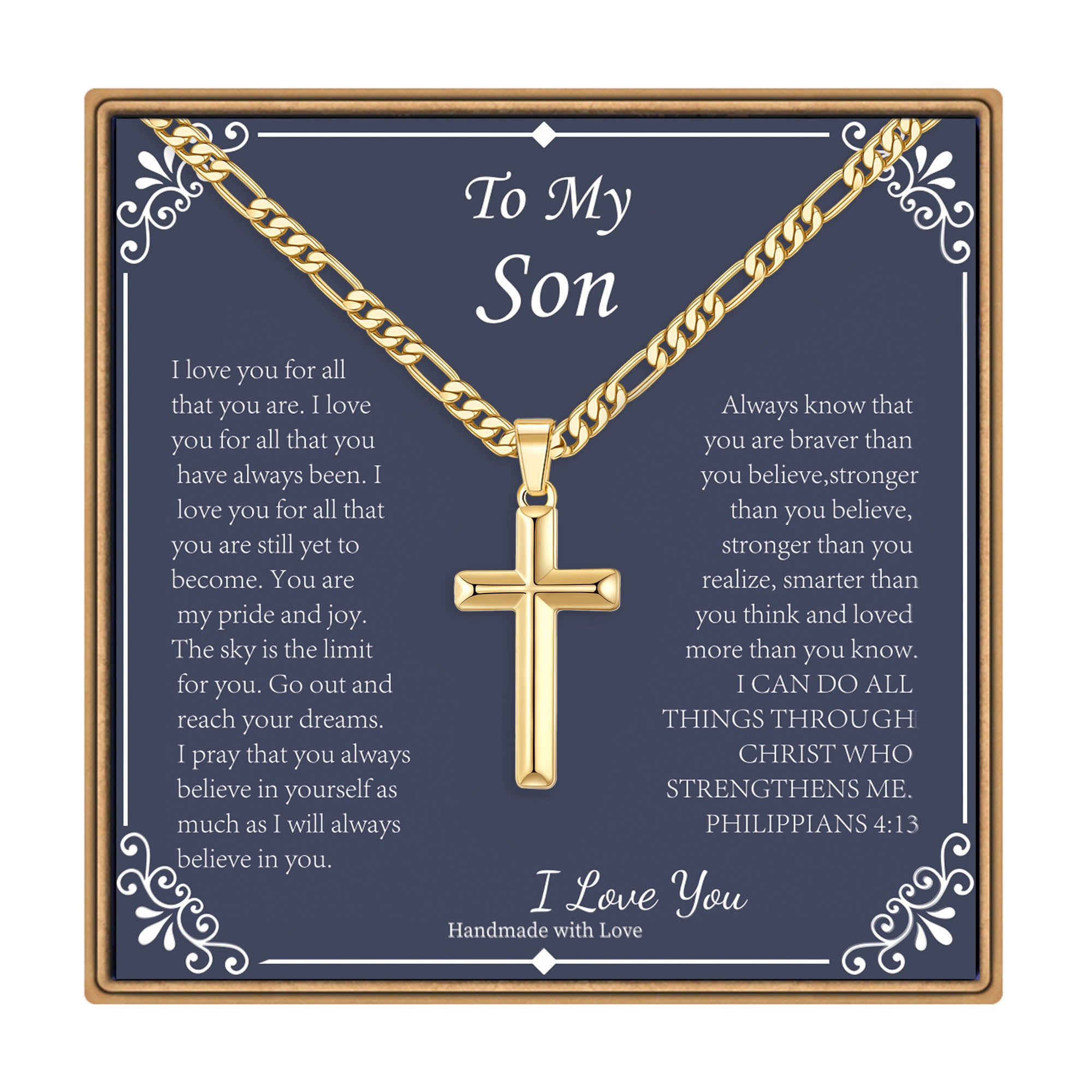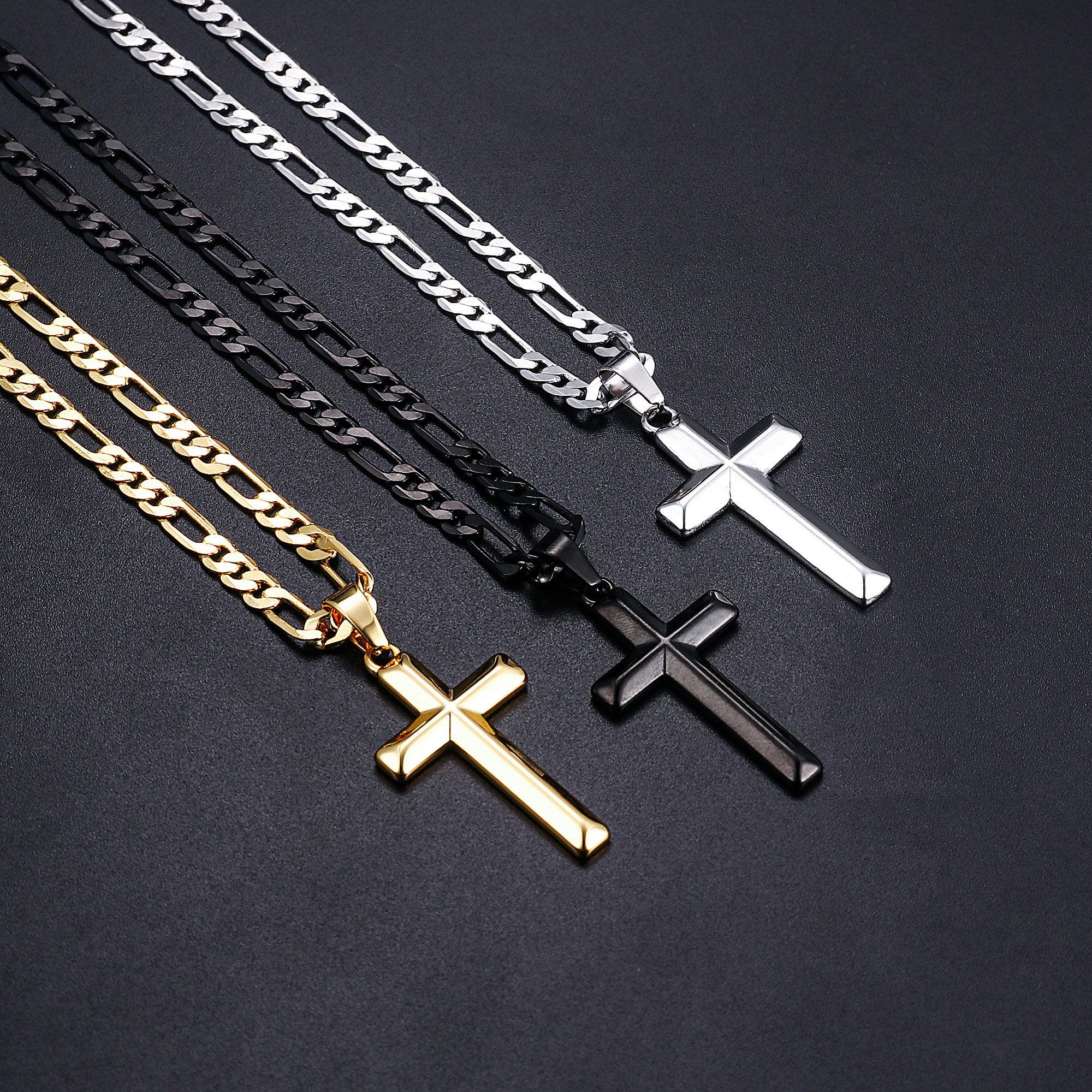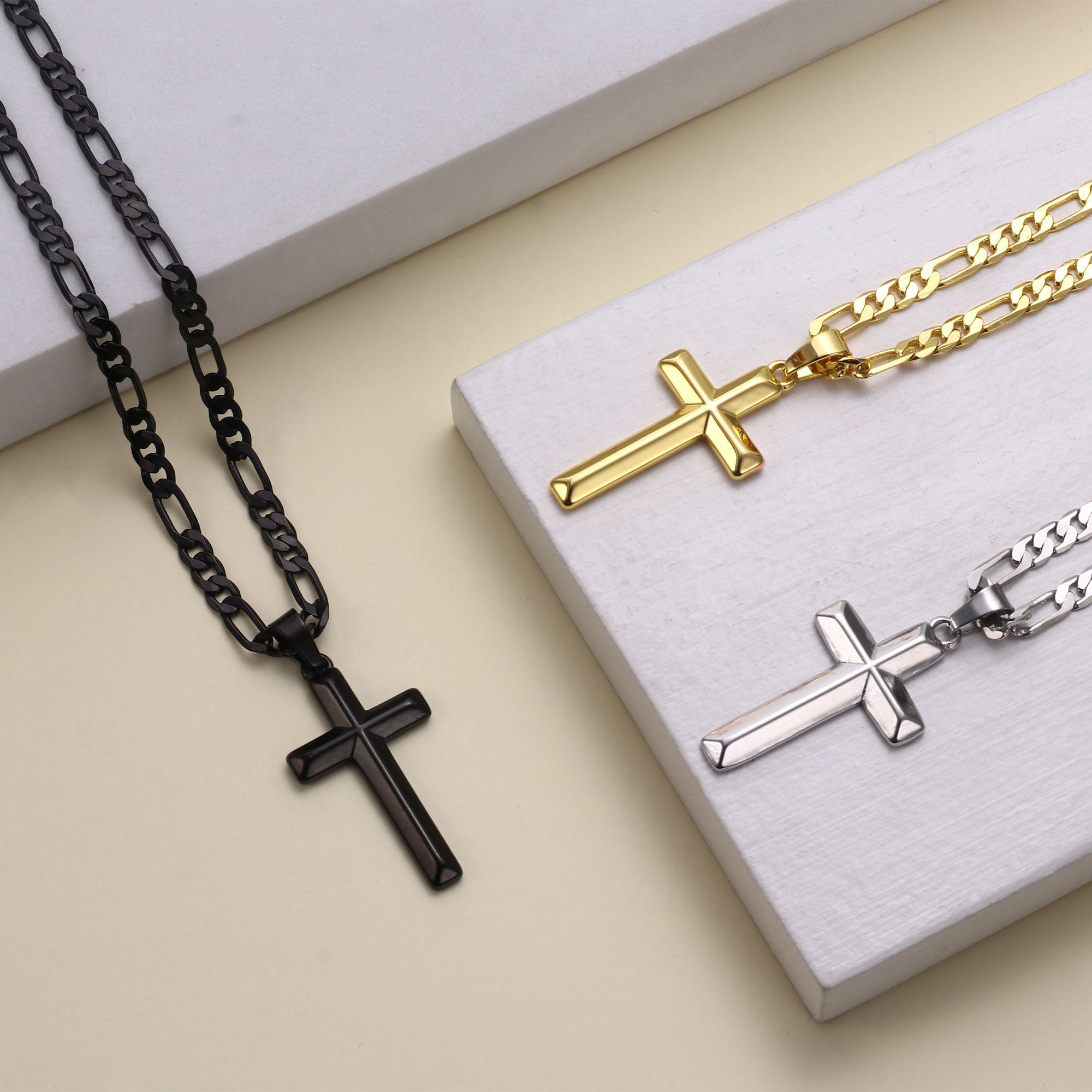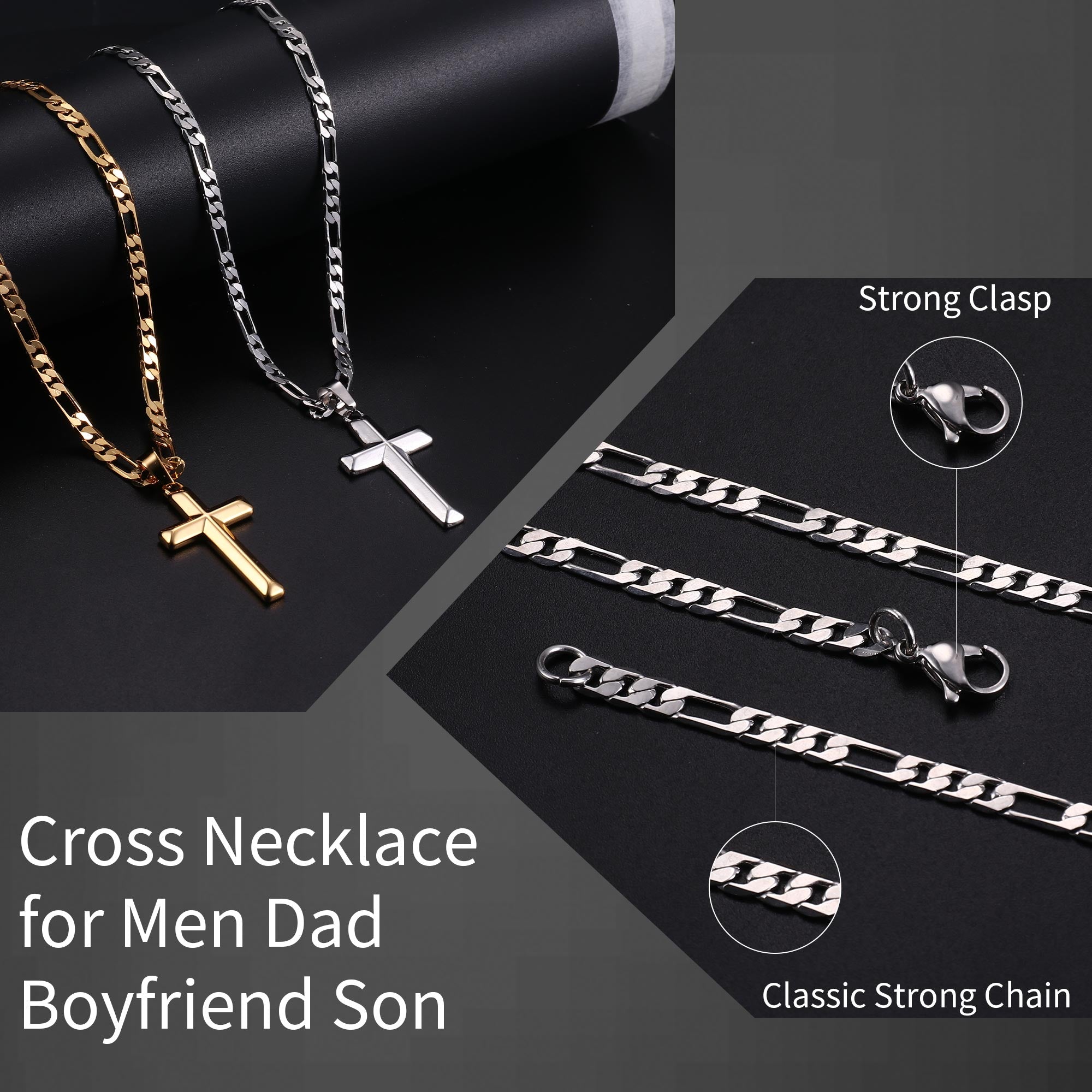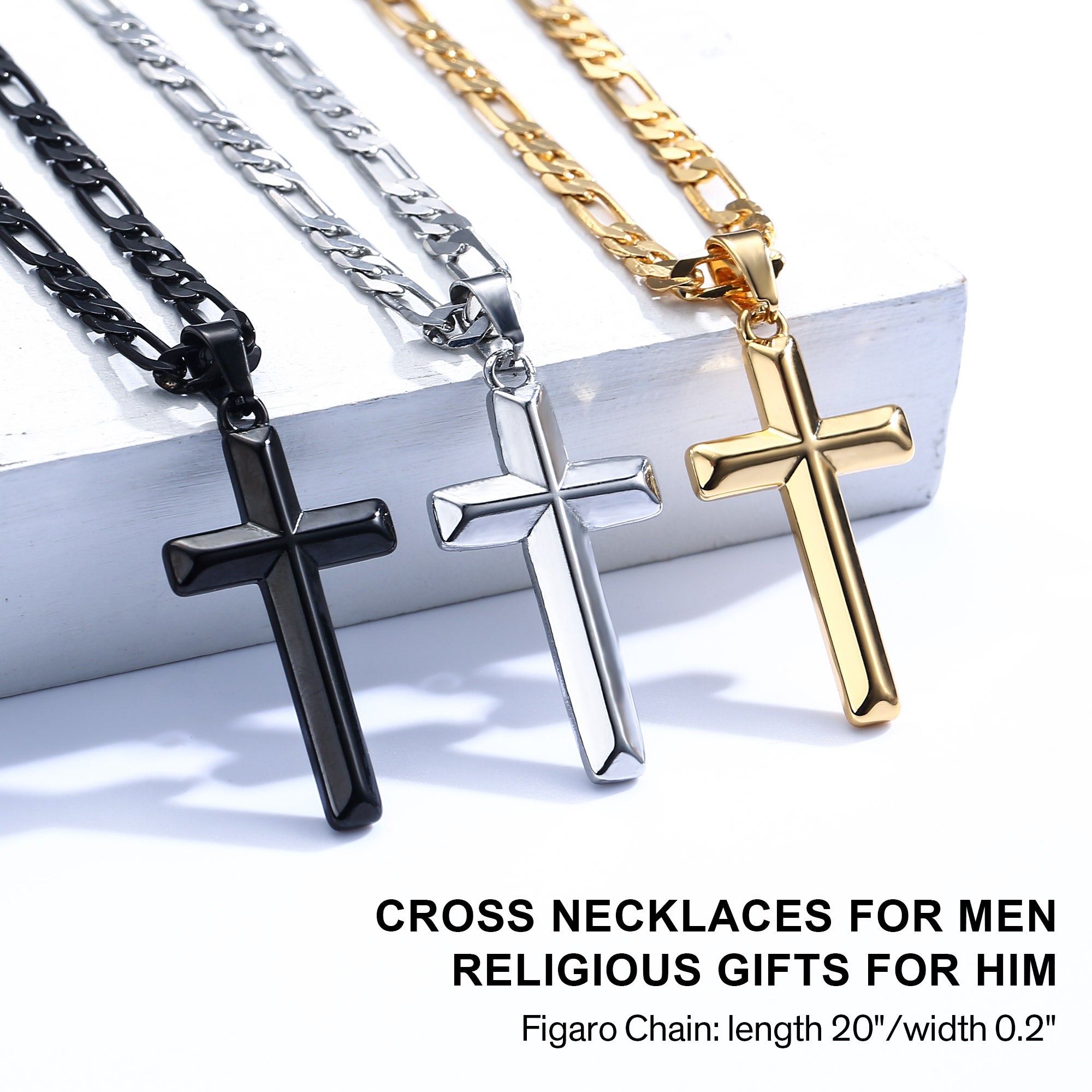 Introducing this cross necklace for men boys, crafted specifically for the modern man?aits simple, rugged design and diverse color options perfectly capture a man's fortitude and strength of faith. Crafted from high-quality stainless steel, this cross pendant necklace available in three stylish colors: gold, silver, and black. Not only is it comfortable and hypoallergenic, it also offers exceptional wear resistance and a long-lasting luster, ensuring it maintains its pristine appearance even with extended wear.