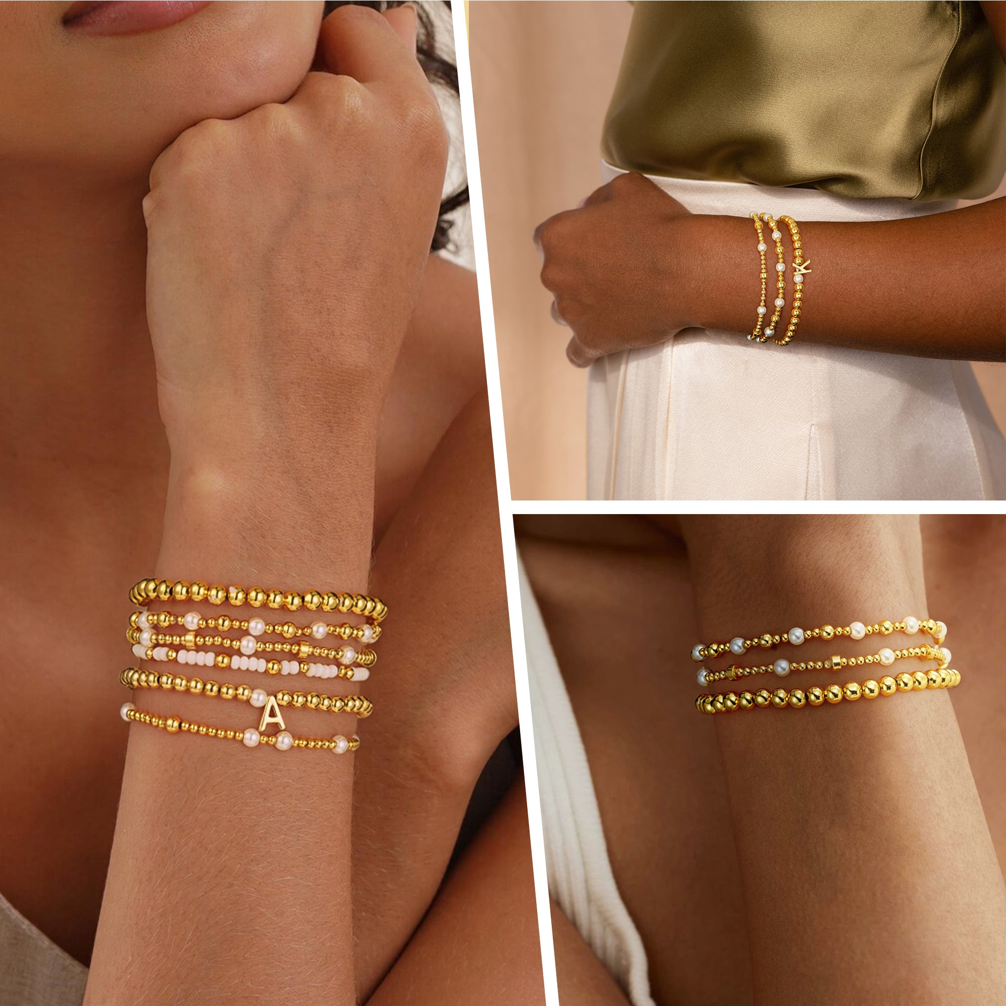 Our exquisite craftsmanship ensures the superior quality of each stacked bracelets for women. The 18K gold plating is applied through a five-layer electroplating process to ensure a long-lasting, brilliant color. Each copper bead is carefully screened to ensure uniform size. The letter engraving depth is precisely controlled to 0.3mm, ensuring continued legibility even after long-term wear. The beads are connected in series using medical-grade elastic wire, which retains good elasticity after 500 tensile tests. All metal components have passed the nickel release test and meet international safety standards.