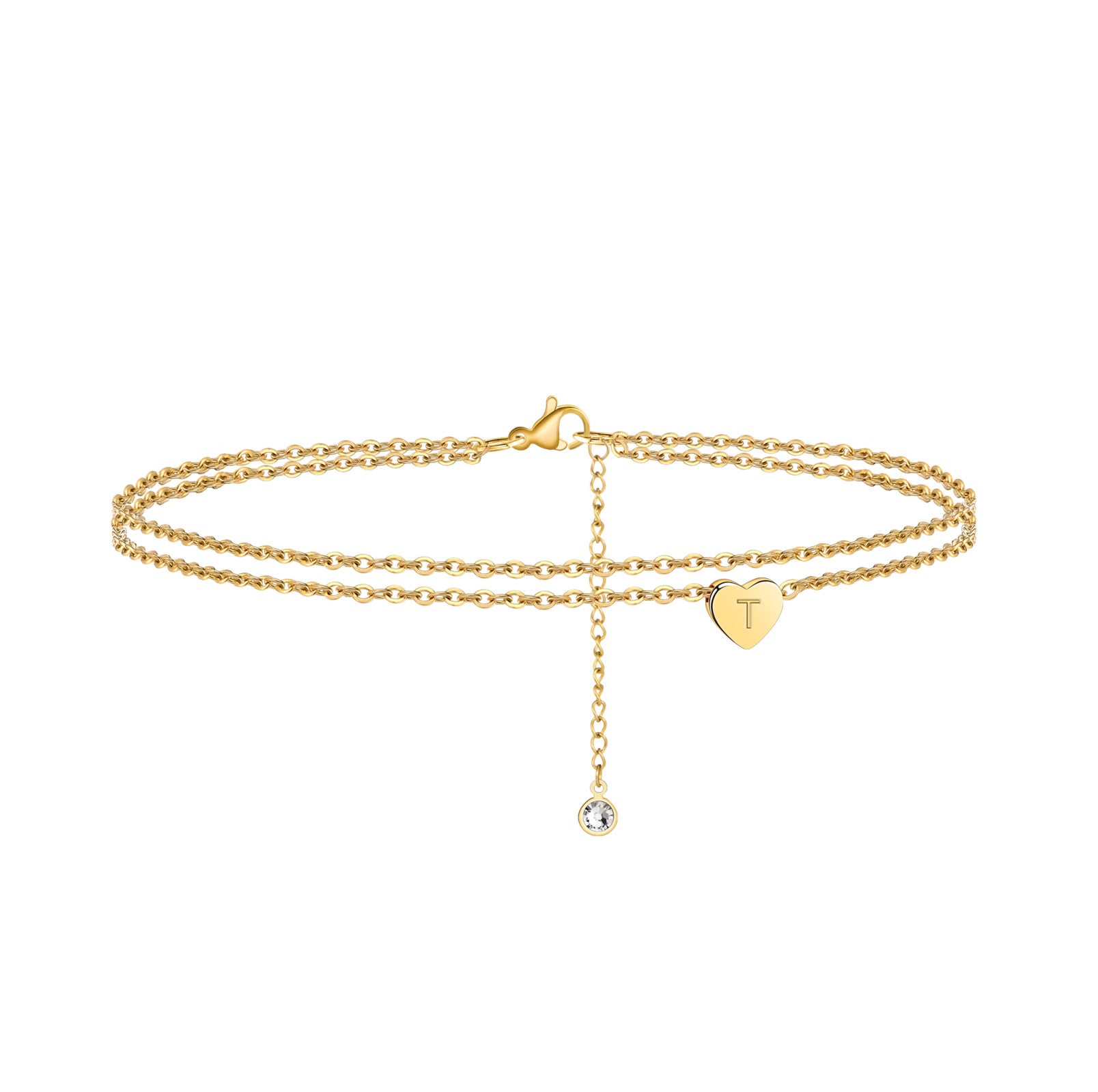This golden double-layer heart-shaped letter ankle chain is specially designed for women. The pendant can be engraved with the initial of your name. The edges are smooth and round, not irritating to the skin. The golden ankle chain is a versatile must-have for the summer. It pairs well with flip-flops, or thin-soled sandals. As a birthday gift, it conveys the profound meaning of "friendship is like gold and never fades". The heart-shaped pendant symbolizes love£¬ the letter pendant represents memories. Giving it to a friend is a romantic declaration£¬ and giving it to oneself is a gentle statement. Choosing this ankle chain is not just about selecting an accessory£» it's about customizing a romantic contract for your feet. Order it now to crown your exclusive love£¡
