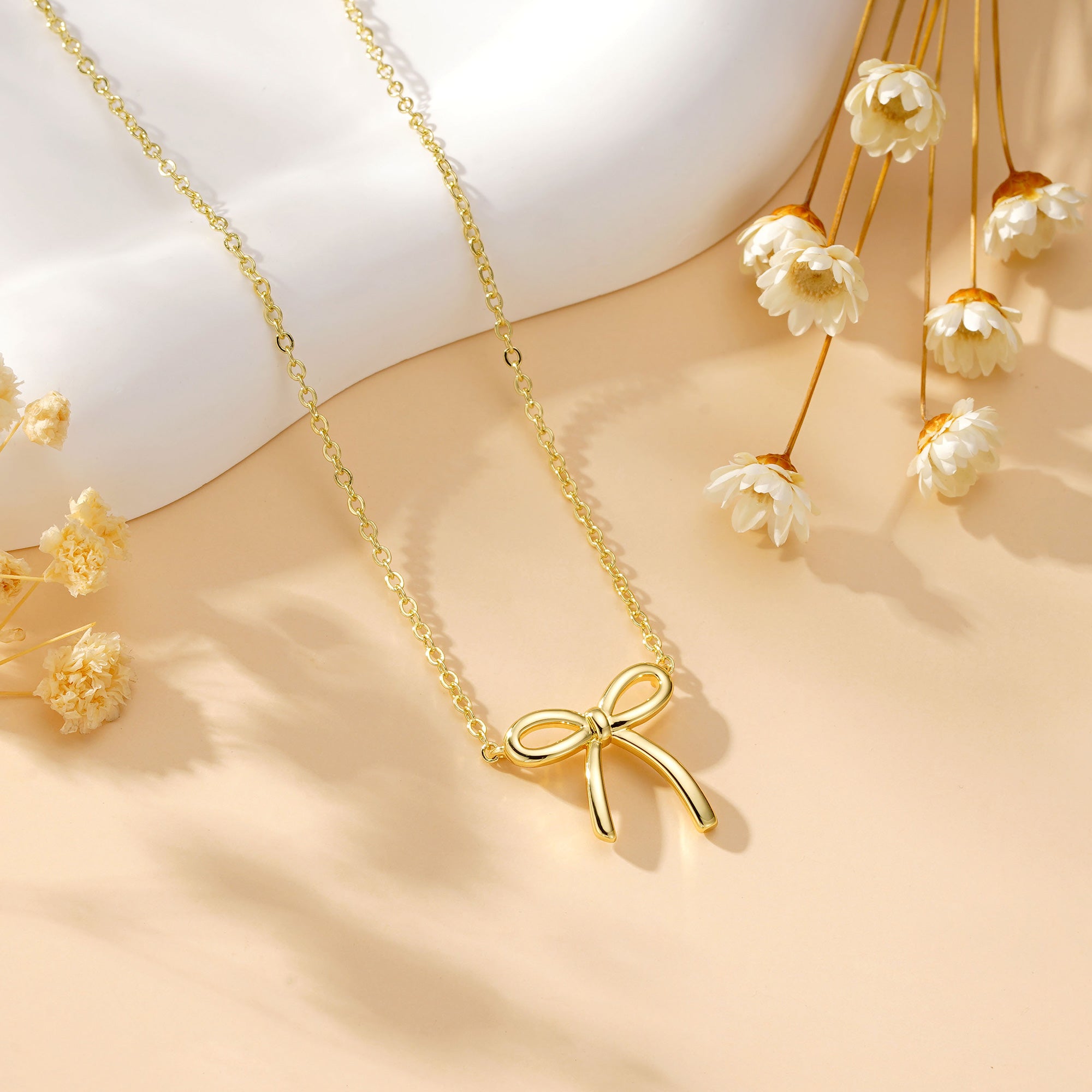 18K Gold Bow Necklace for Women Girls - A Stylish Gift of Elegance and Romance