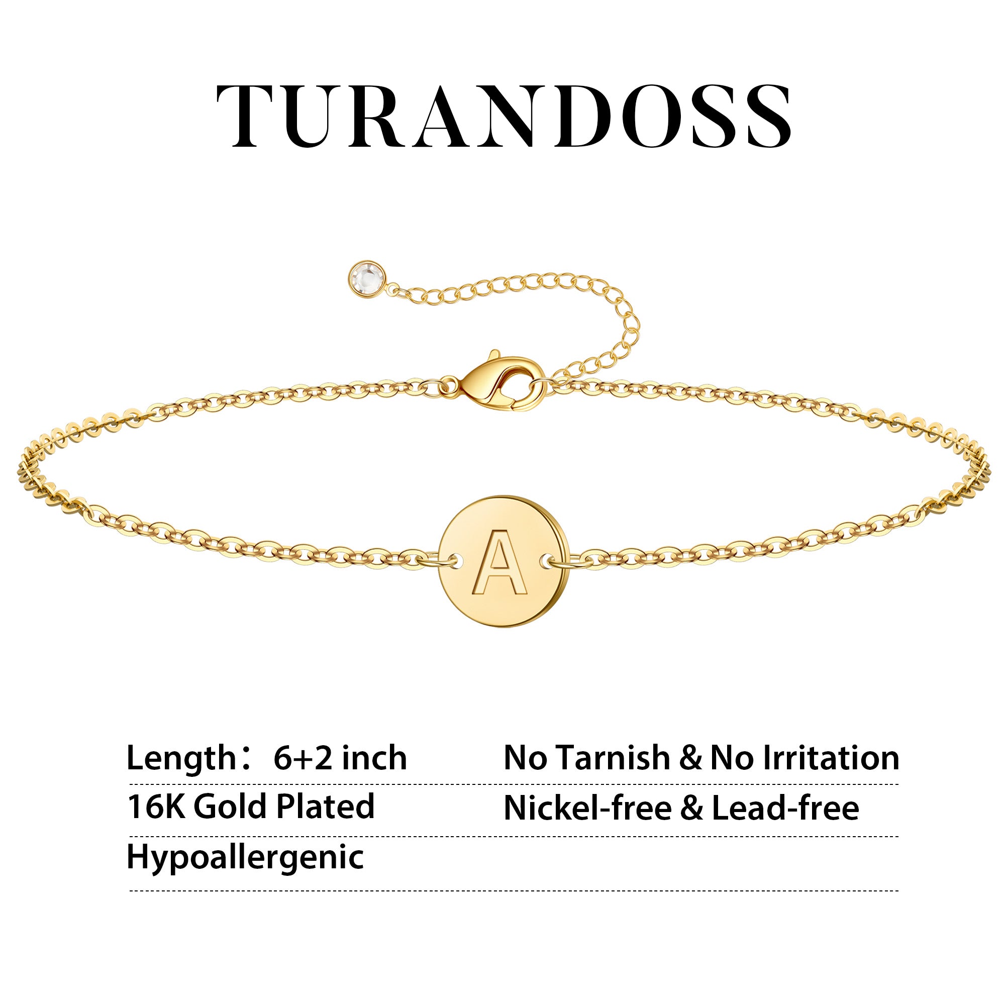 This gold link bracelets for women features an exquisite link design, with each link meticulously calculated to maintain a sleek silhouette while ensuring flexibility. The 6+2-inch adjustable chain length and high-quality lobster clasp accommodate various wrist sizes. The stainless steel disc hanging from the center of the bracelet is laser-engraved, and each letter is meticulously polished, creating a captivating color contrast against the gold chain. The stainless steel ensures the letters remain legible and resist fading or wear even with extended wear.