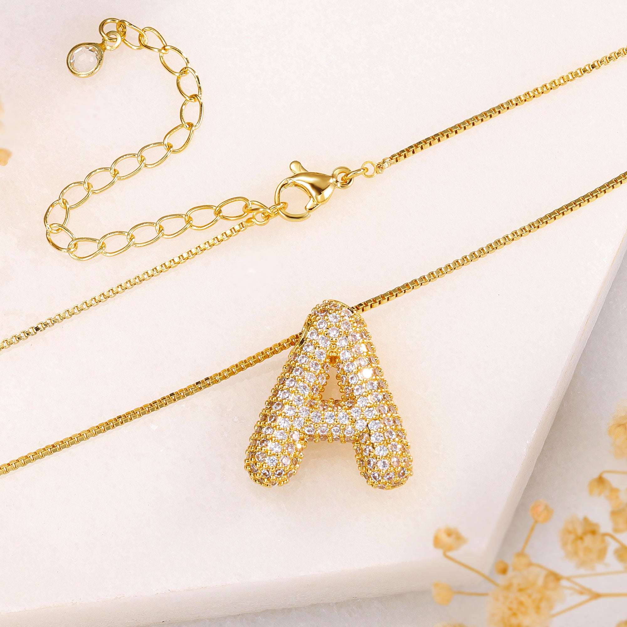 This dainty gold bubble initial necklace features an 18"+2" adjustable length. Made from high-quality brass and 14K gold-filled, it's hypoallergenic and perfect for sensitive skin. A timeless gift for any special occasion!