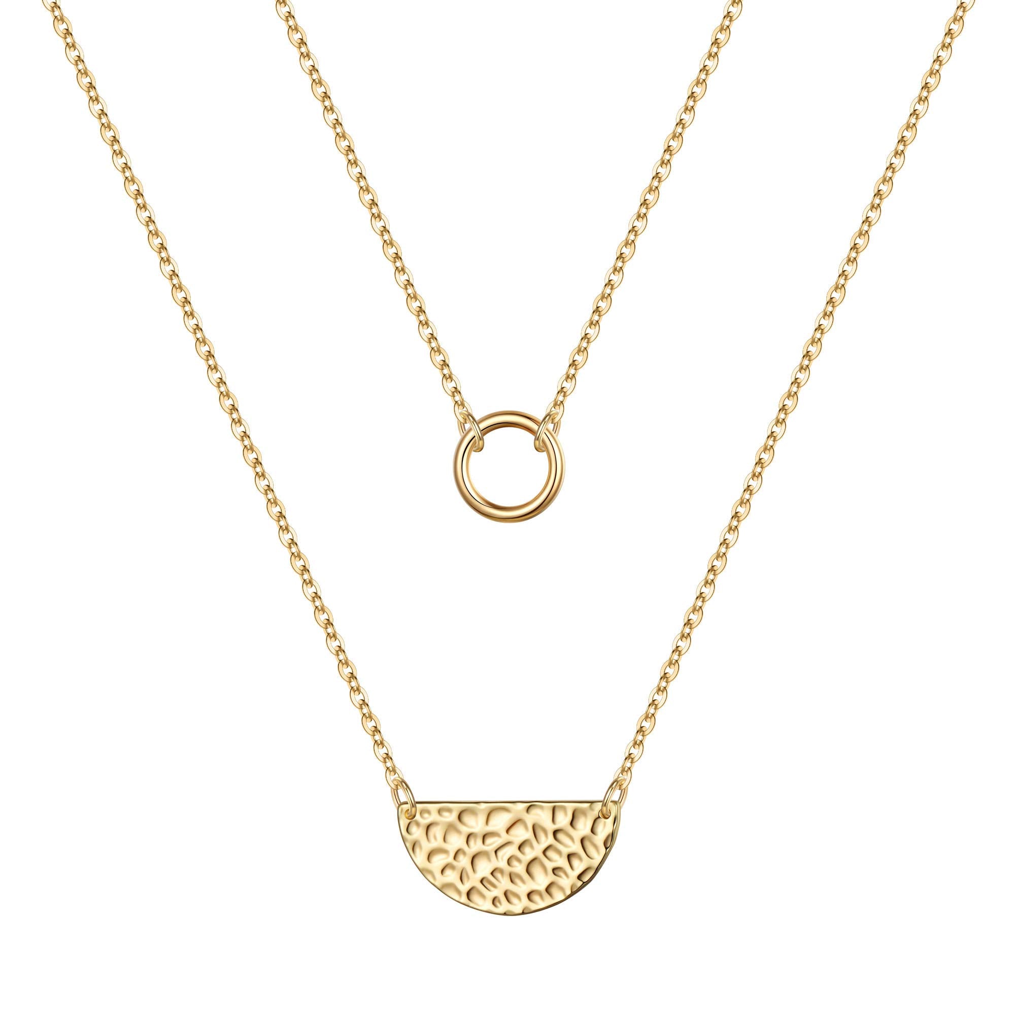 Charming circle and half-moon charms on a dainty gold chain, adding a celestial vibe to your style.