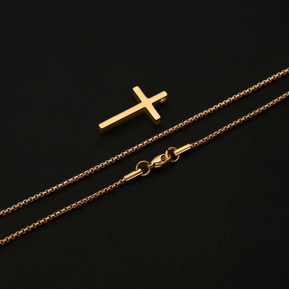 This men's cross pendant necklace is an choice for expressing individuality and emotions. The necklace is made of high-quality stainless steel, which is sturdy, durable, resistant to deformation and not prone to wear. It can withstand the test of time and provide long-lasting companionship. Its surface has been finely treated, making it smooth and delicate. It is comfortable to wear and does not cause any burden to the skin. The golden color is luxurious, enhancing the sense of fashion and confidence, and is suitable for business occasions. The necklace is 16 inches in length,neither too tight nor too loose, showcasing a sense of refinement. The pendant adopts a classic cross shape, simple and powerful. It not only has fashionable elements but also contains profound religious beliefs and spiritual connotations, symbolizing protection, hope and strength, and can bring spiritual comfort and protection. This necklace is an excellent choice as a birthday and Christmas gift, carrying a full of blessings and care, and conveying deep friendship and affection.