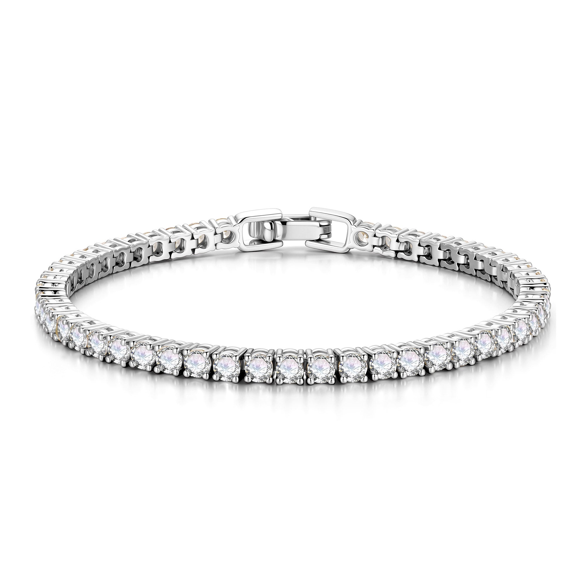 This exquisite silver bracelet for women collection features four professional sizes: gold and silver, available in 6.5-inch and 7-inch sizes, respectively, to accommodate wrists of all sizes. Each bracelet features a classic four-prong setting, securing the carefully selected round zircons. Four delicate metal prongs act as gentle guardians, stabilizing the gems while maximizing the zircon's brilliance. Each zircon is DEF colorless and precision-cut with 57 facets, creating a stunning starburst effect. The specially designed gemstone clasp not only allows for easy opening and closing, but also adds a refined detail to the overall look.