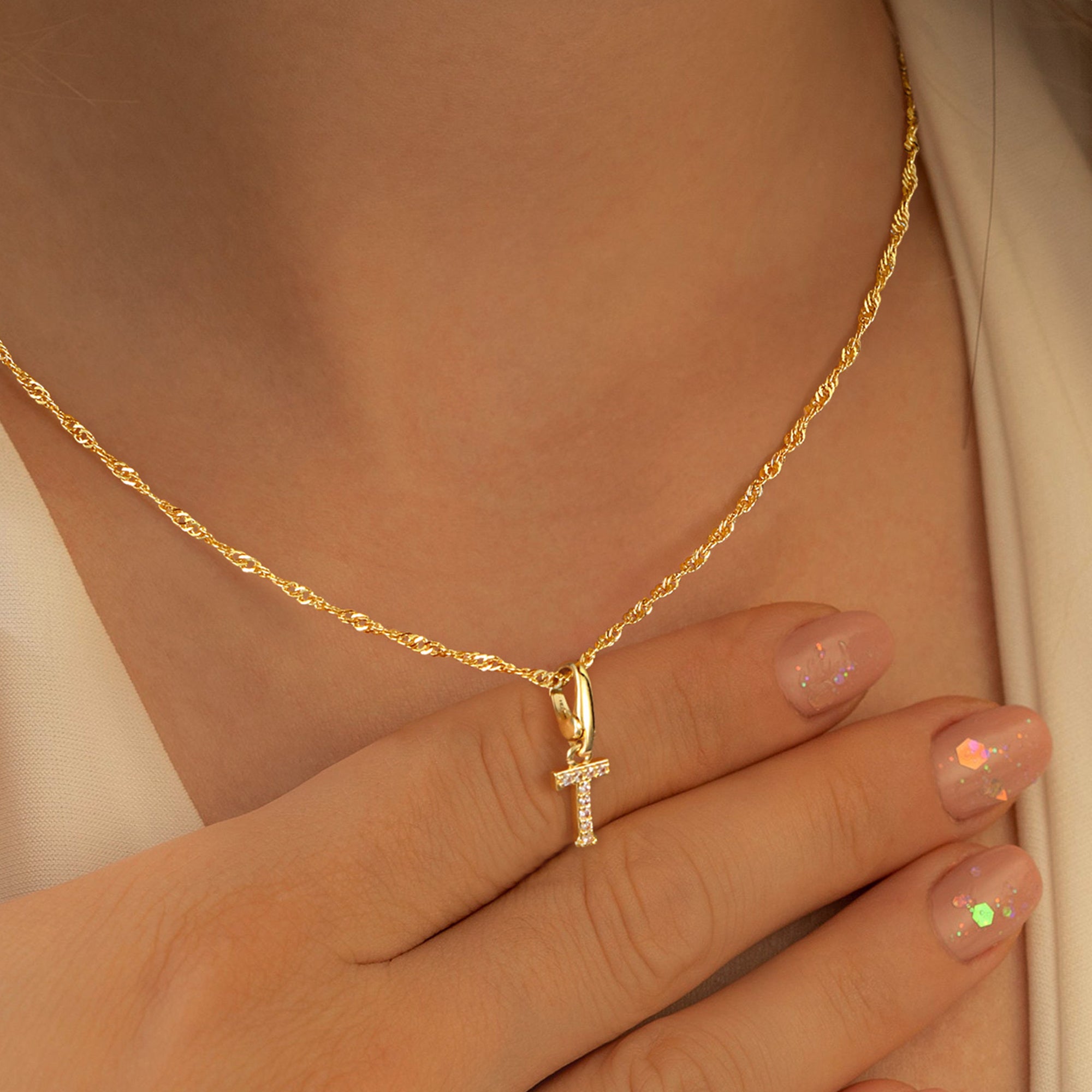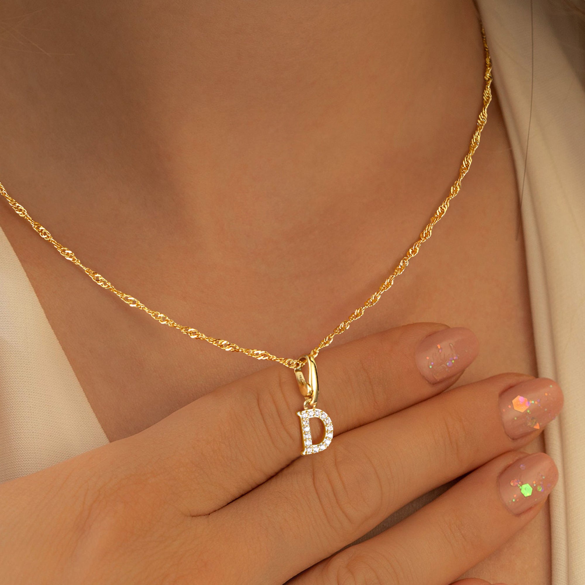 This luxurious gold initial necklace for women perfectly blends dazzling zircons with personalized lettering. The dazzling shimmer of zircons and the custom lettering create a piece of jewellery that combines both luxury and sentimental value. Made from high-grade hypoallergenic copper, this gold necklace plated with a thick layer of 18K gold, ensuring it's safe for those with sensitive skin (including women and girls) while also imparting a long-lasting, luxurious golden luster. Every detail showcases exceptional quality.