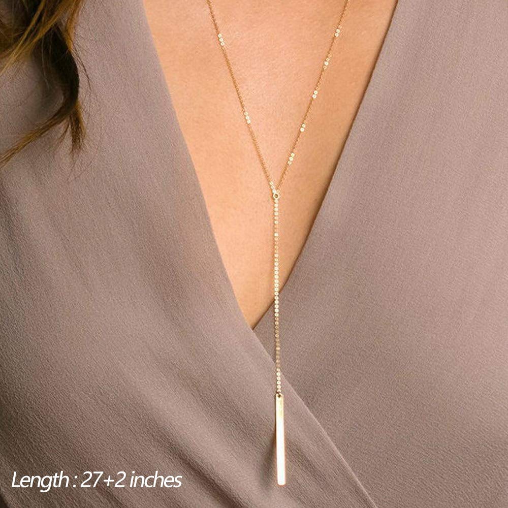 Turandoss Dainty Layered Choker Necklace, Handmade Plated Y Pendant Multilayer Bar Disc Necklace Adjustable Layering Choker for Women