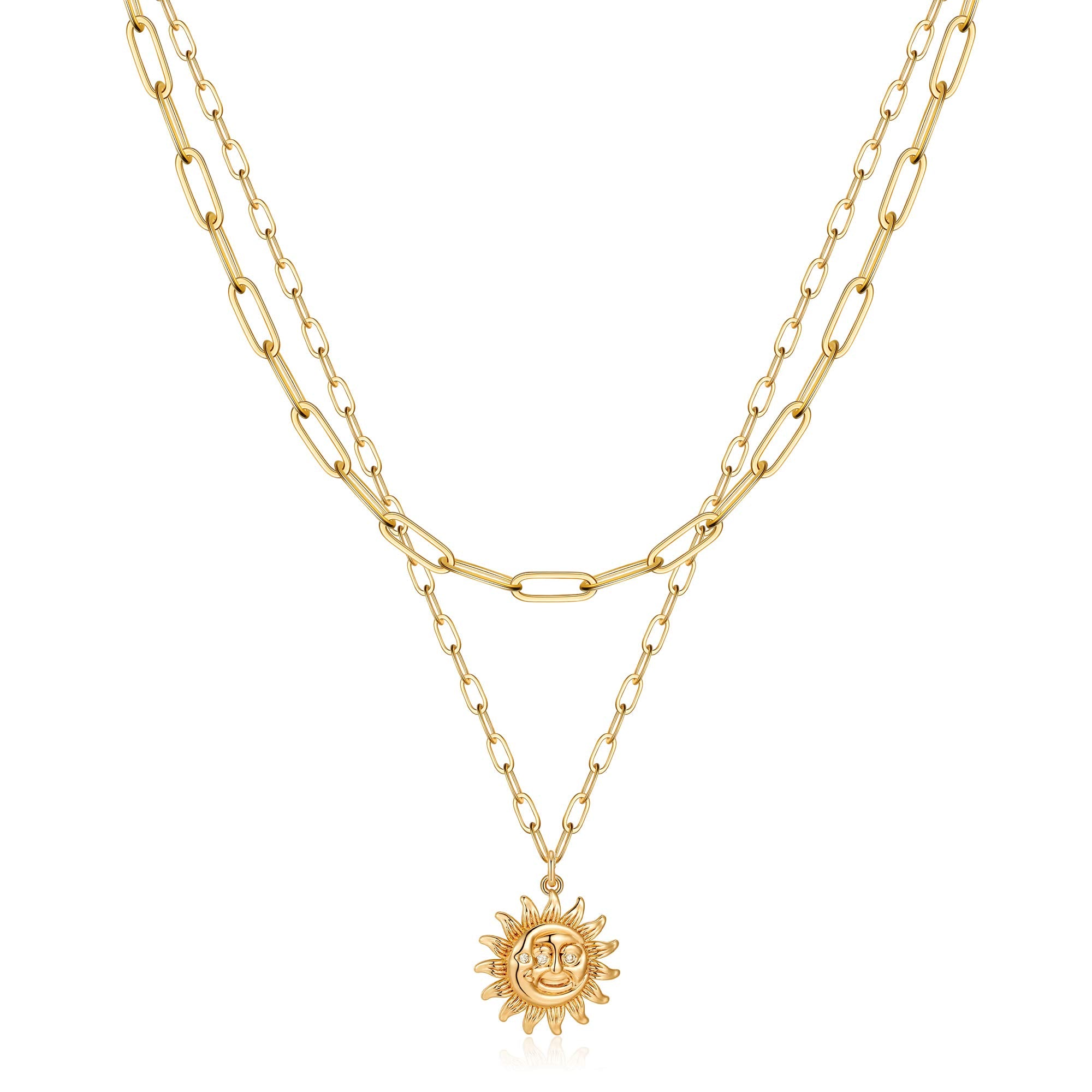 Cheerful sun coin necklace that radiates positivity, perfect for brightening up any outfit.