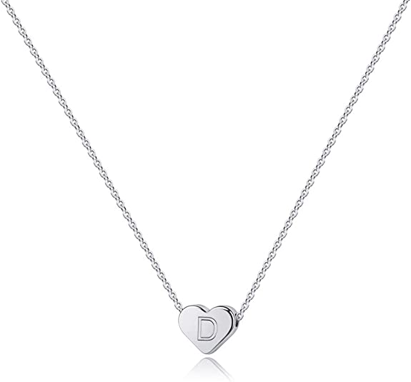 Heart Initial White Gold Necklaces for Women Girls