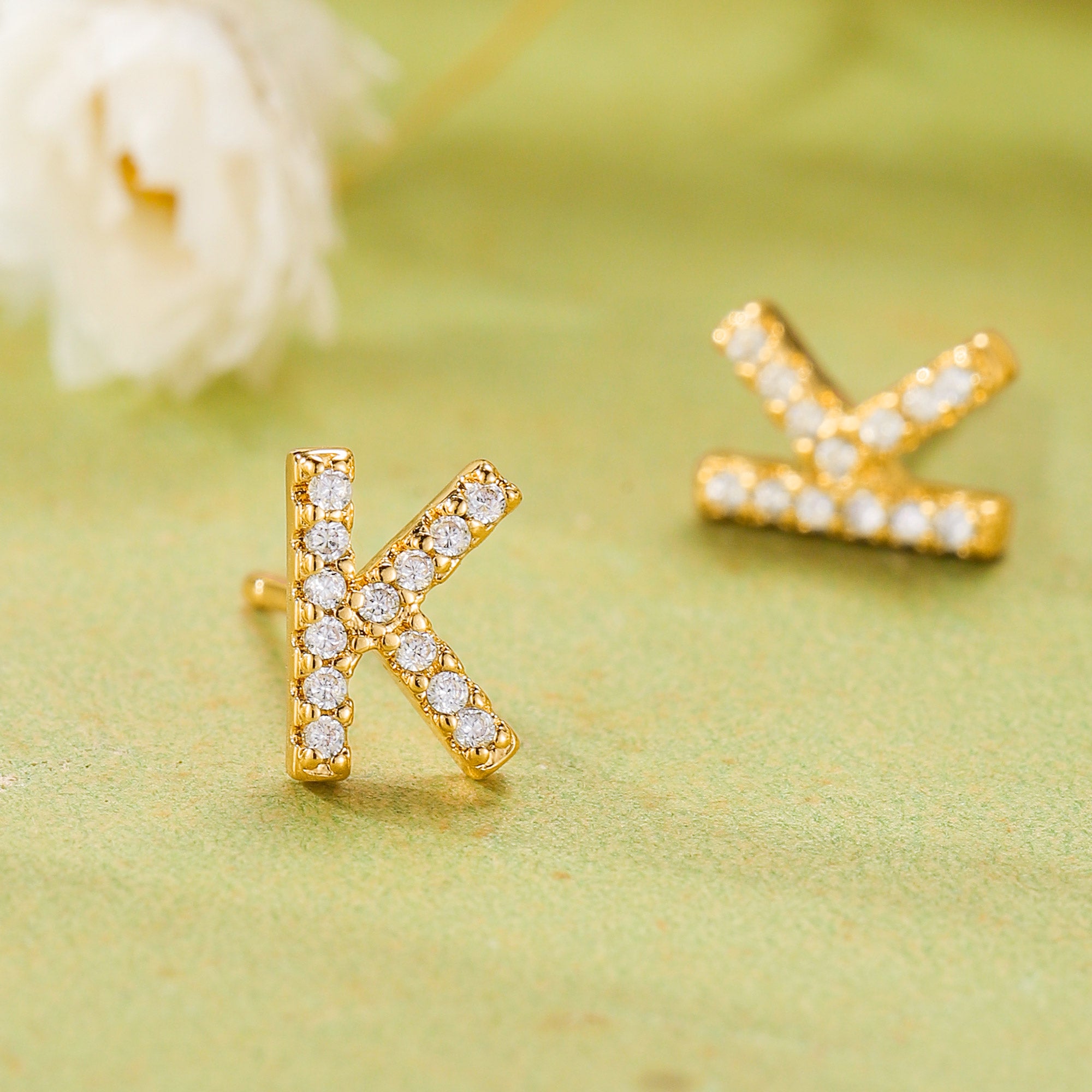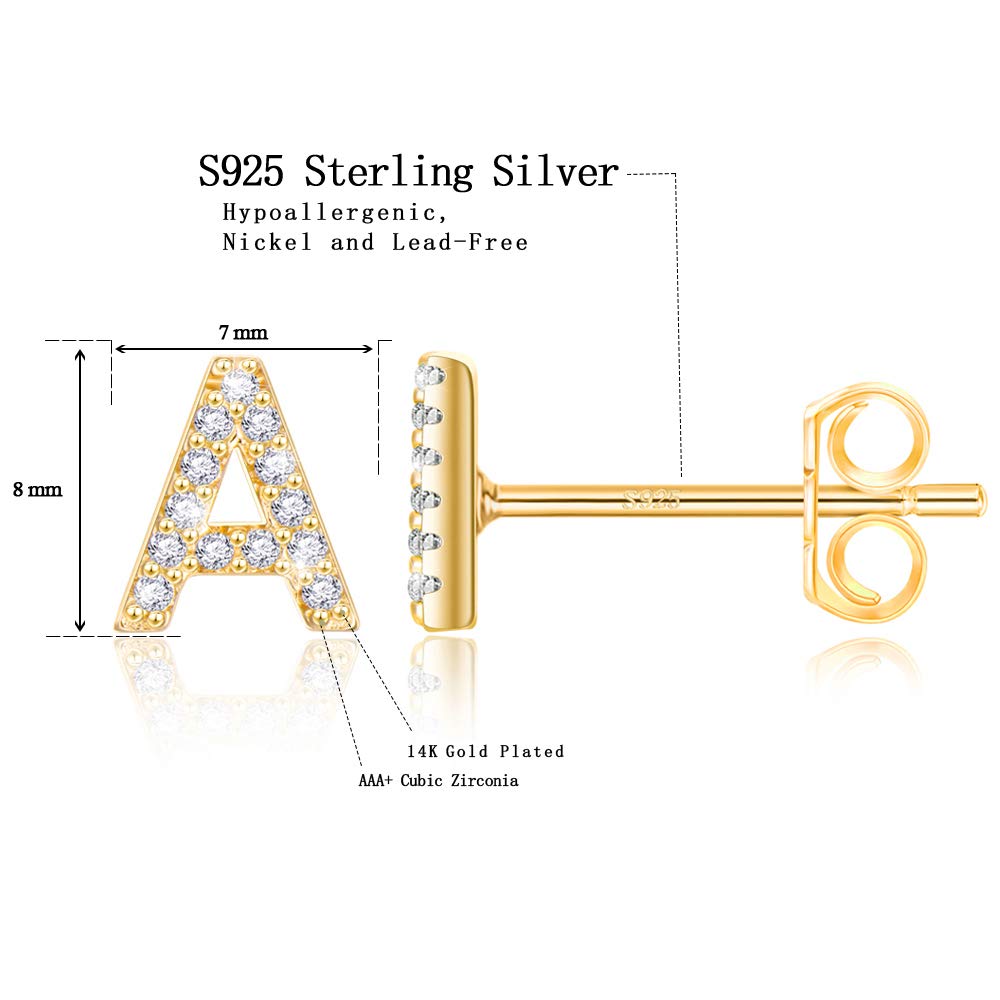Introducing these gold initial stud earrings for women girls, a perfect blend of dazzling zircon and personalized design. These exquisite letter-shaped flat back earrings are set with sparkling zircon and paired with skin-friendly silver tips, creating a collectible earring that combines luxurious texture with a personal touch. Made from high-grade hypoallergenic copper with a thick 18K gold plating, they ensure comfortable wearing and impart a luxurious, dazzling golden luster. Specially selected S925 sterling silver tips provide a protective layer for sensitive earlobes, ensuring uncompromising brilliance.