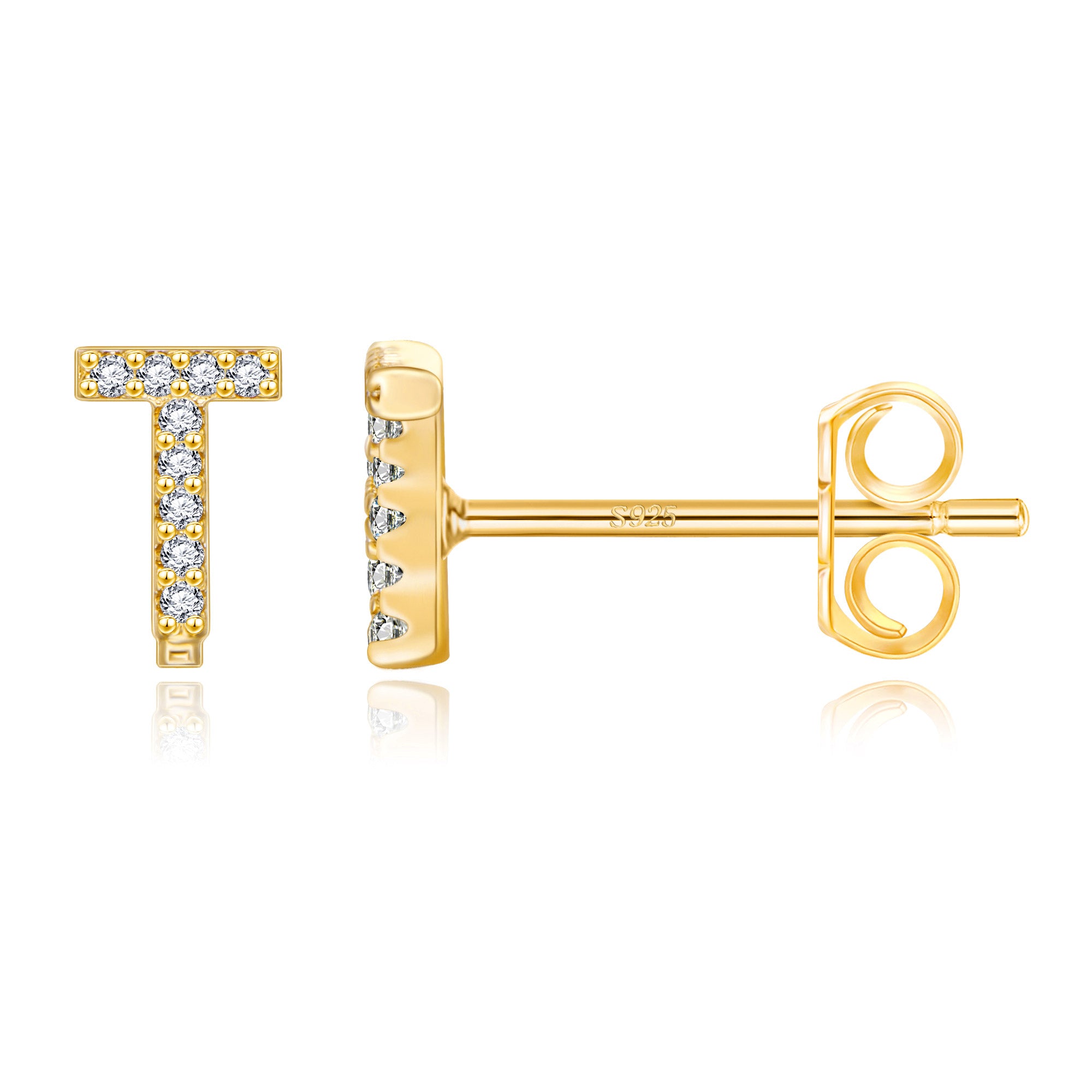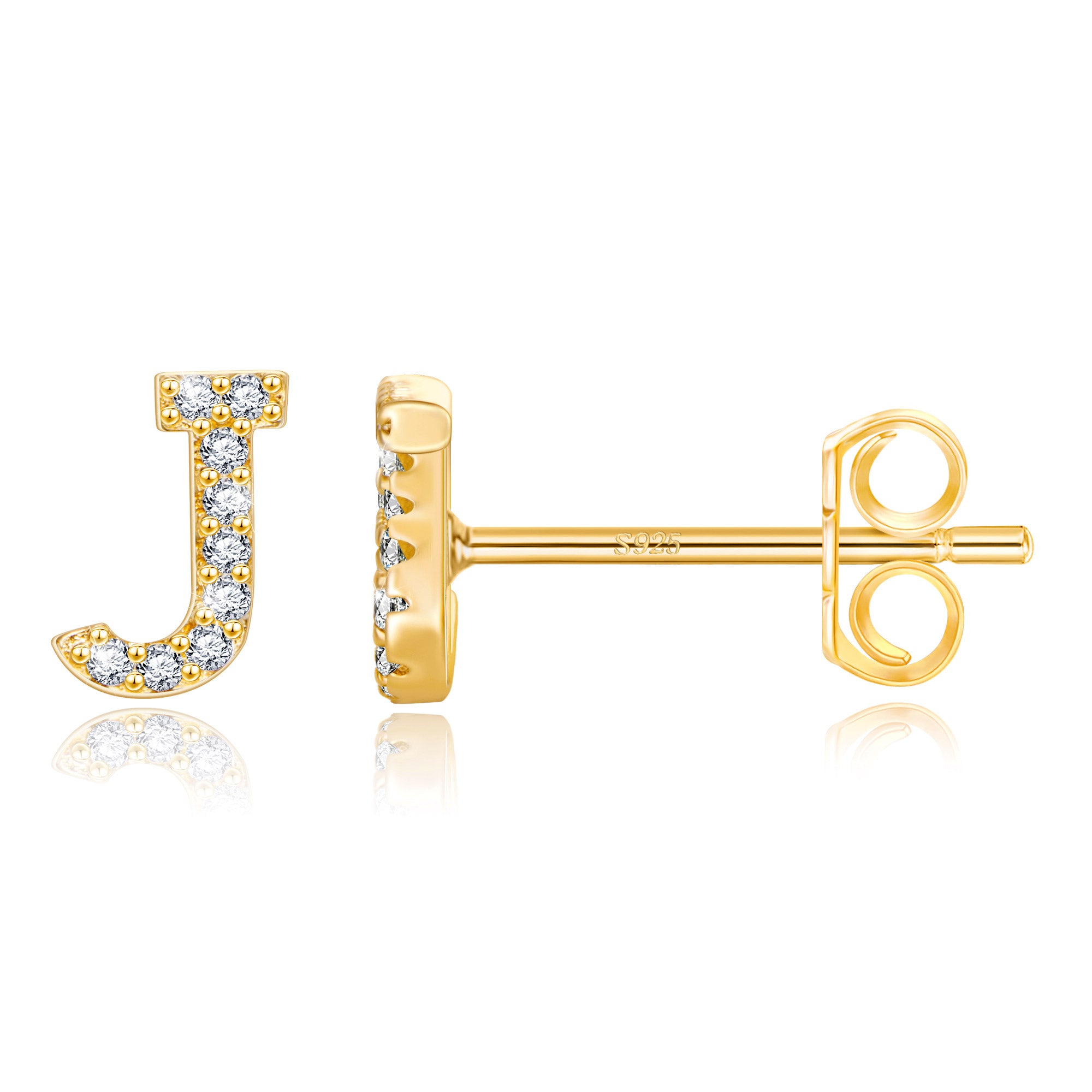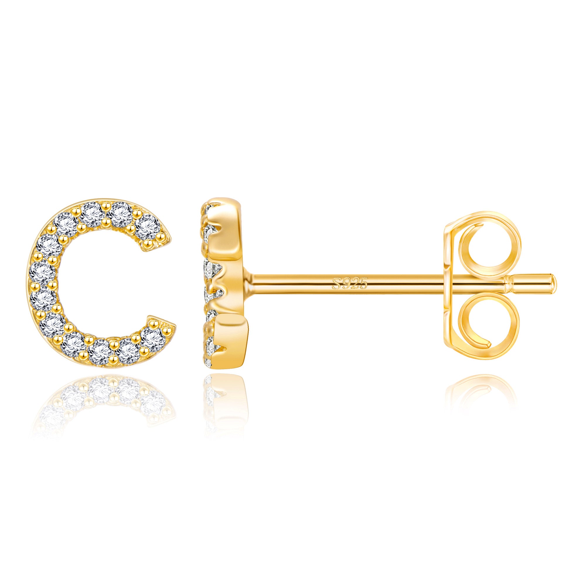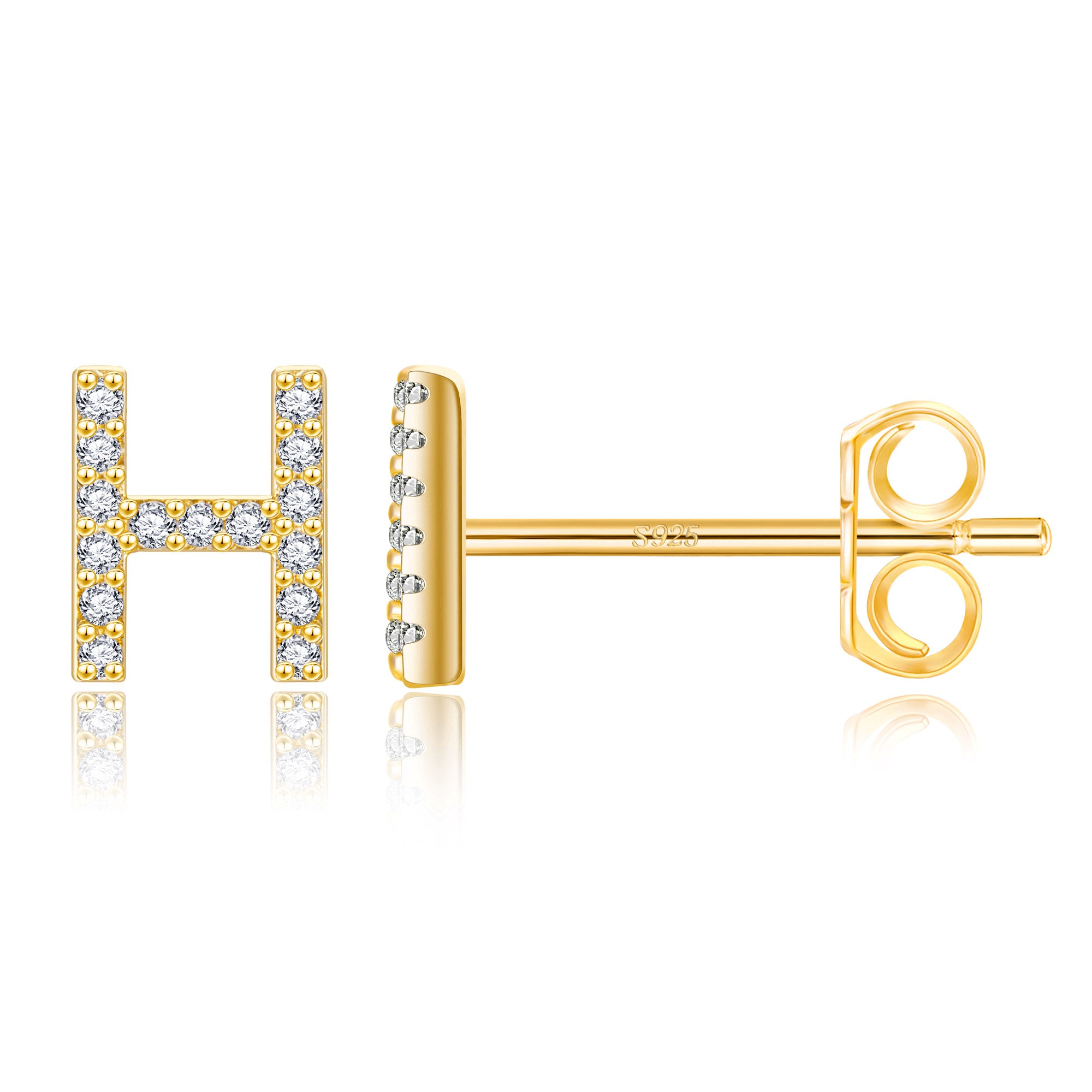 These exquisite gold stud earrings feature a precisely designed 8mm x 7mm letter size, perfectly balancing visual beauty and wearing comfort. The 14 selected letter designs are micro-set with high-quality zircon stones. Each zircon is DEF-grade colorless, and the precise faceting ensures maximum brilliance. The standard 0.8*10mm S925 sterling silver earrings ensure a comfortable and secure fit. Two ear tips are also included: a classic copper butterfly tip for everyday comfort and stability, and a stylish saucer tip for extra security, perfect for every occasion.