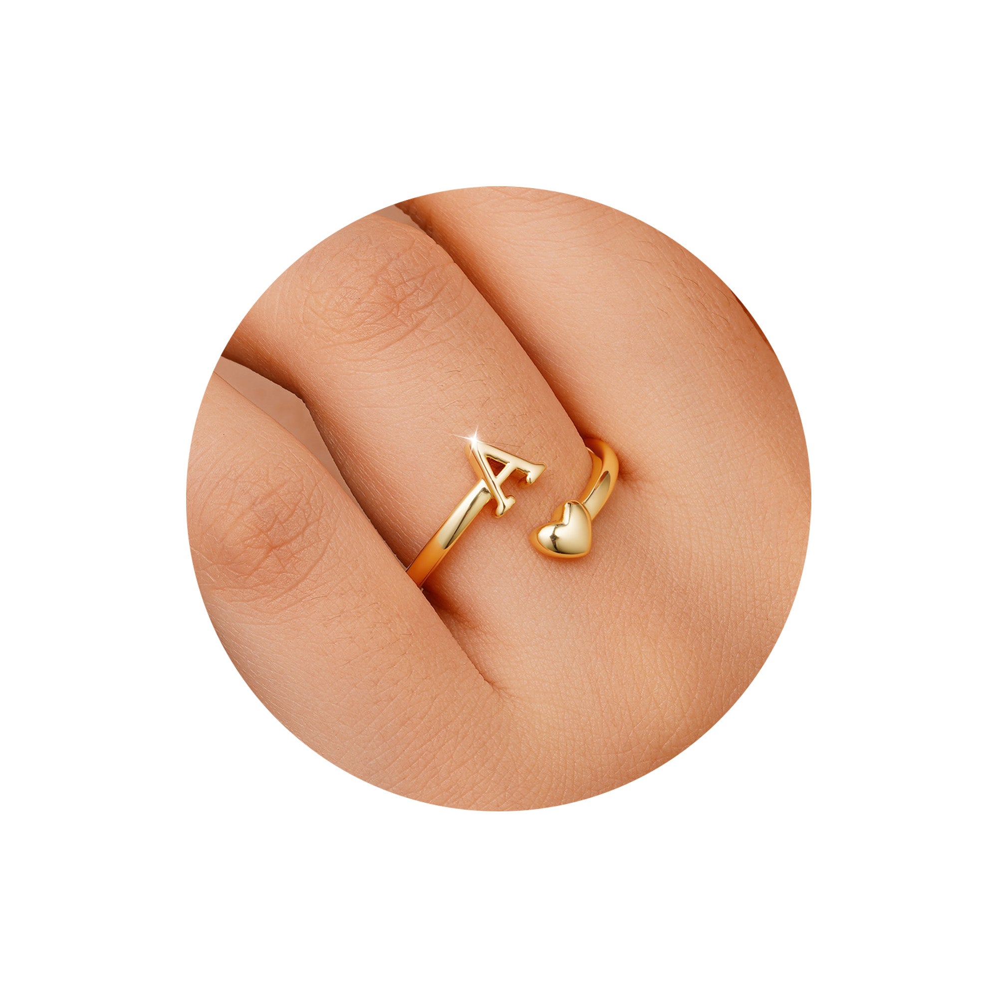 18K Gold Herat Initial Rings for Women Girls - A Whisper of Love on Your Fingertips