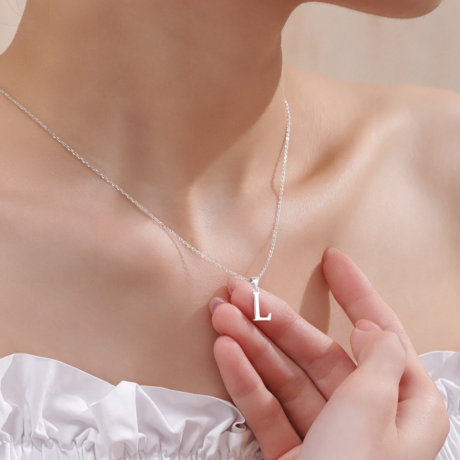 This women's pure silver initial necklace transforms your cherished name into a dazzling symbol around your neck. The pendant is made of high-gloss mirror-polished S925 pure silver, presenting a pure white gold color that is resistant to oxidation and fading. The basic chain length is 16 inches, combined with a 2-inch extension chain design, making it easily adaptable to different neck sizes and fashion styles. Whether worn as a layered piece or as a collar accessory, it can showcase the perfect level of sophistication. The hidden extension clasp design maintains a smooth overall line, providing a comfortable and seamless wearing experience. This necklace is a carrier of love - transforming the recipient's initial into an eternal token. Whether given to a mother, partner, best friend, or daughter, it can make her feel cherished and happy. The white gold tone is versatile, suitable for workplace commutes, date nights, or daily casual occasions, and becomes a frequently worn classic item in her wardrobe.