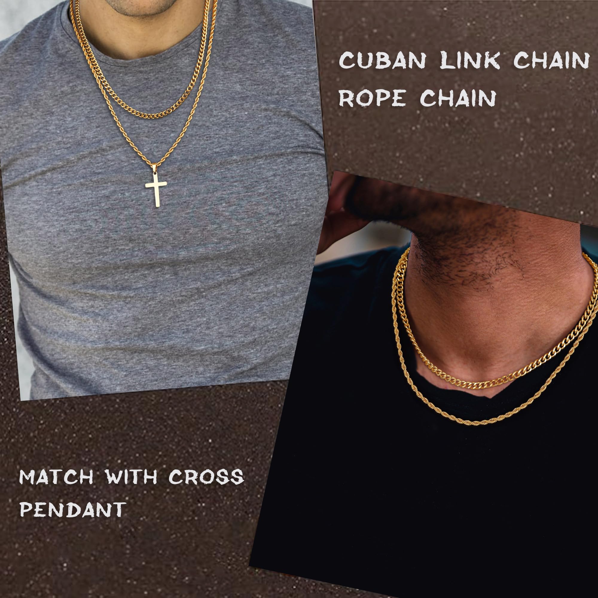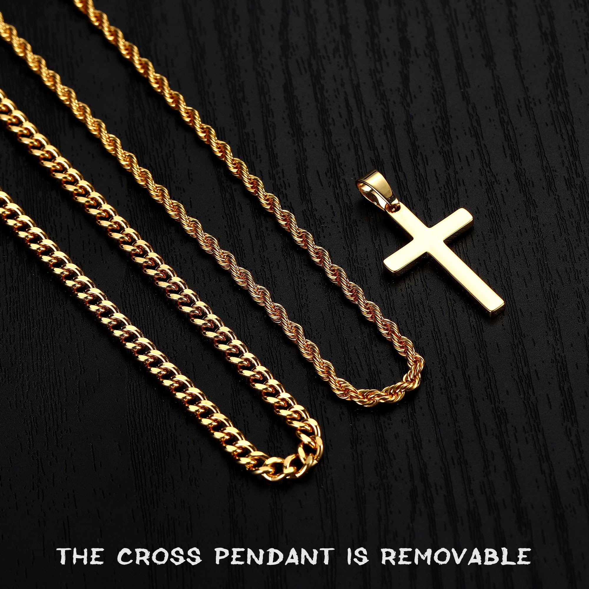 Crafted from hypoallergenic stainless steel and available in gold, this layered gold cross necklace for men boys with modern layering trends. The cross necklace for men boys features a double-layered chain design, ranging in size from 16-24 inches, and a lobster clasp that allows it to be worn on its own for a minimalist look or layered to create a stylish statement. The dainty cross pendant necklace, carved and polished in three dimensions, is an emotional link between the everyday and the spiritual.