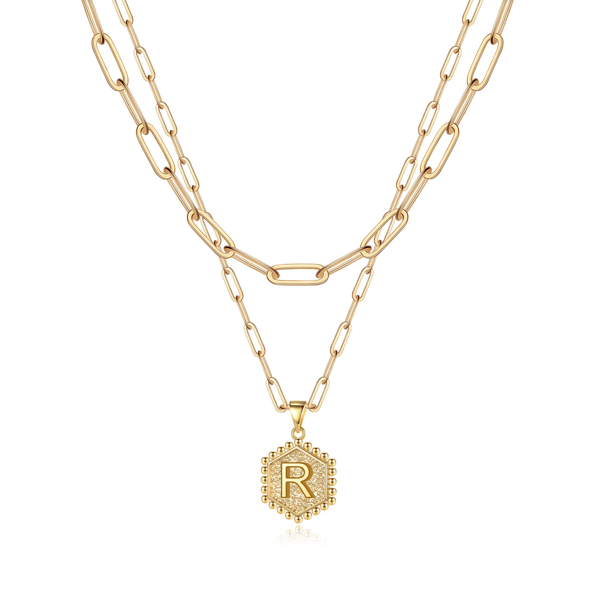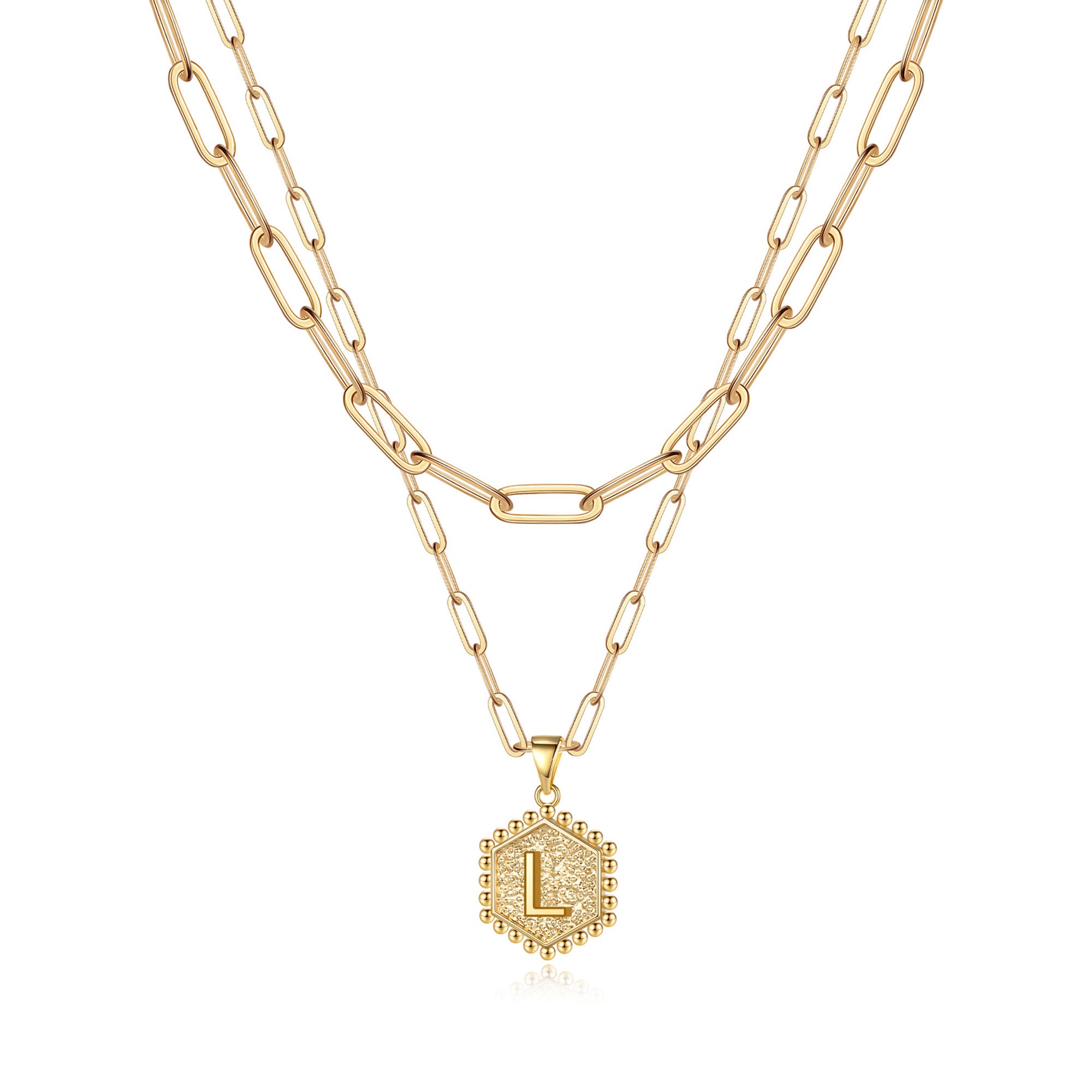 Crafted in hypoallergenic copper and offered in three classic shades of gold, the gold initial necklace for women girls combines geometric aesthetics with modern layering trends. The initial necklace for women girls features a double-layered chain in 14+2¡° and 18+2¡±inches sizes with a lobster clasp, so it can be worn on its own to show off its minimalist lines, or layered to create a stylish statement. The dainty hexagonal gold pendant necklace, sculpted and polished in three dimensions, is a perfect choice for everyday and personal expression. Whether worn as a personal accessory for daily companionship or as a heartfelt gift, the gold initial Necklace for women girls carries a spiritual value that transcends the material and speaks to the wearer's unique taste and inner strength.