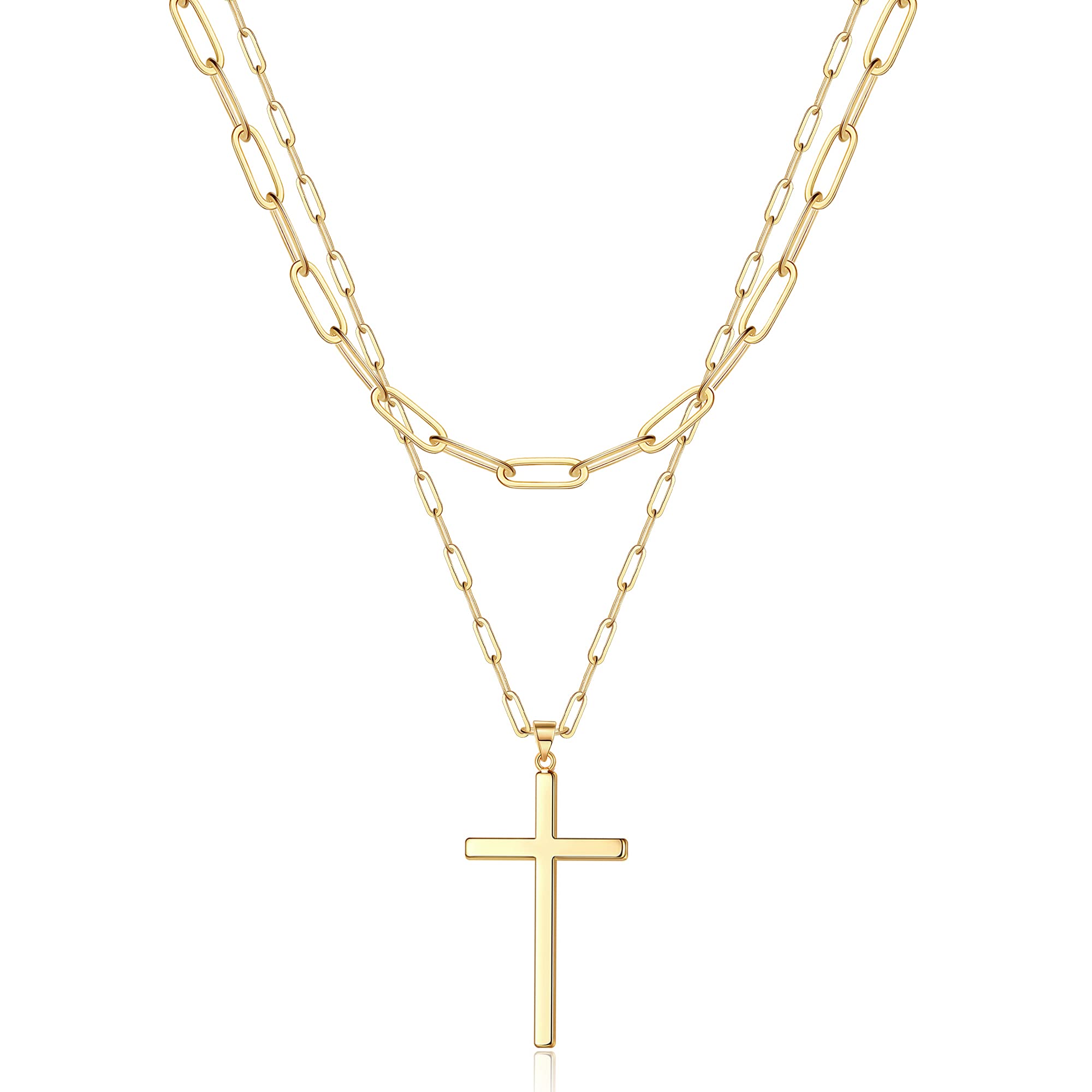 Simple yet meaningful cross charm on a gold link chain choker, great for layering or as a standalone piece.