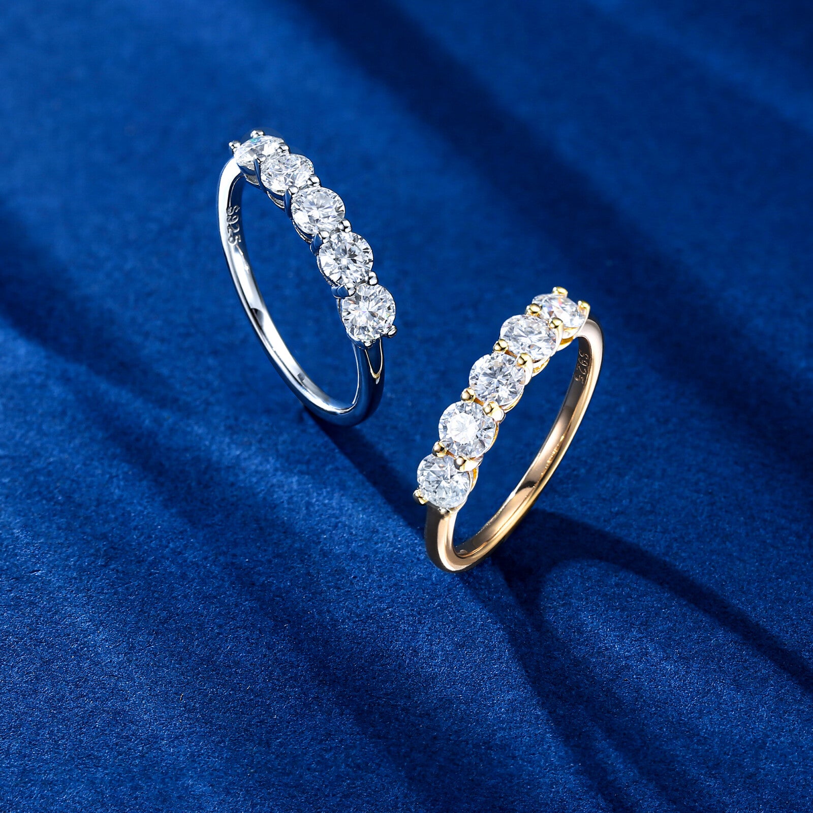 Turandoss 5 Stone Moissanite Rings for Women, 3.75MM D Color VVS1 Clarity Lab Created Moissanite Anniversary Rings