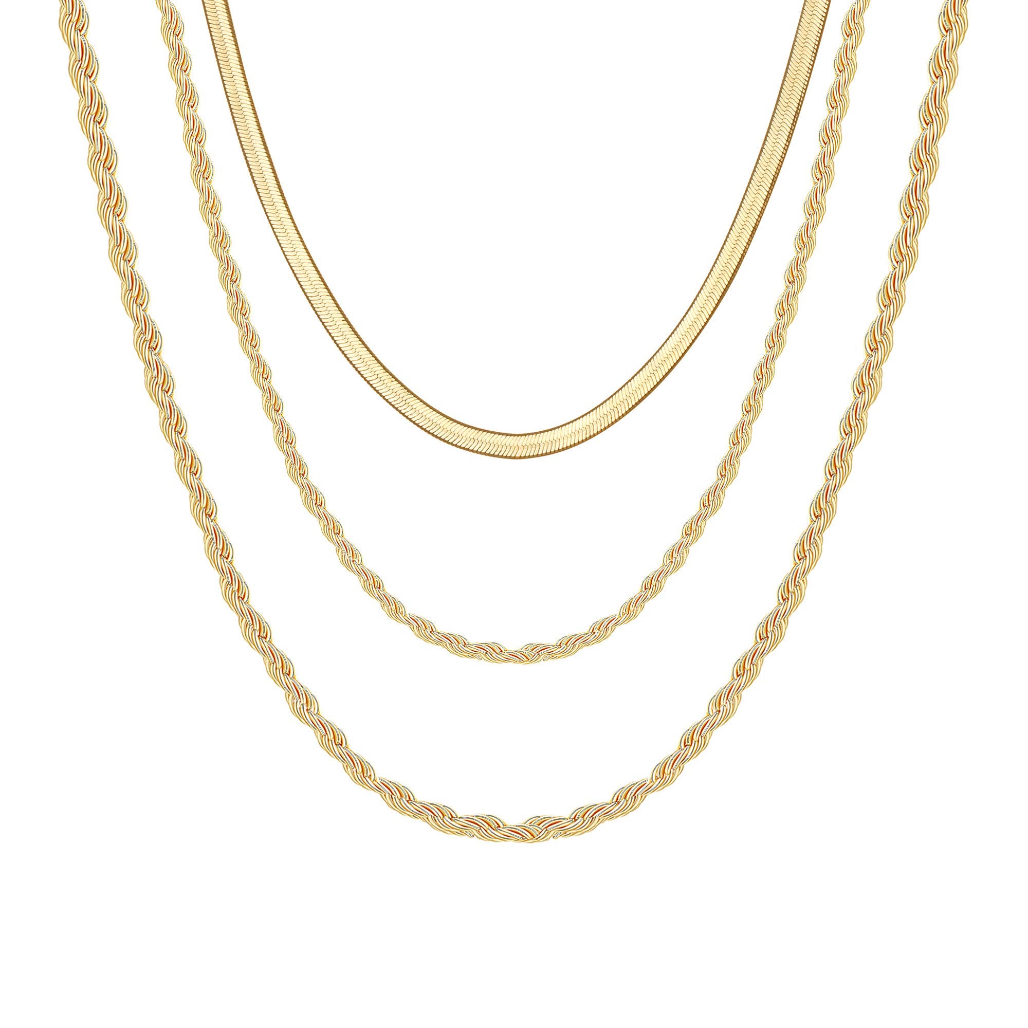 Layered necklace combining a paperclip chain and herringbone chain, perfect for a stylish layered look.