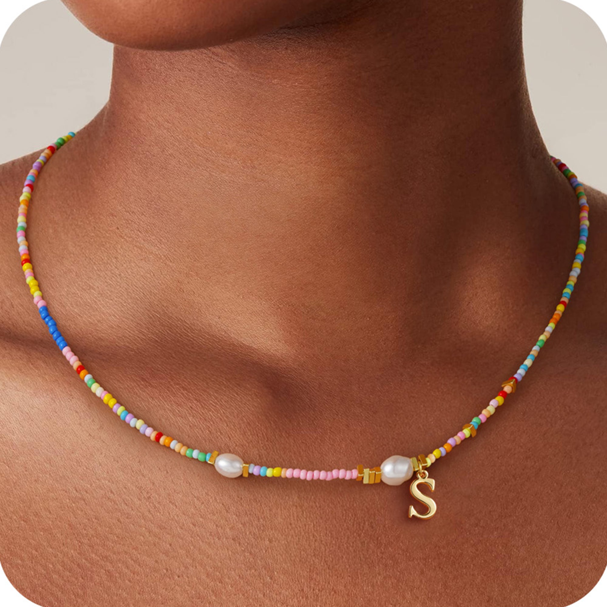 Colorful Beaded Initial Necklace for Women Girls - A Personalized Statement in the Language of Pearls