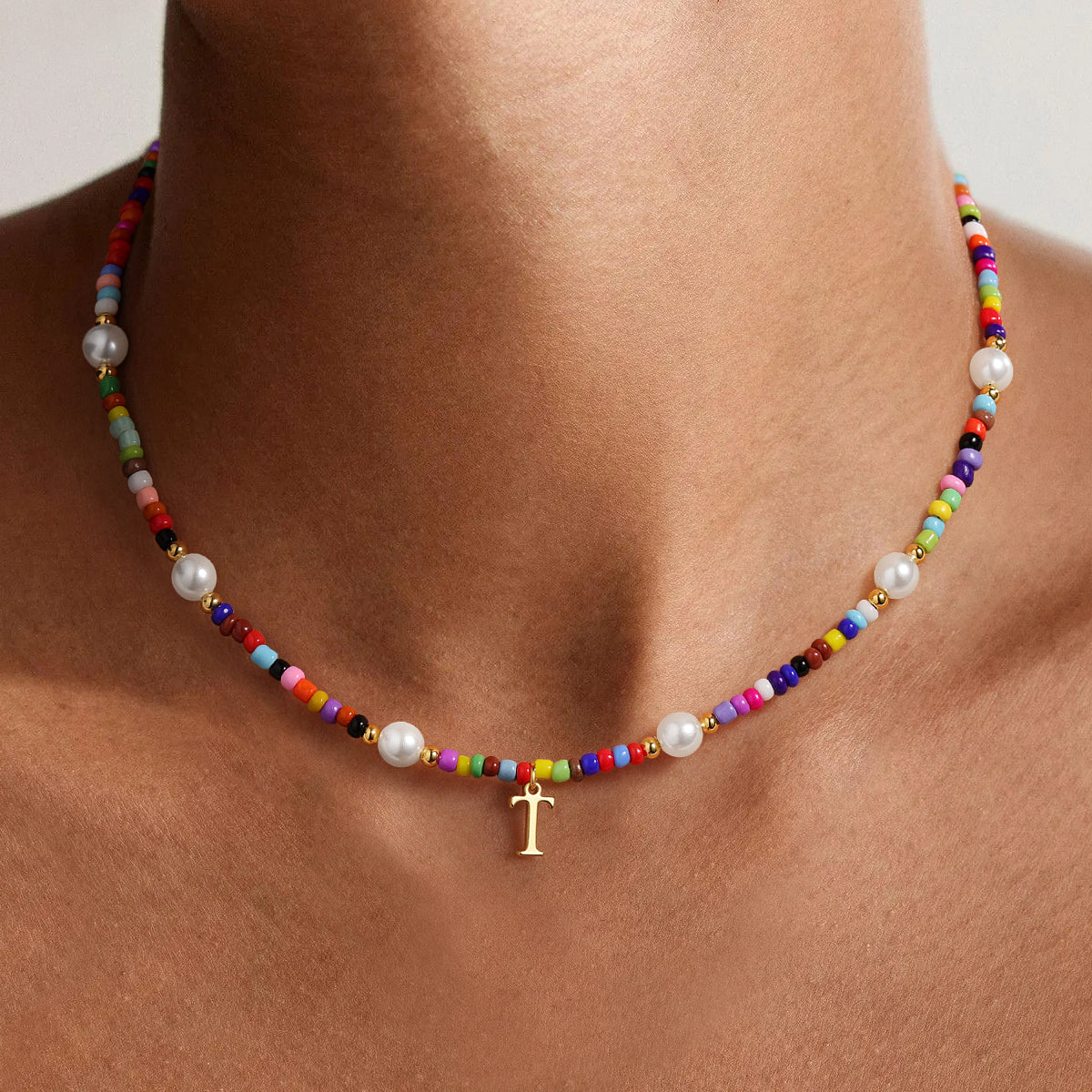 Colorful Beaded Initial Necklace for Women Girls - A Personalized Statement in the Language of Pearls