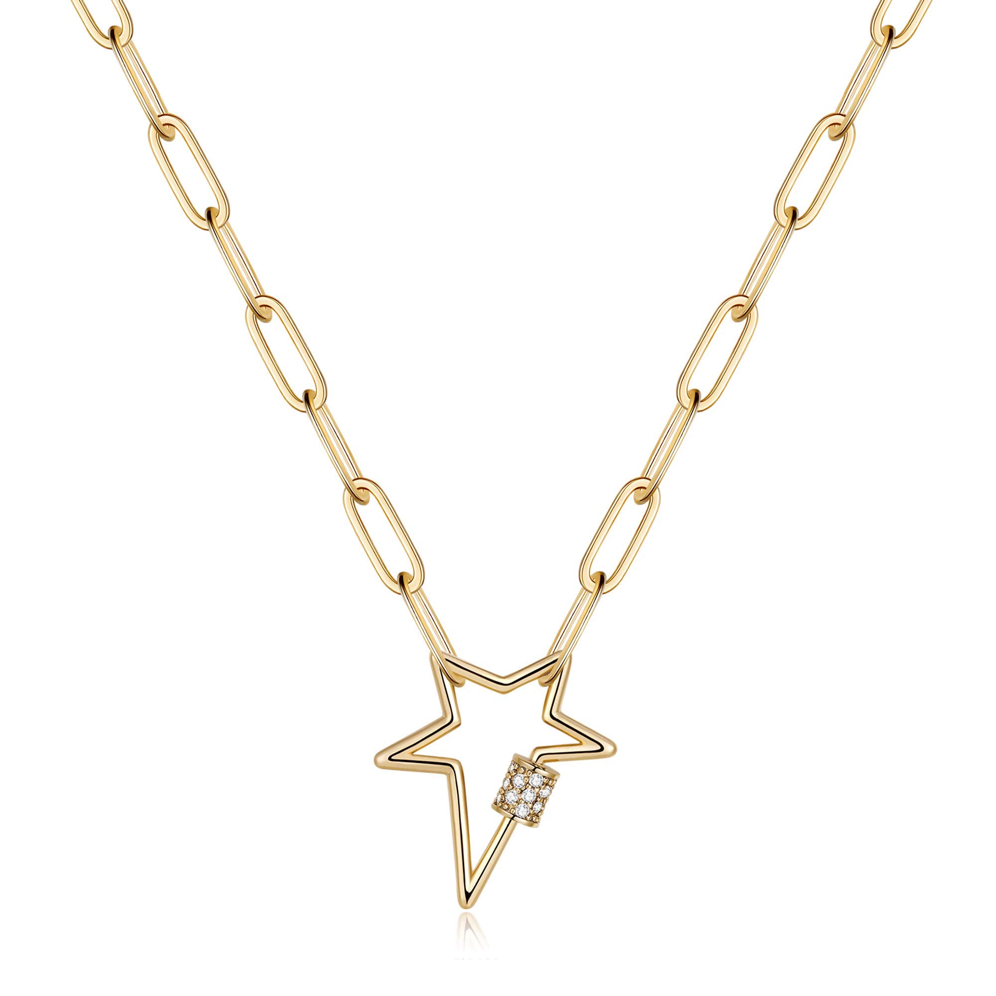 Dainty paperclip chain necklace adorned with a star charm, perfect for adding a celestial sparkle to your look.