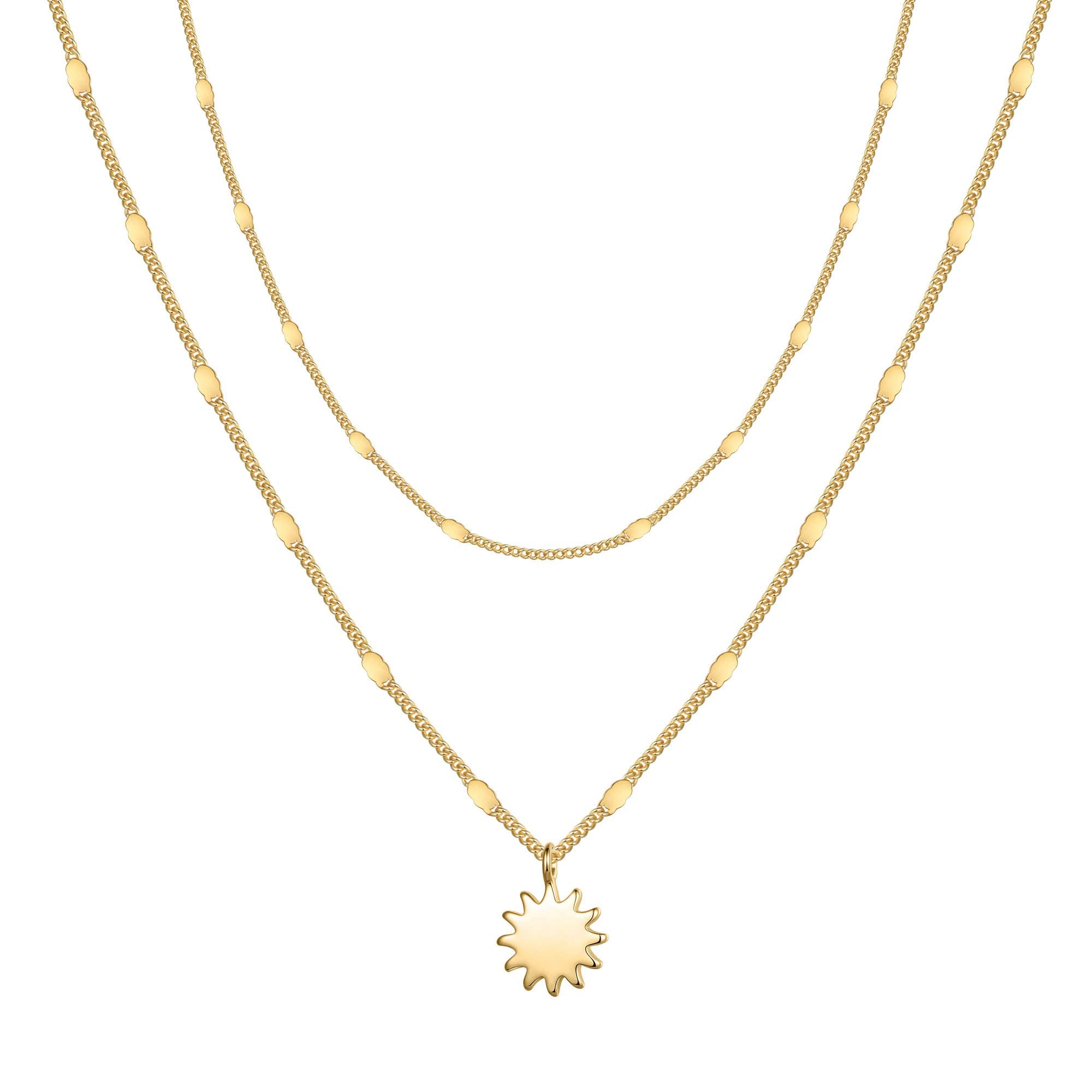 Shining sun charm on a dainty gold chain, bringing warmth and positive energy to your everyday wear.