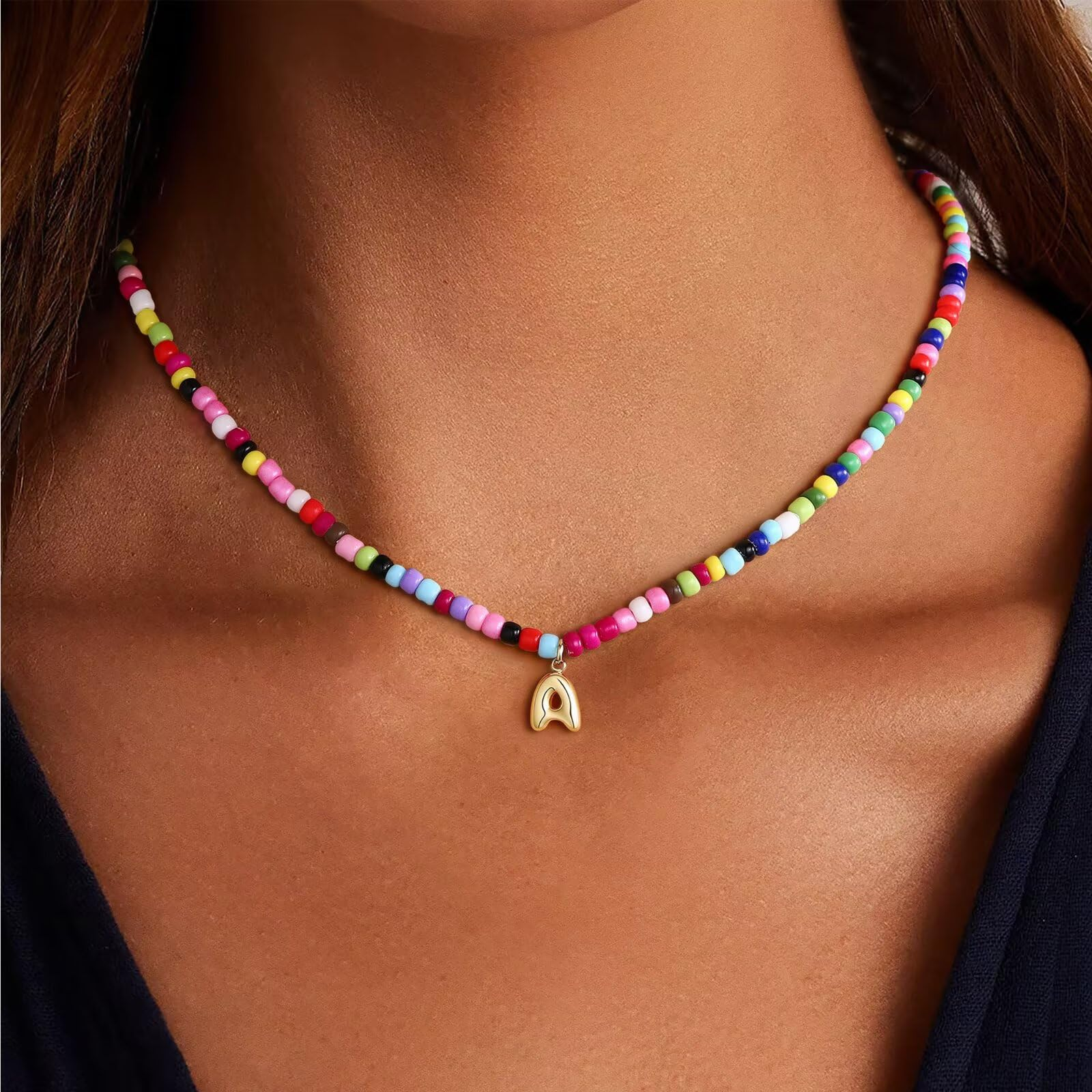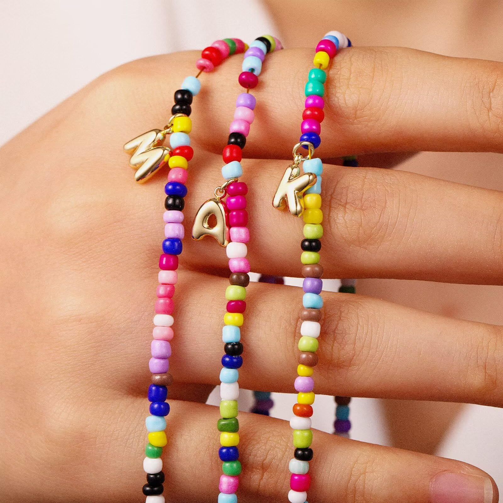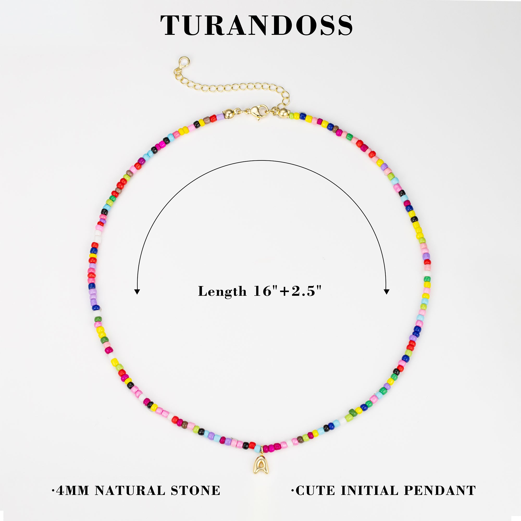 Turandoss Colorful Beaded Initial Necklace for Girls Women Kid - A Perfect Gift for Her