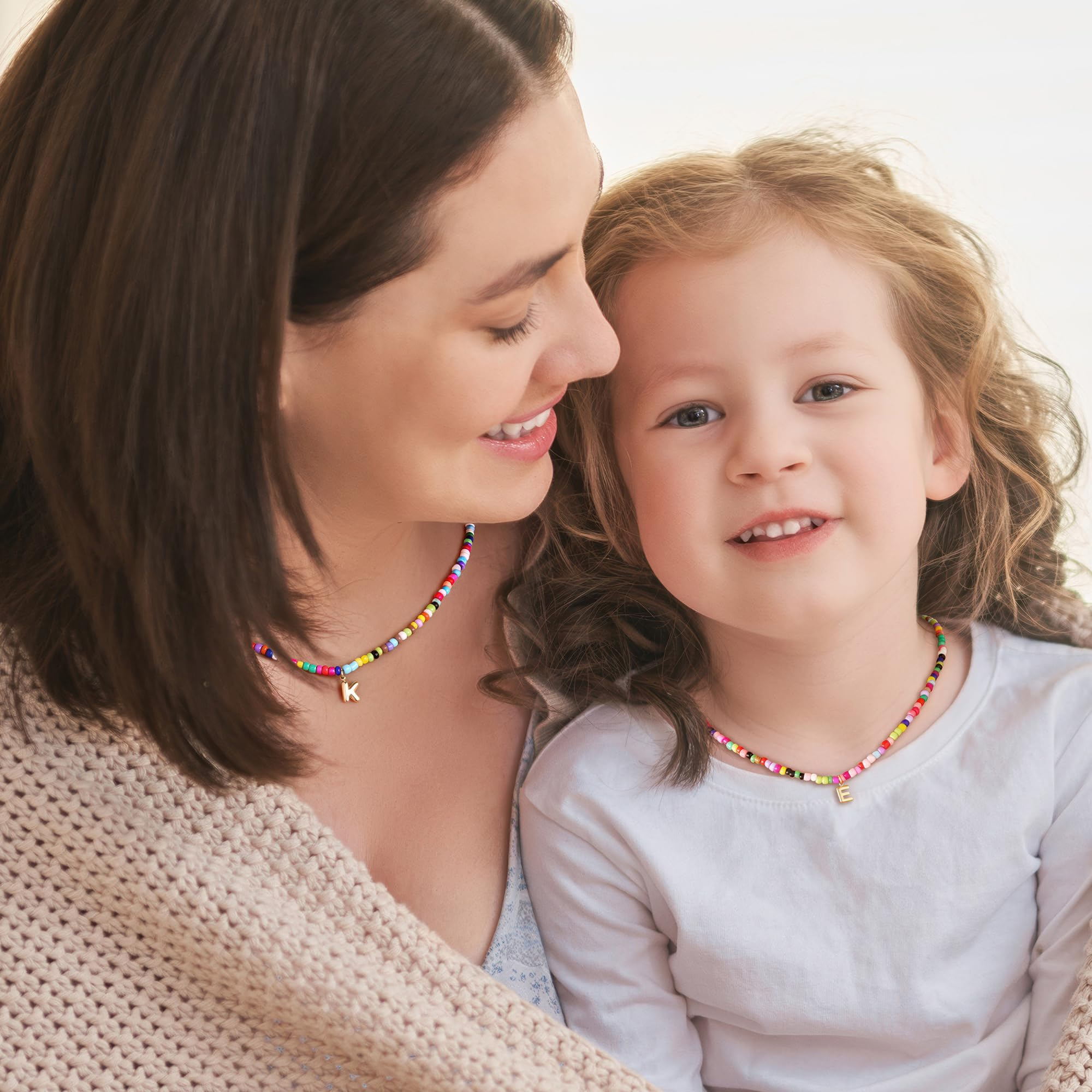Turandoss Colorful Beaded Necklace for Girls Women, Gold Bubble Initial Bead Necklaces for Kids, Birthday Gifts, Valentine's Day Mom Gift for Girl