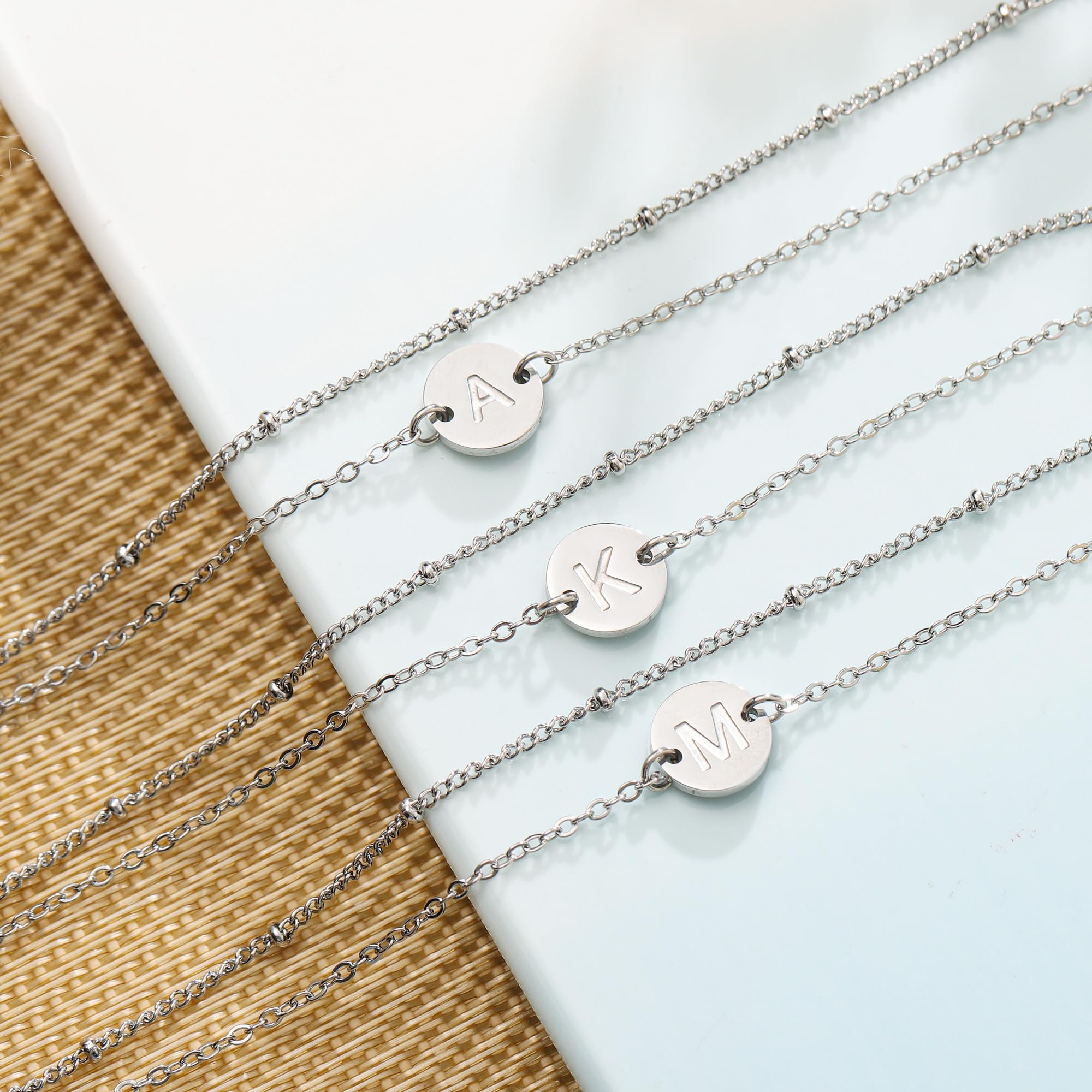 Design: The stainless steel letter pendant is 10mm in diameter and 1.5mm thick..