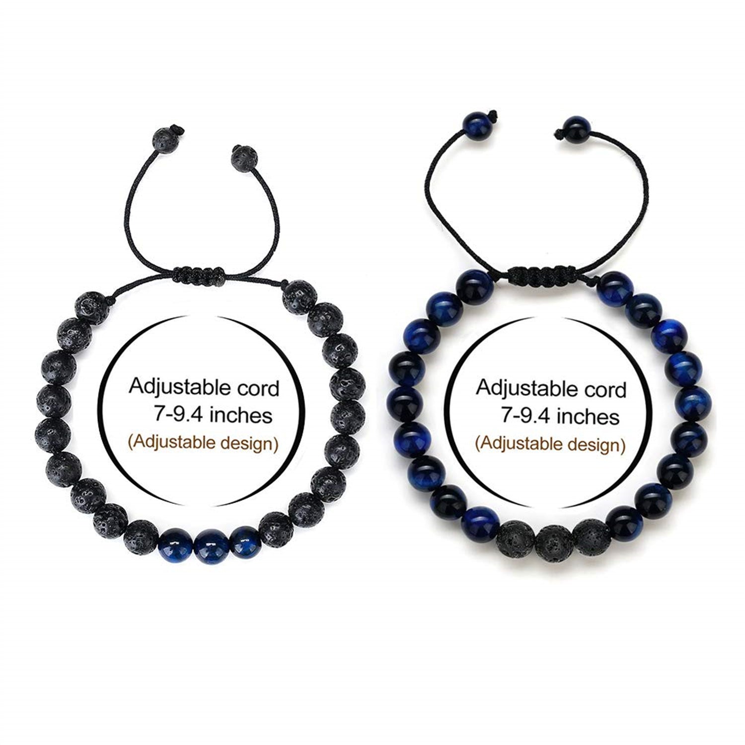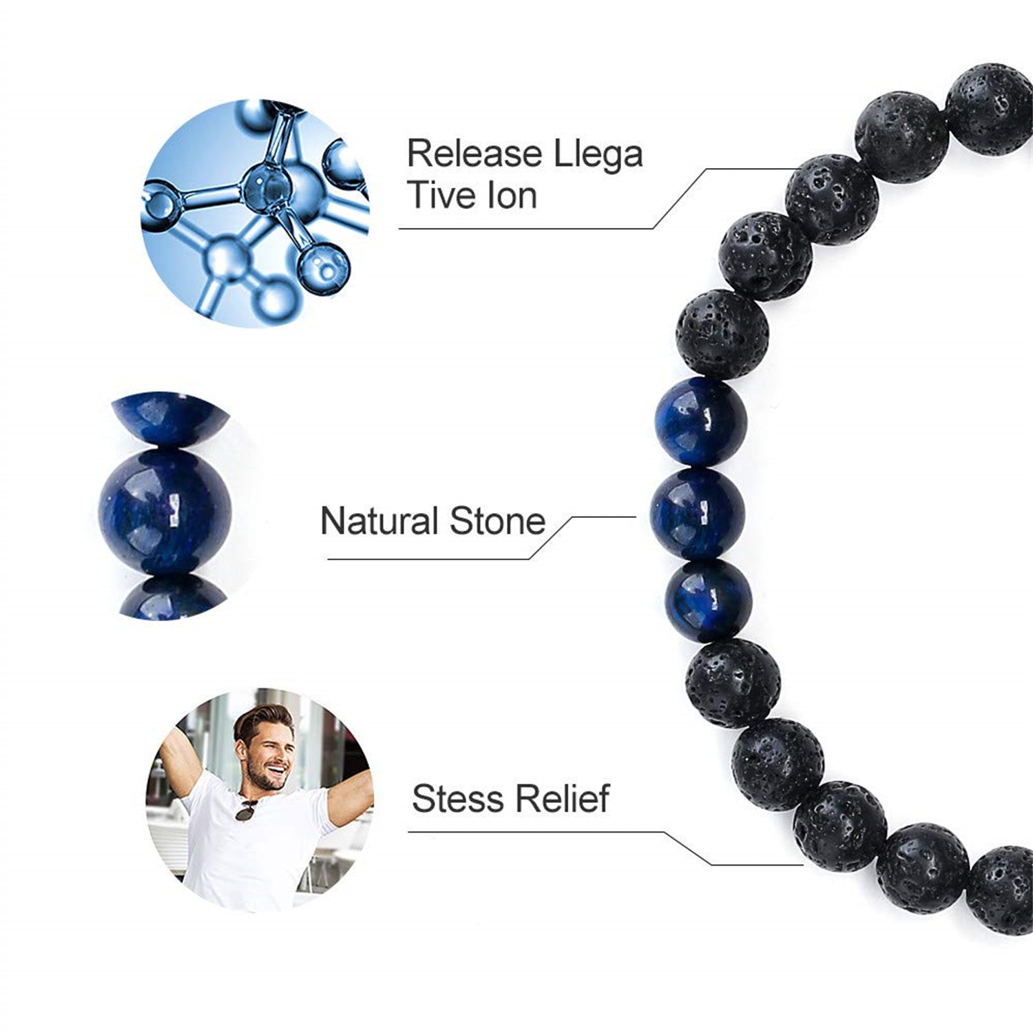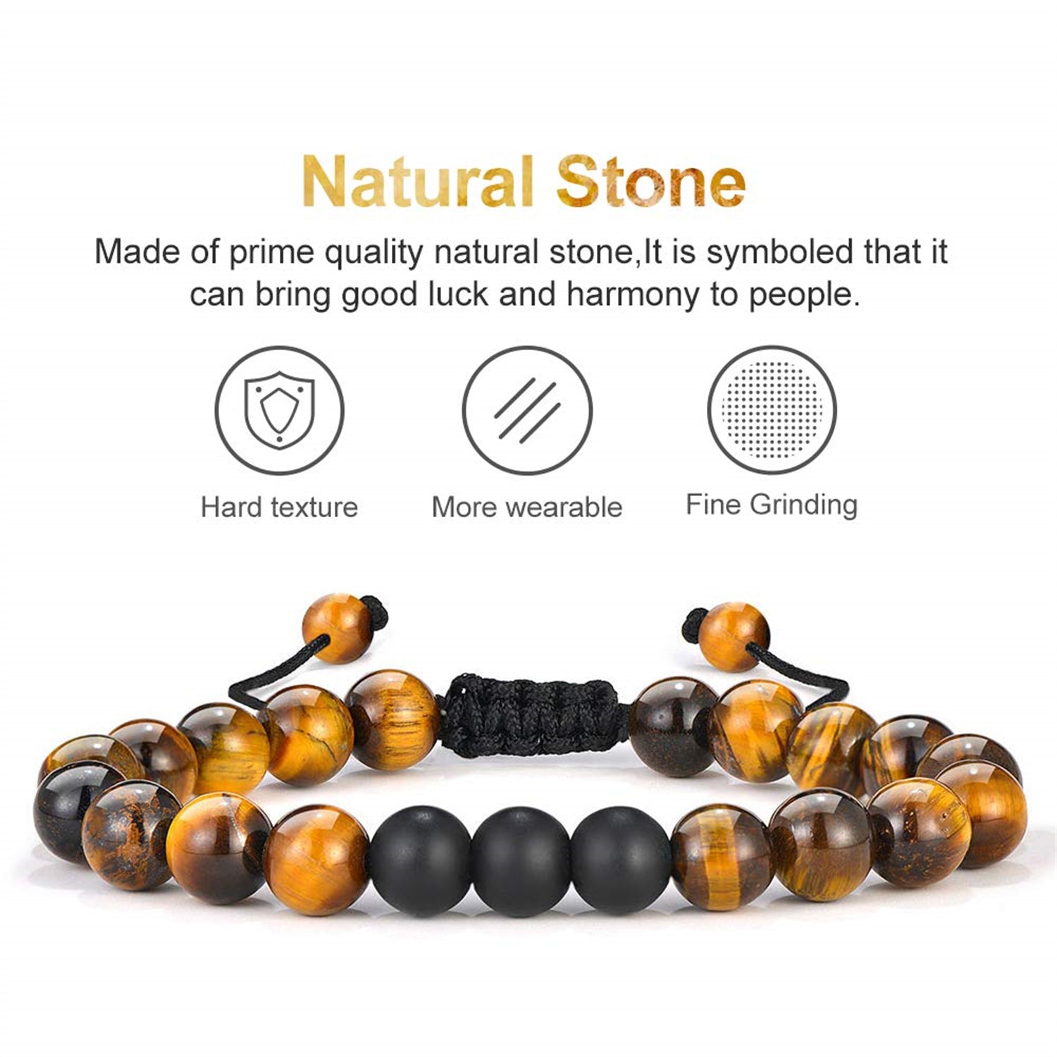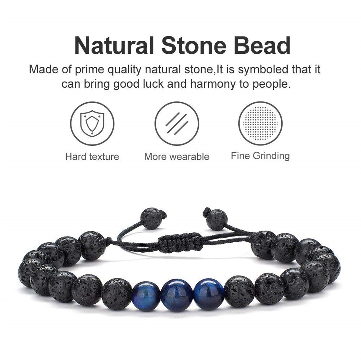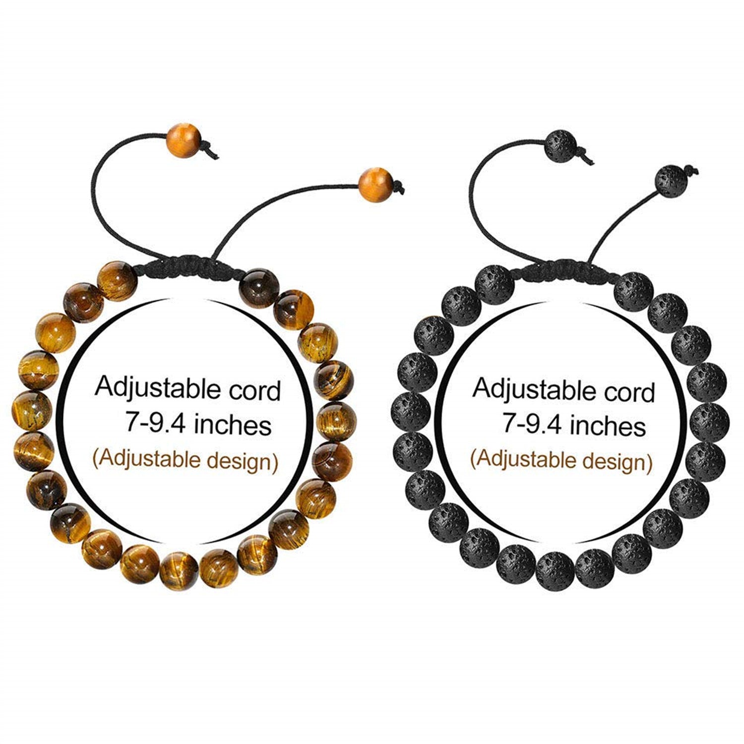 Turandoss 8mm Tiger Eye Natural Stone for Men Black Lava Rock  Beaded Anxiety Relief Rope Bracelets for Men Adjustable Unique Jewelry Birthday Gifts for Men Boys