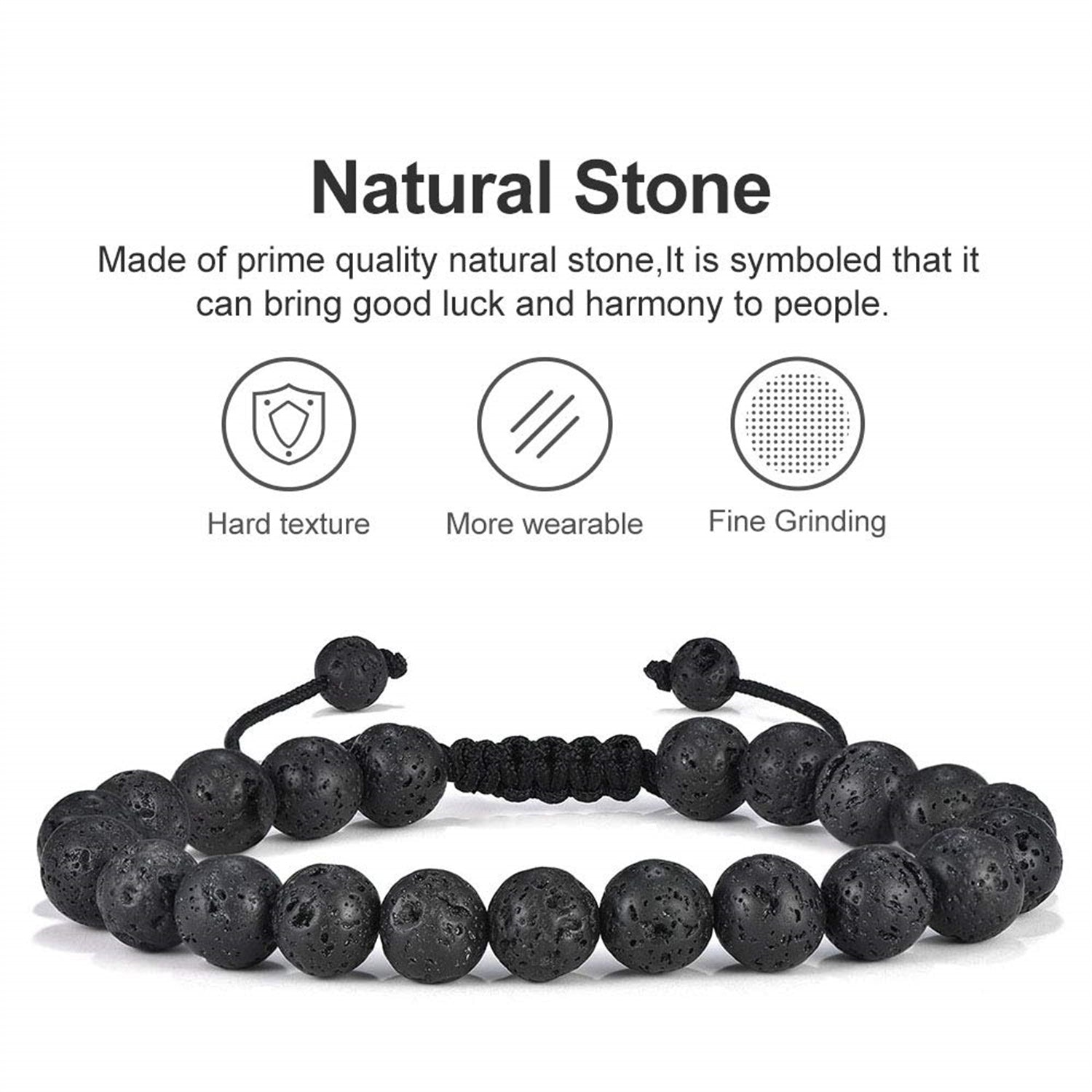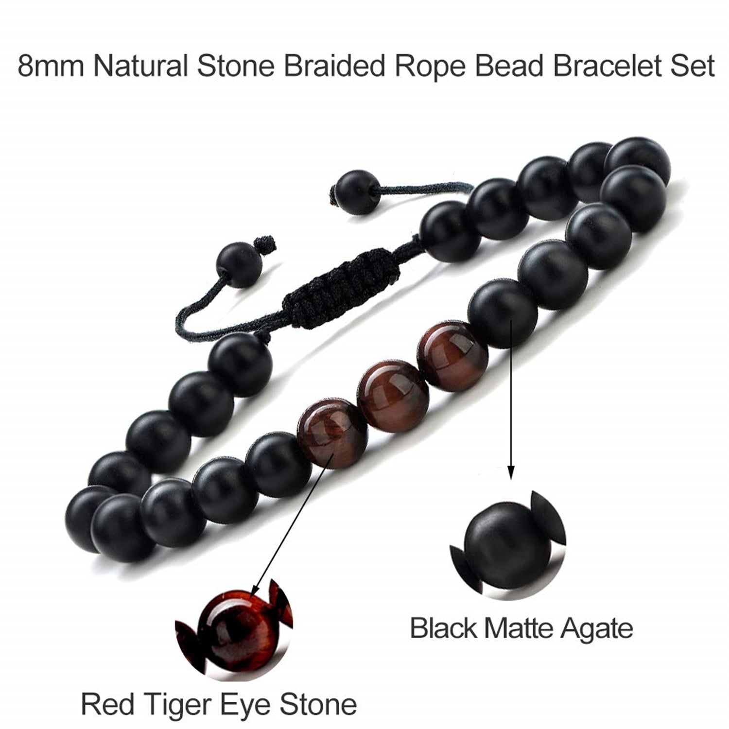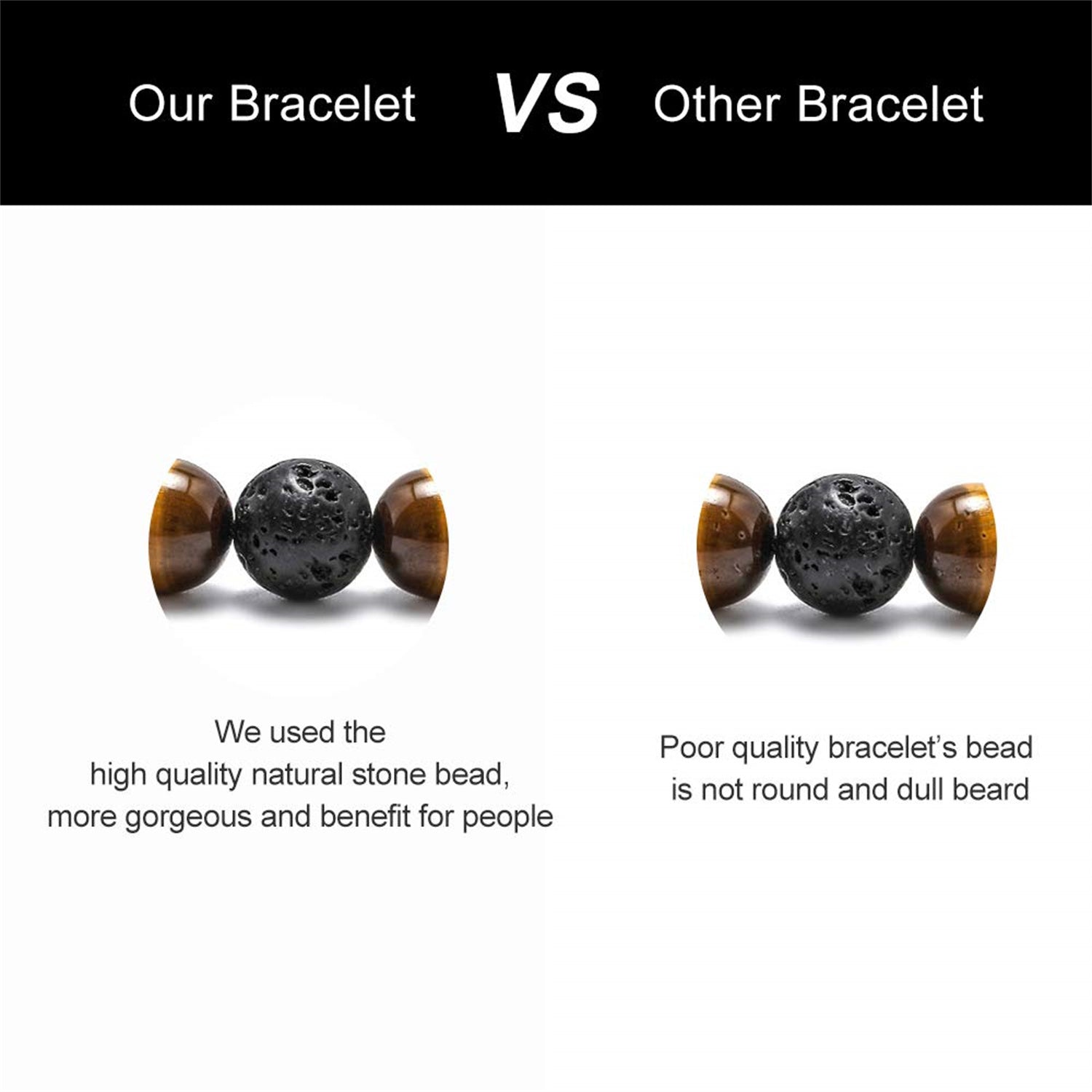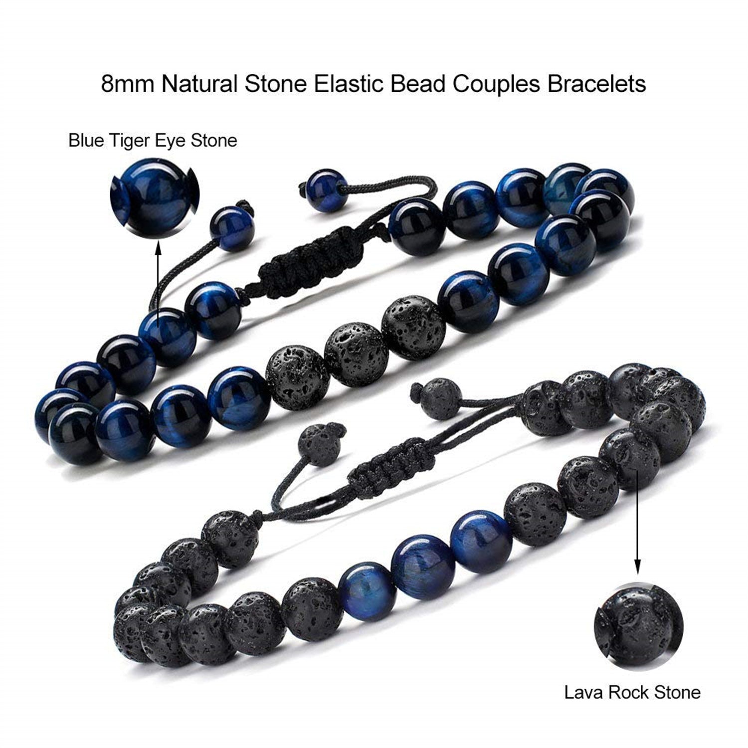 Turandoss 8mm Tiger Eye Natural Stone for Men Black Lava Rock  Beaded Anxiety Relief Rope Bracelets for Men Adjustable Unique Jewelry Birthday Gifts for Men Boys