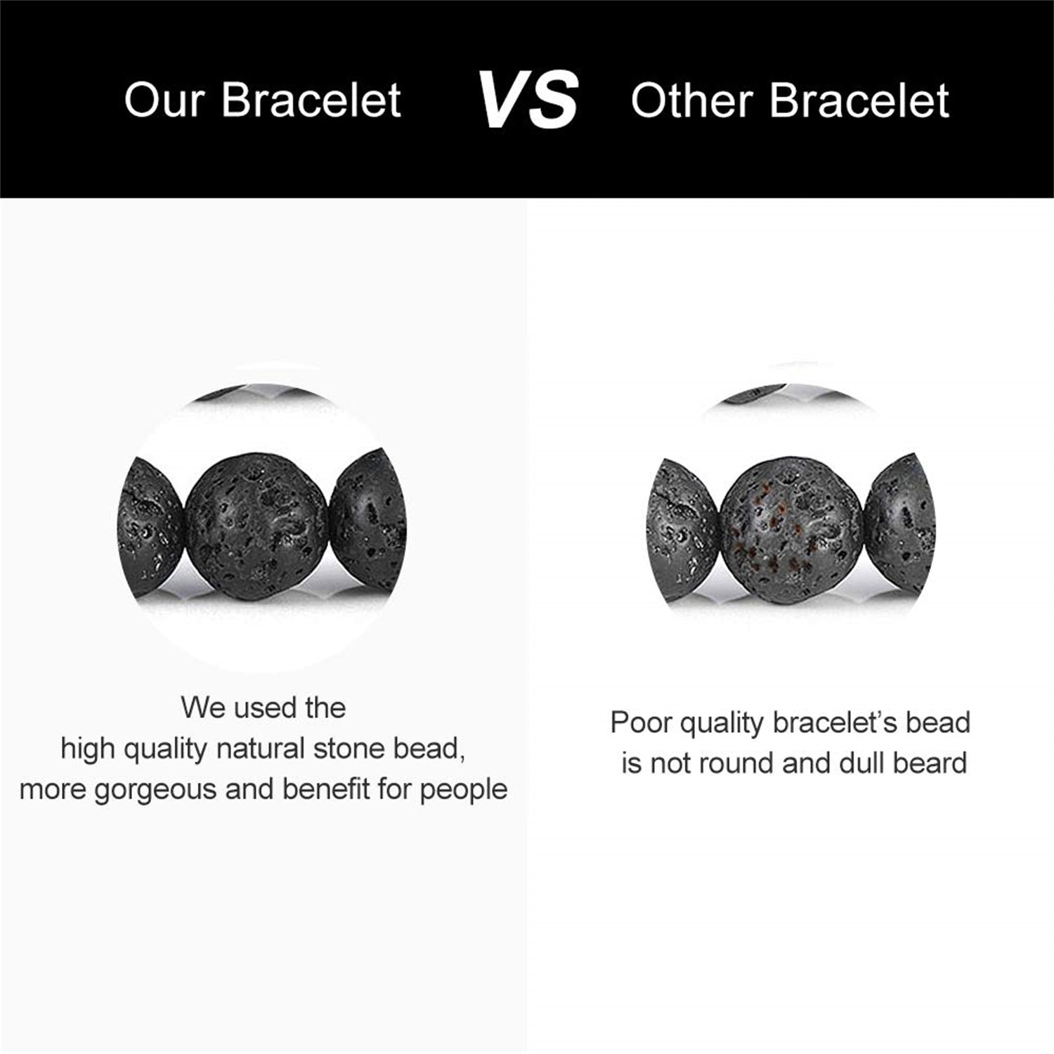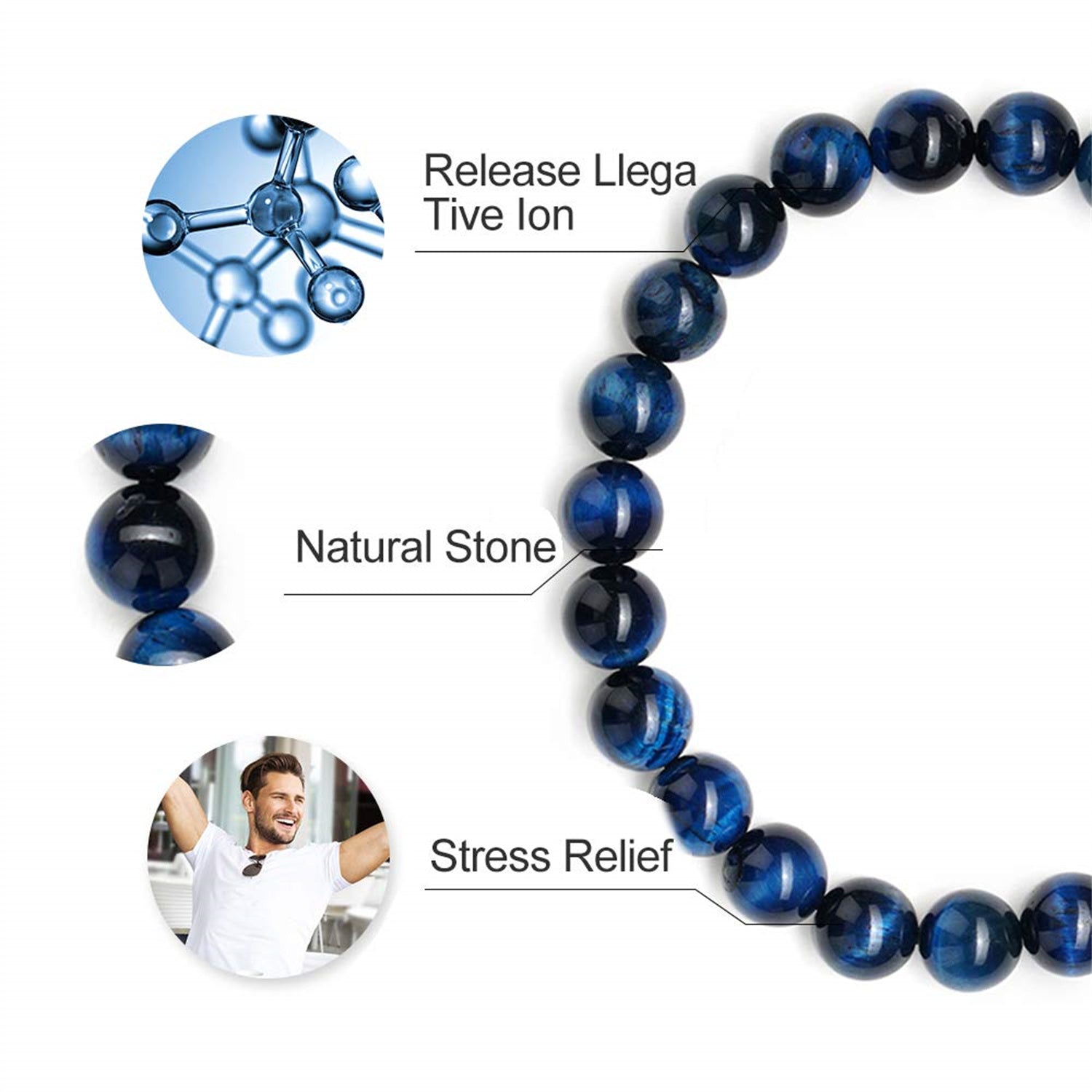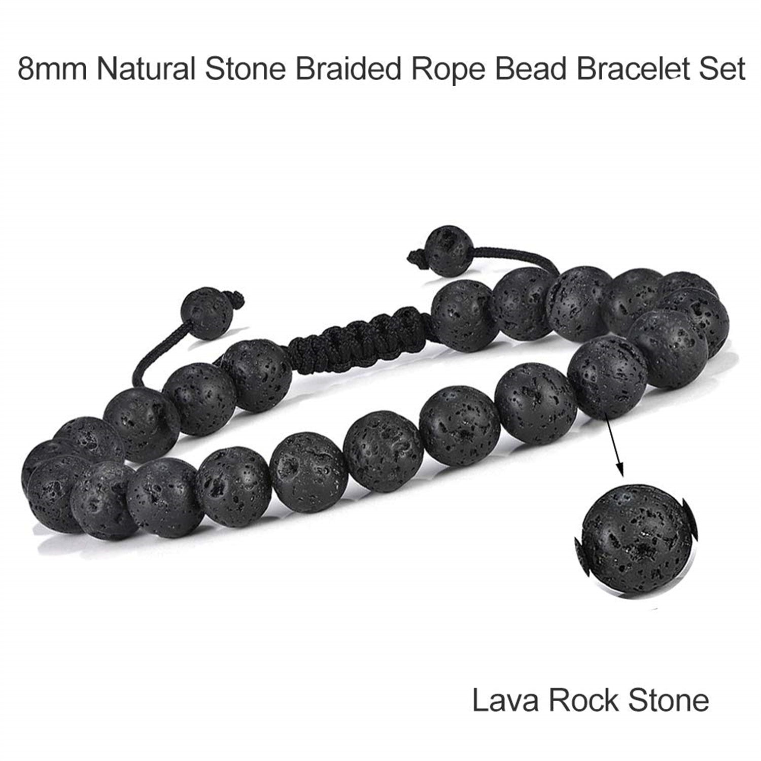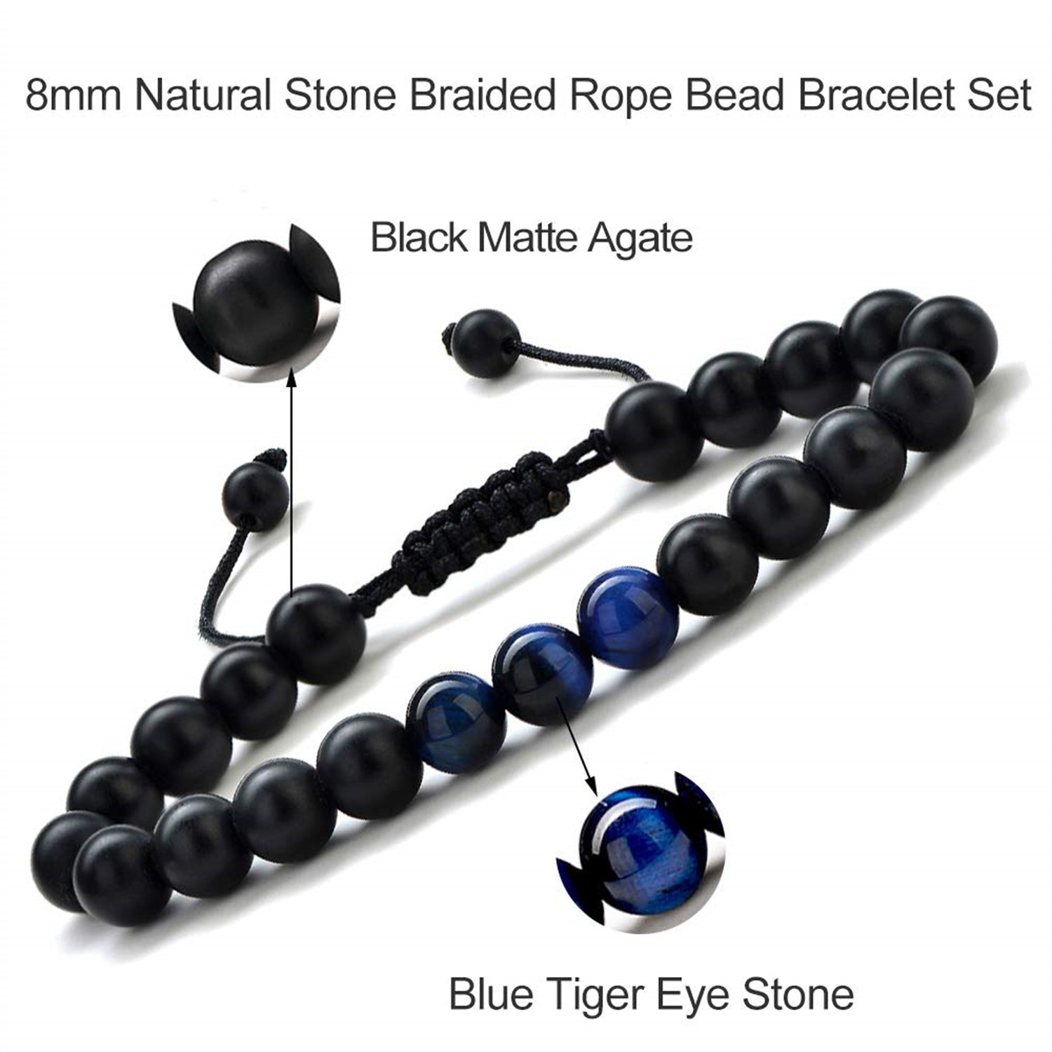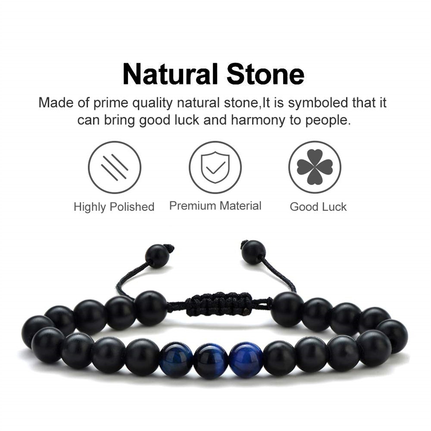 Turandoss 8mm Tiger Eye Natural Stone for Men Black Lava Rock  Beaded Anxiety Relief Rope Bracelets for Men Adjustable Unique Jewelry Birthday Gifts for Men Boys