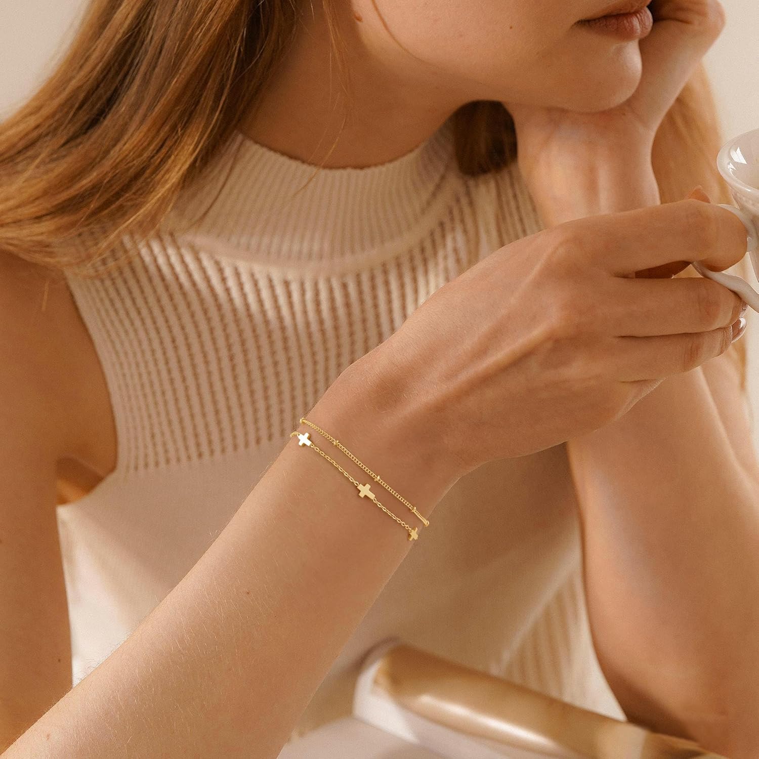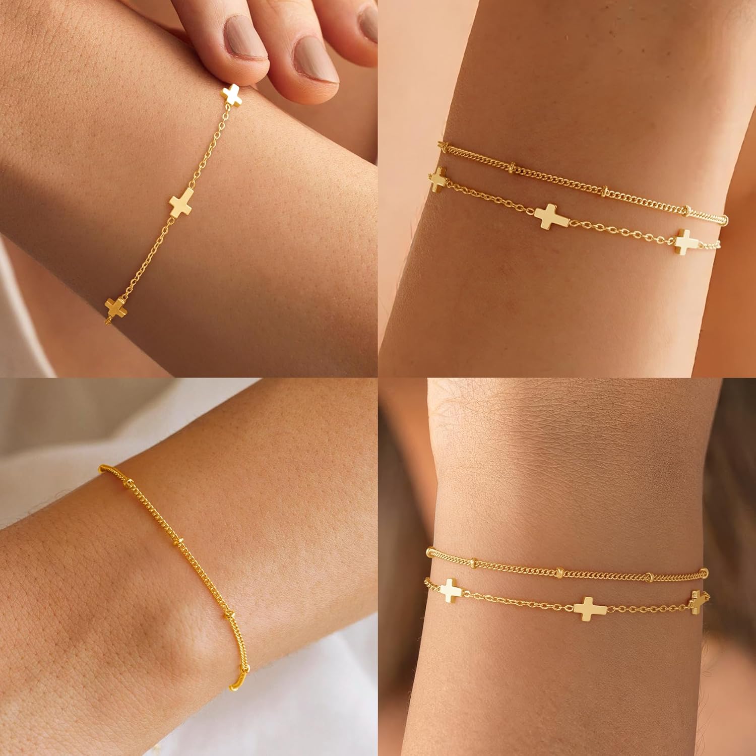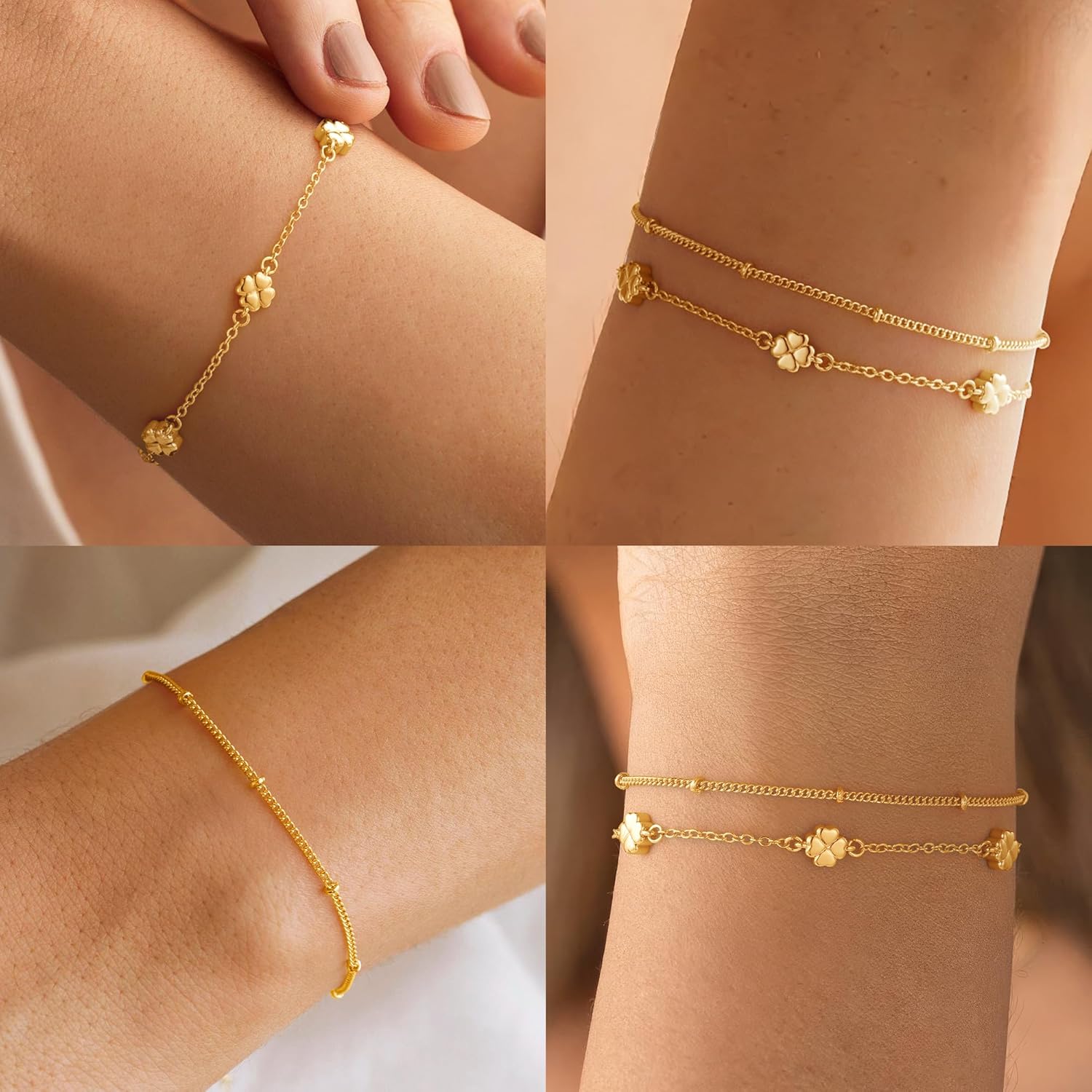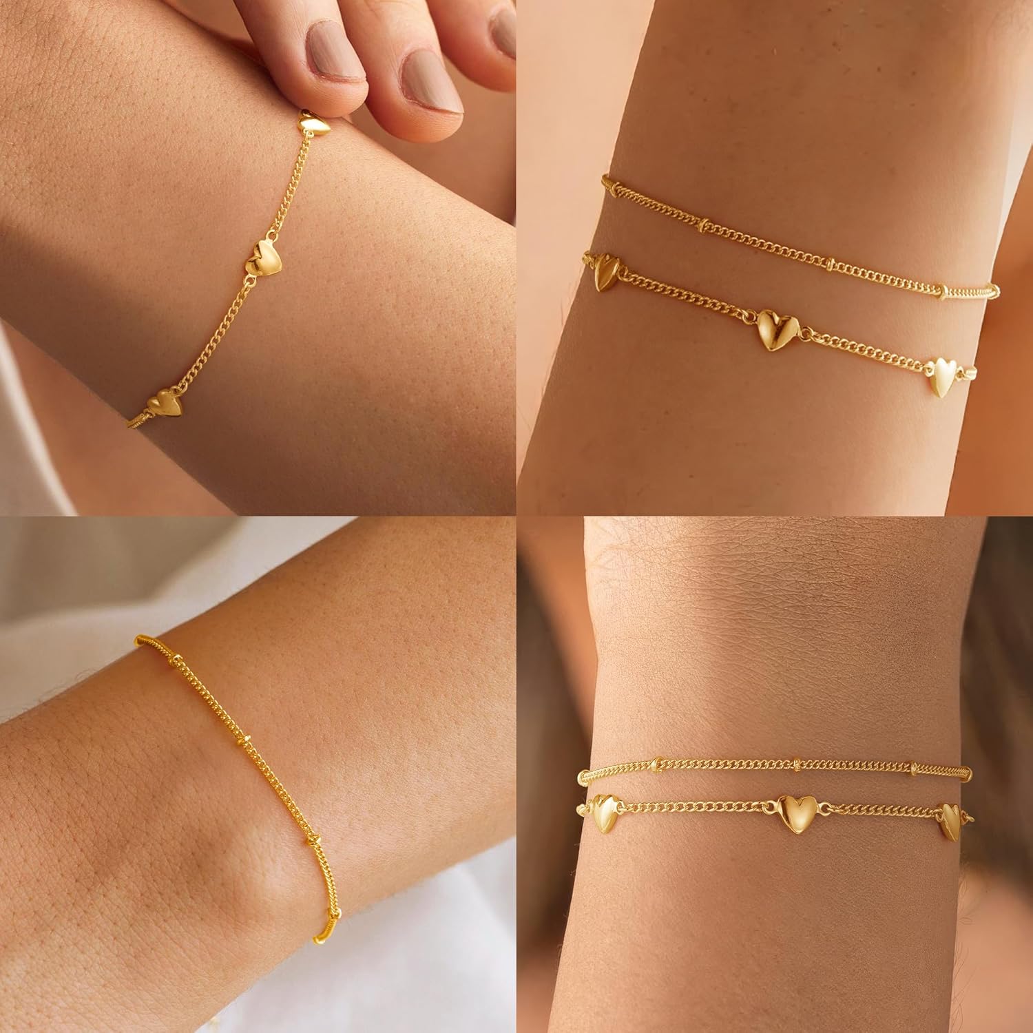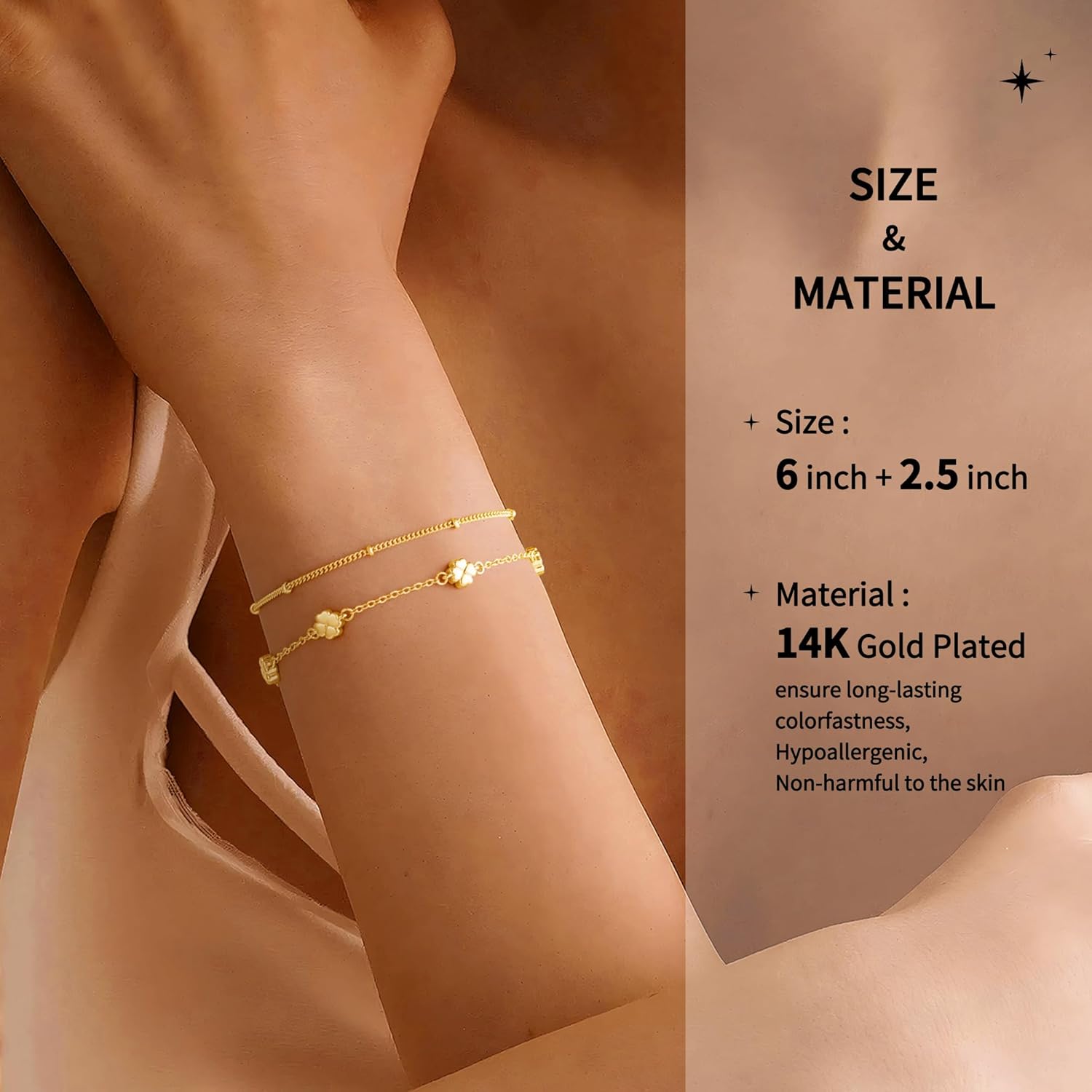 Turandoss Gold Plated Chunky Bow Bracelets for Women, Dainty Cute 14K Gold Butterfly Bracelet Double Layered Bracelet Stackable Bracelet Set, Birthday Gift for Wife Mom Non Tarnish Jewelry Fashion