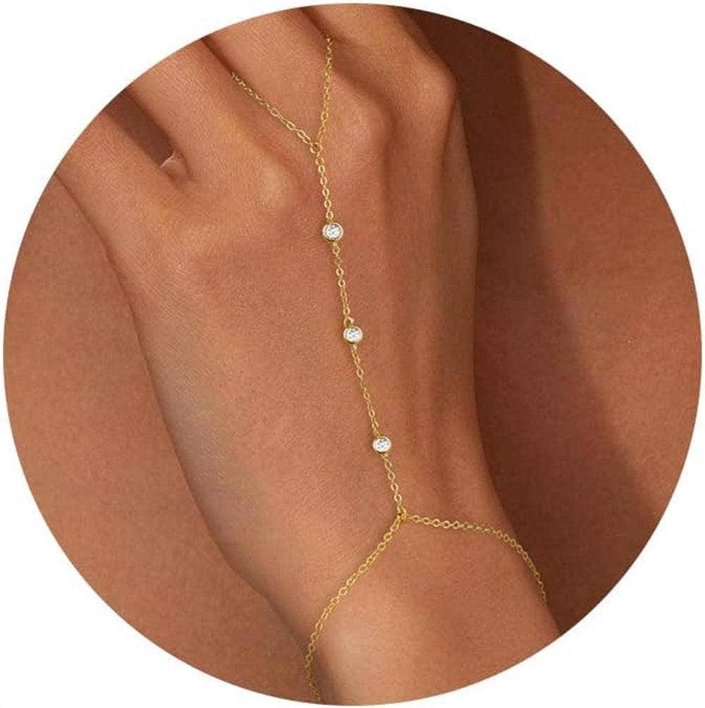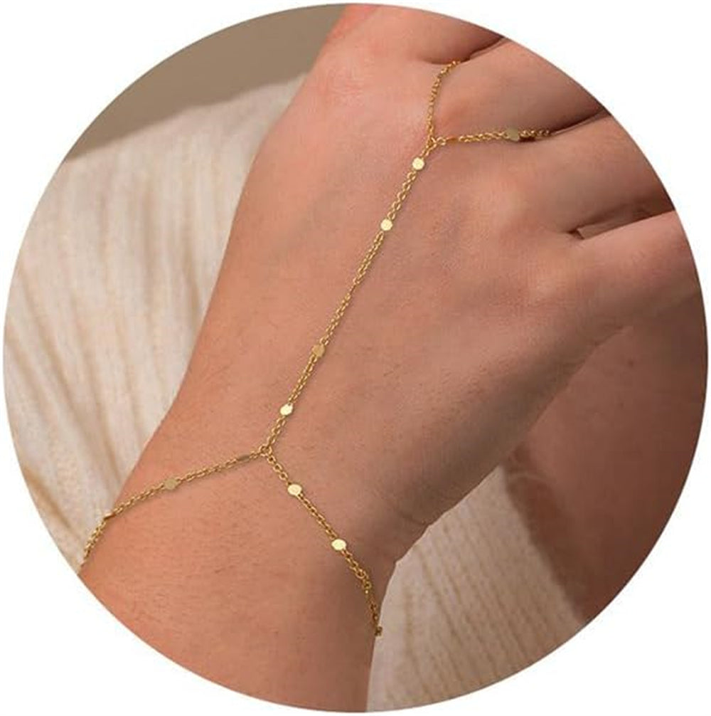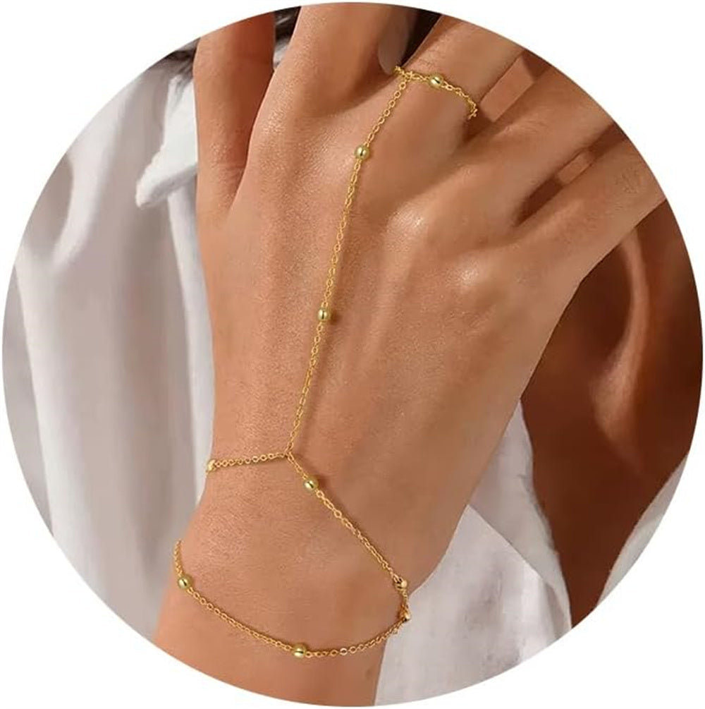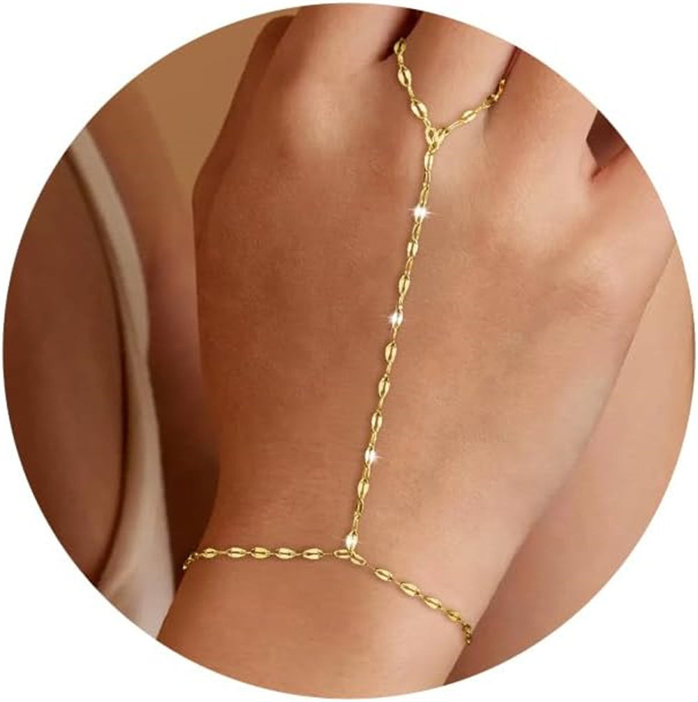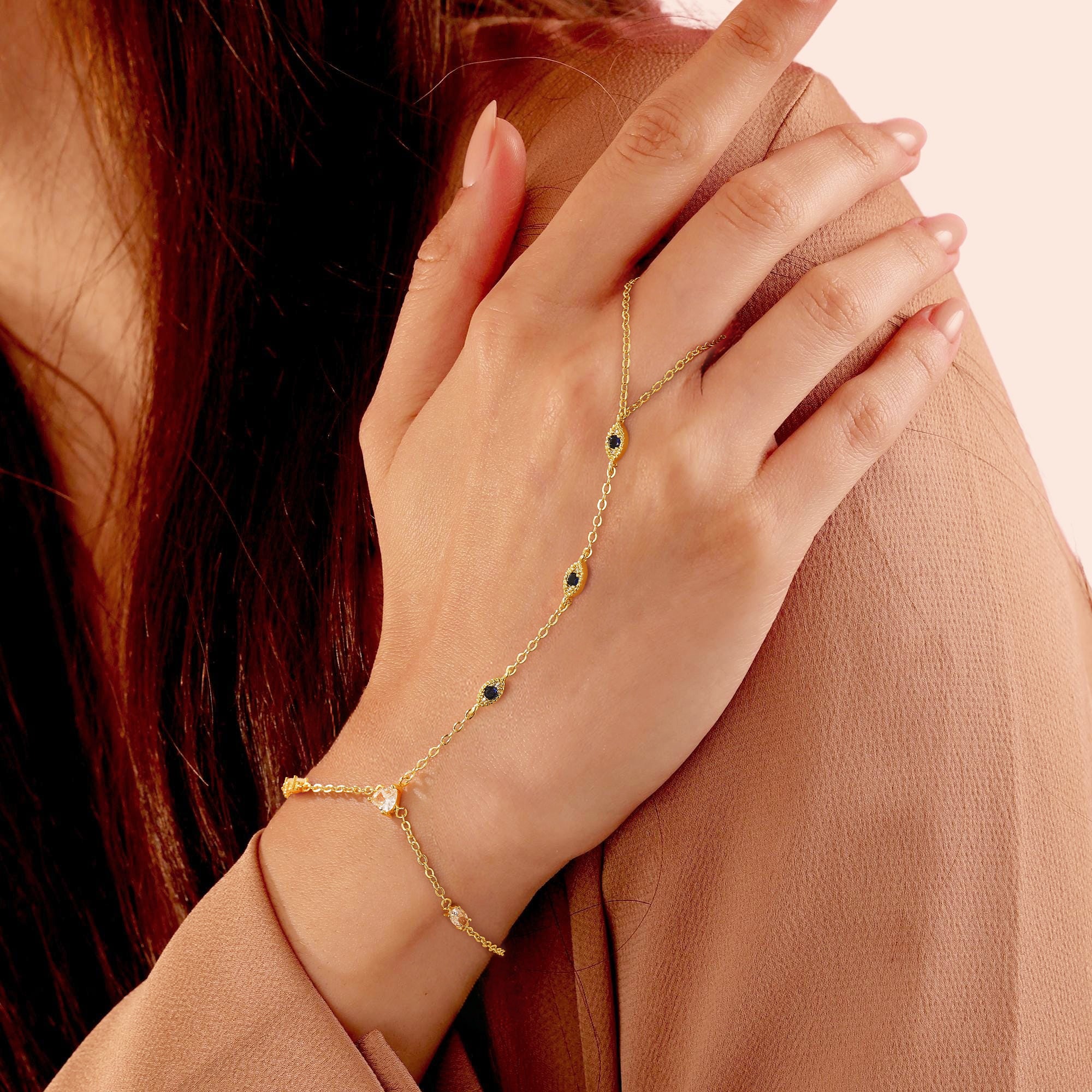 Turandoss Hand Chain Bracelets for Women Trendy - Dainty 14K Gold Plated Adjustable Evil Eye Finger Rings Cuff Bracelets Hand Chain Personalized Evil Eye Bracelet Waterproof Jewelry Accessories Gifts