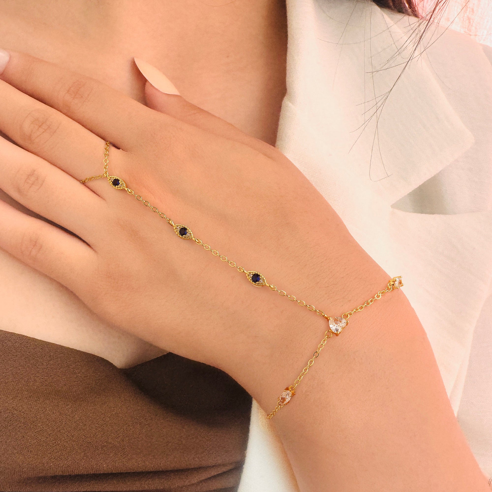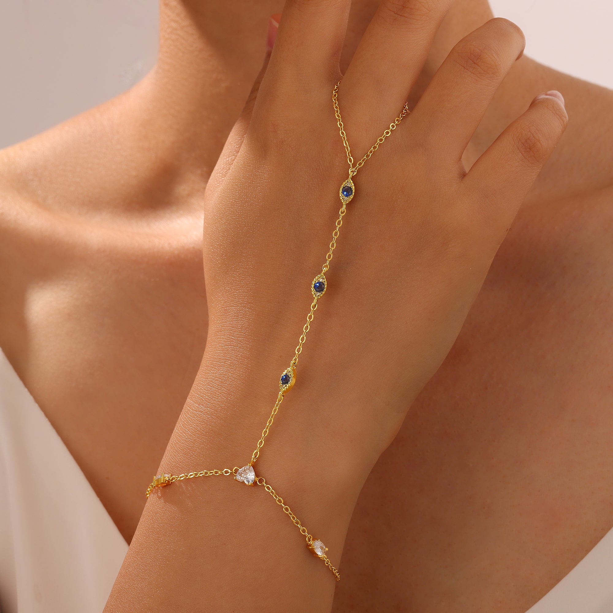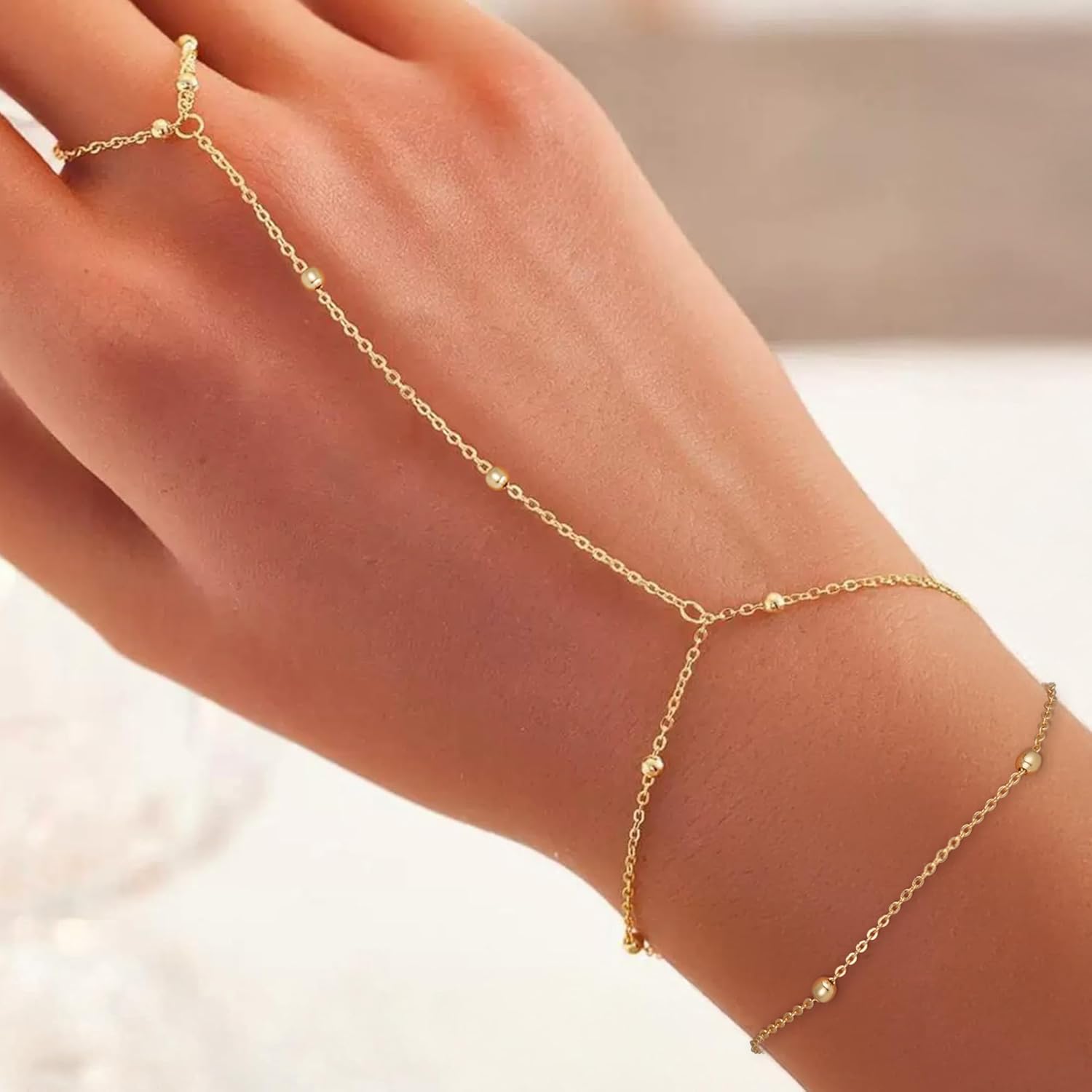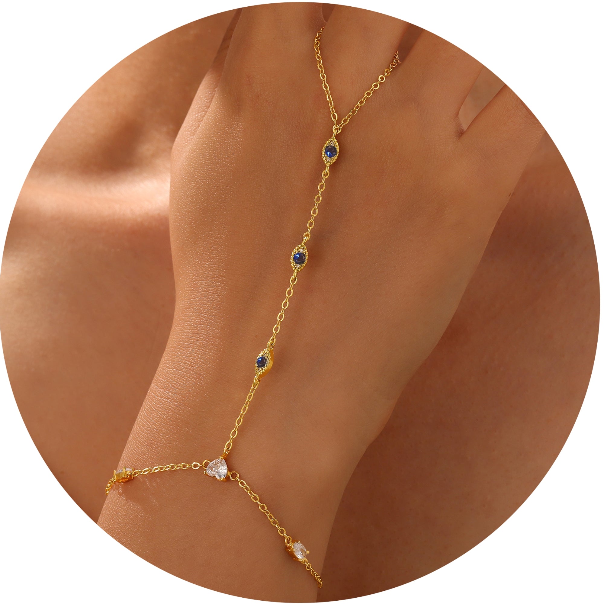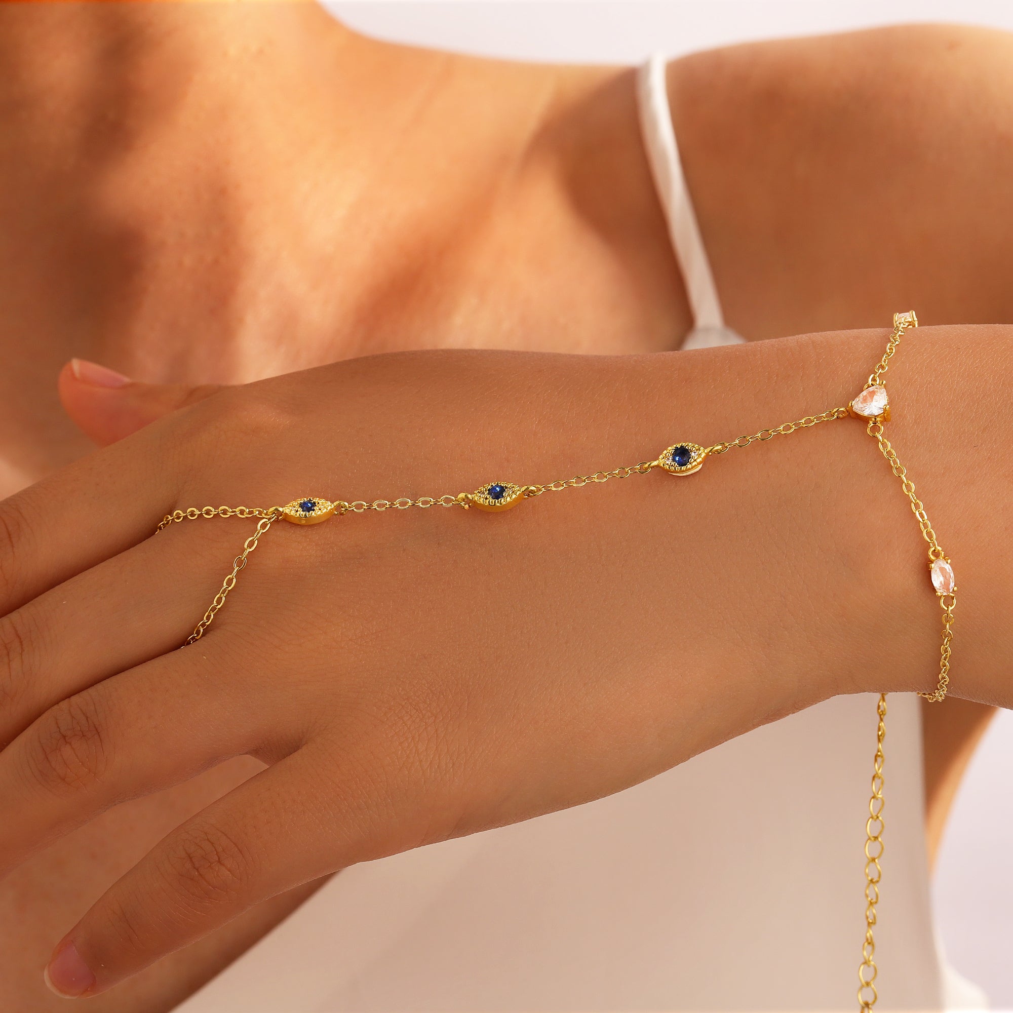 Turandoss Hand Chain Bracelets for Women Trendy - Dainty 14K Gold Plated Adjustable Evil Eye Finger Rings Cuff Bracelets Hand Chain Personalized Evil Eye Bracelet Waterproof Jewelry Accessories Gifts
