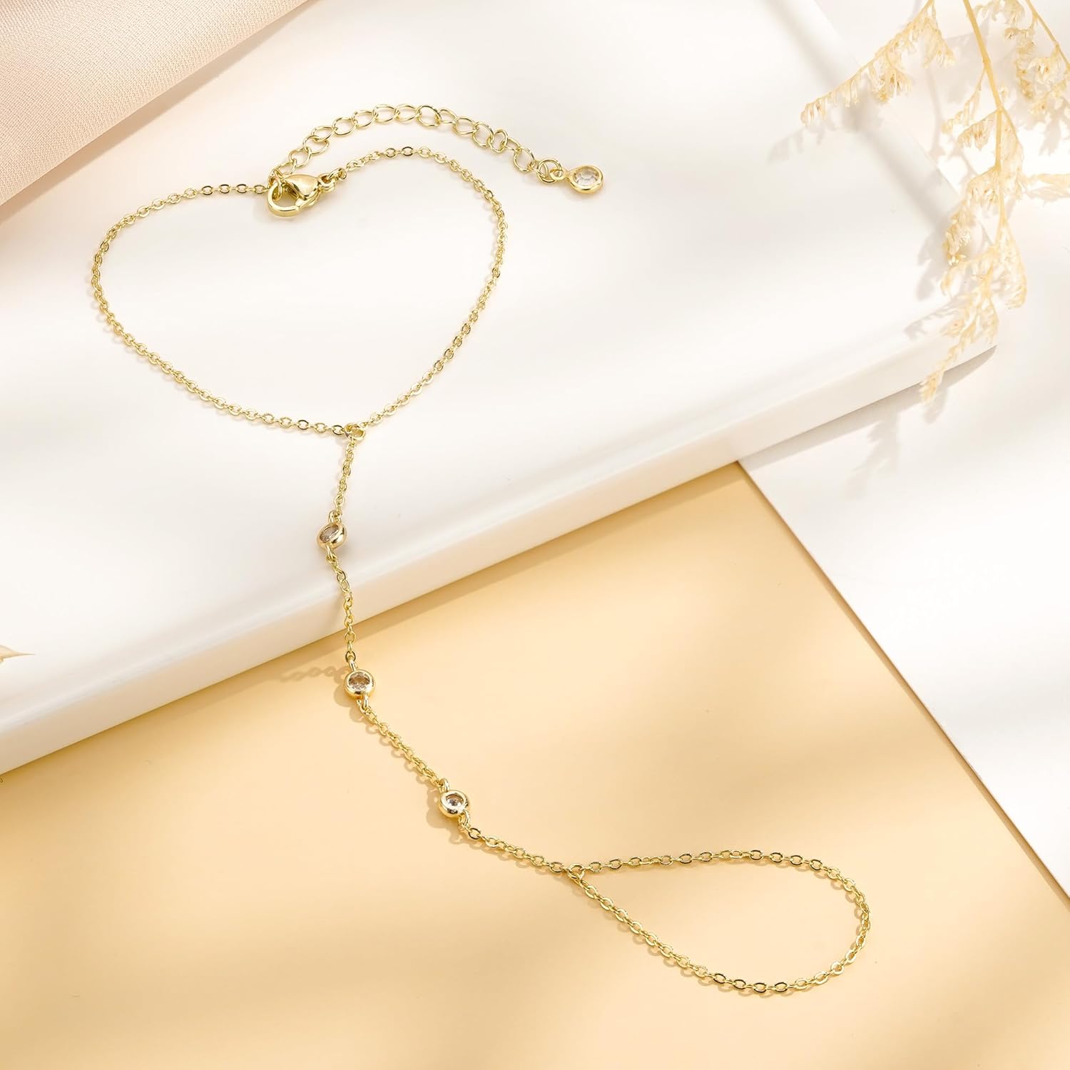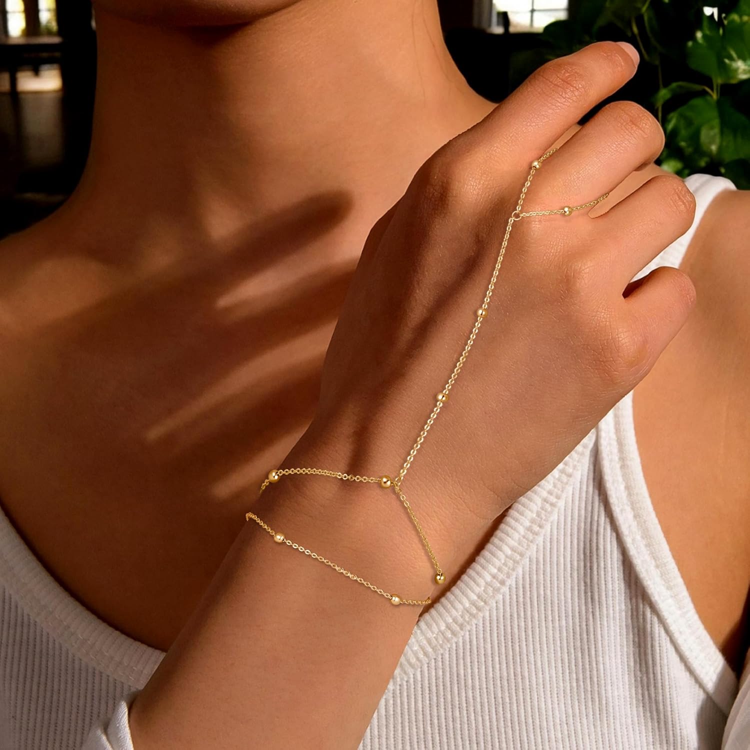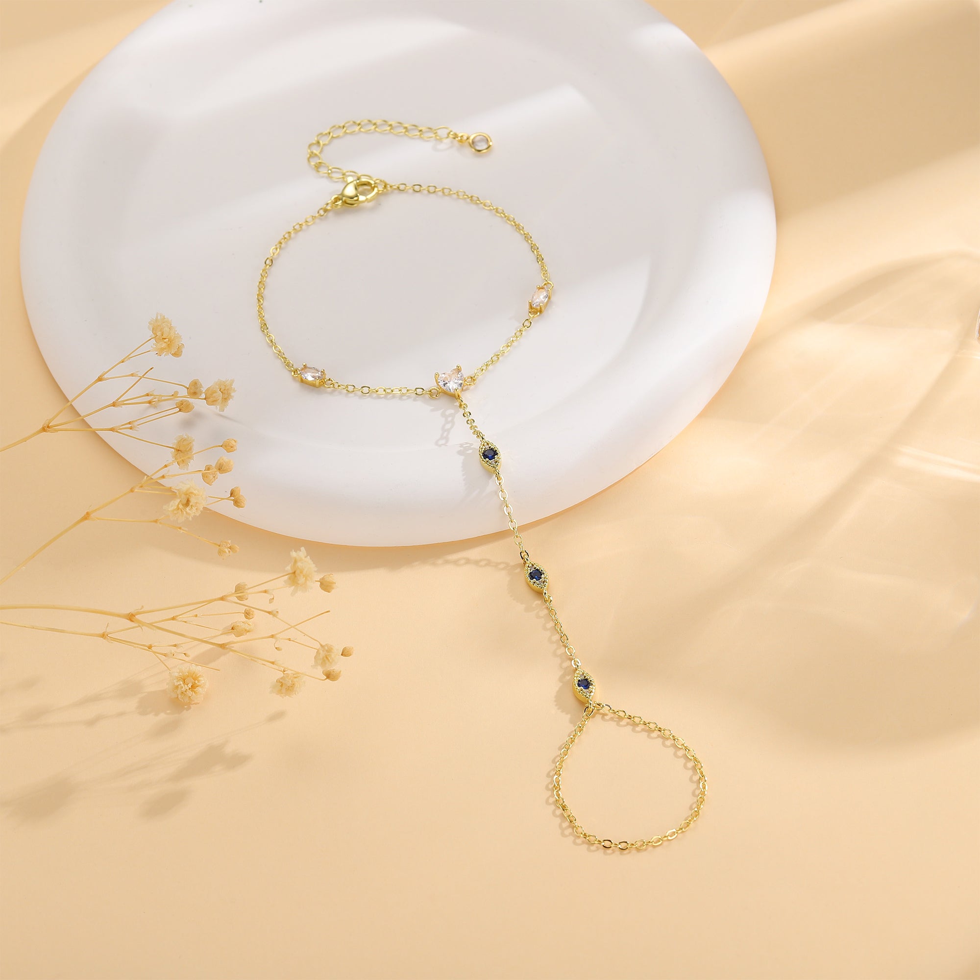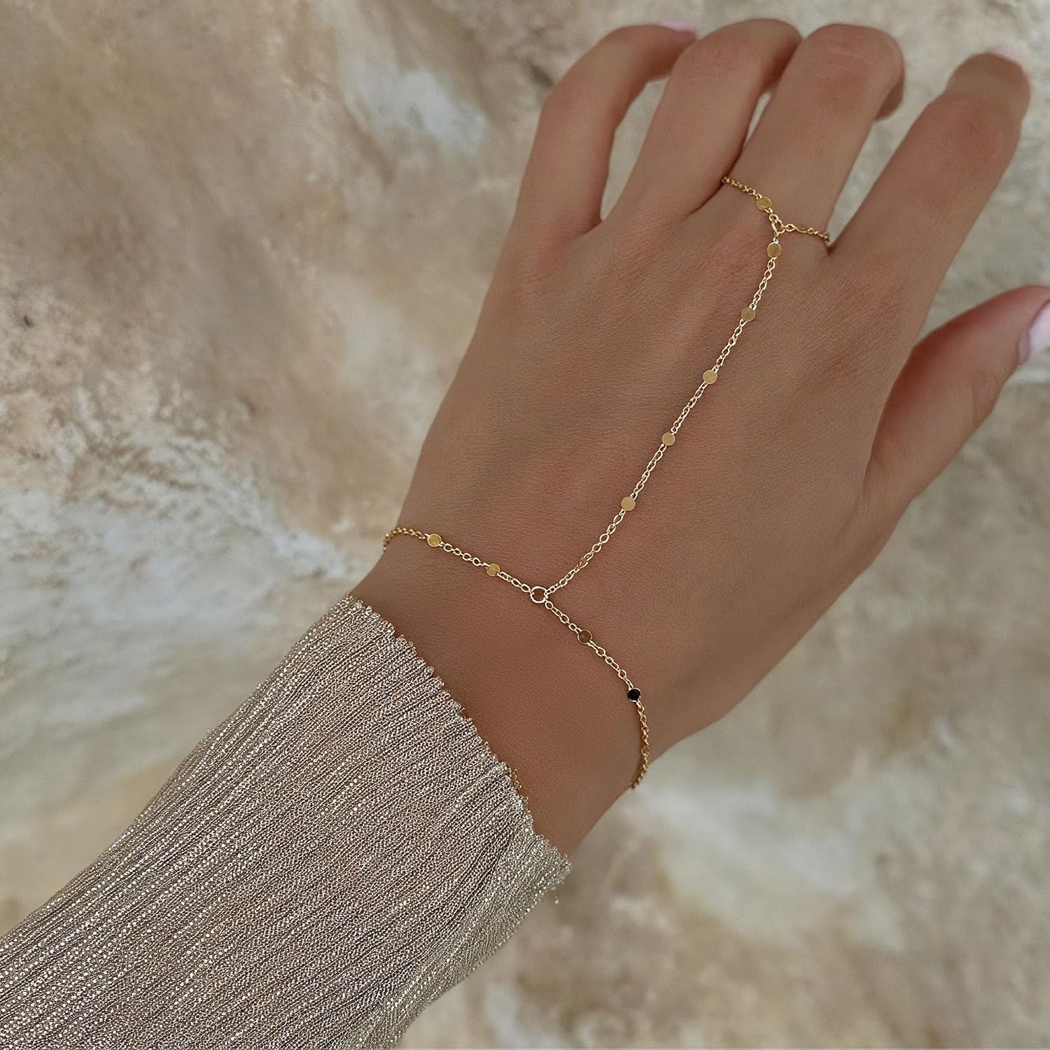 Turandoss Hand Chain Bracelets for Women Trendy - Dainty 14K Gold Plated Adjustable Evil Eye Finger Rings Cuff Bracelets Hand Chain Personalized Evil Eye Bracelet Waterproof Jewelry Accessories Gifts