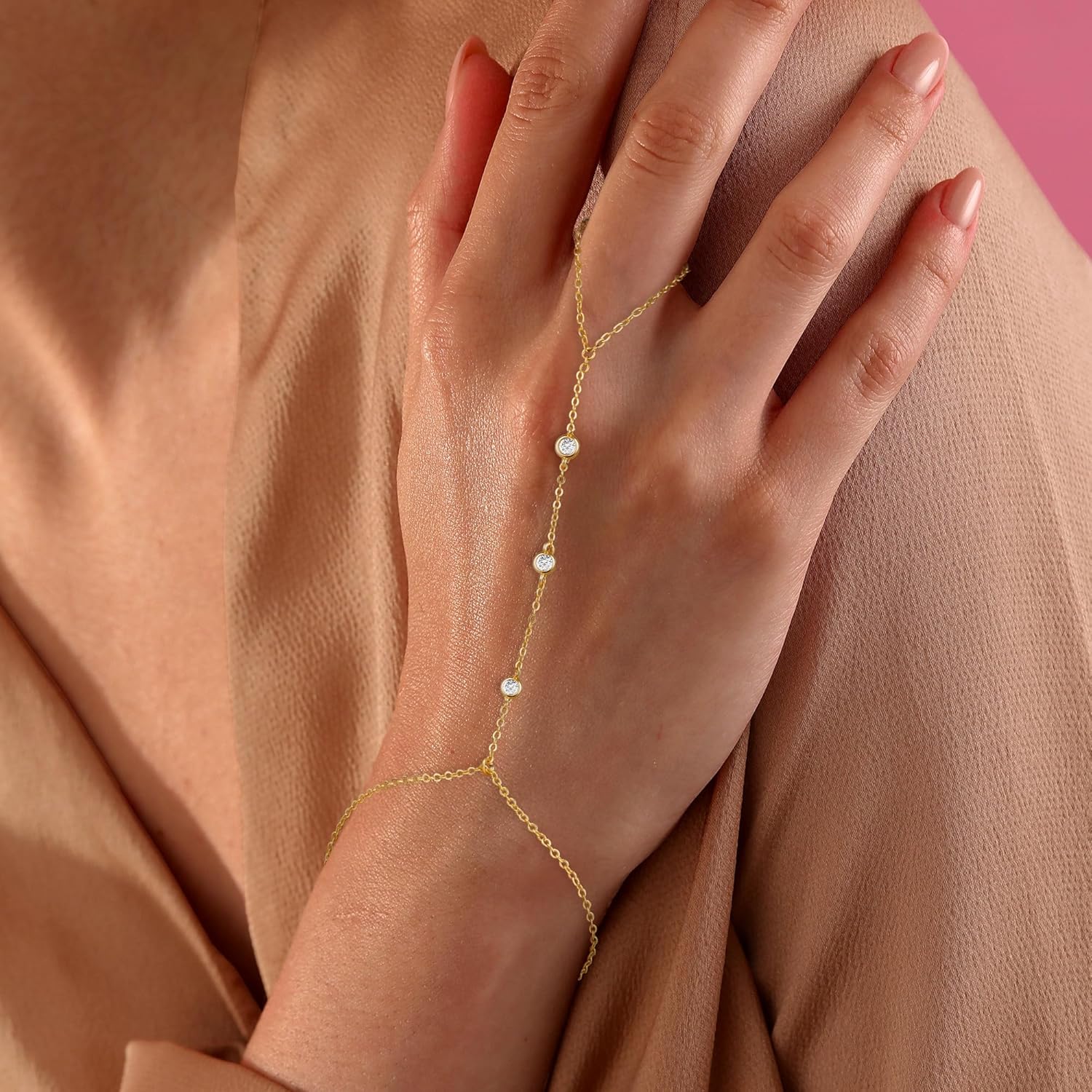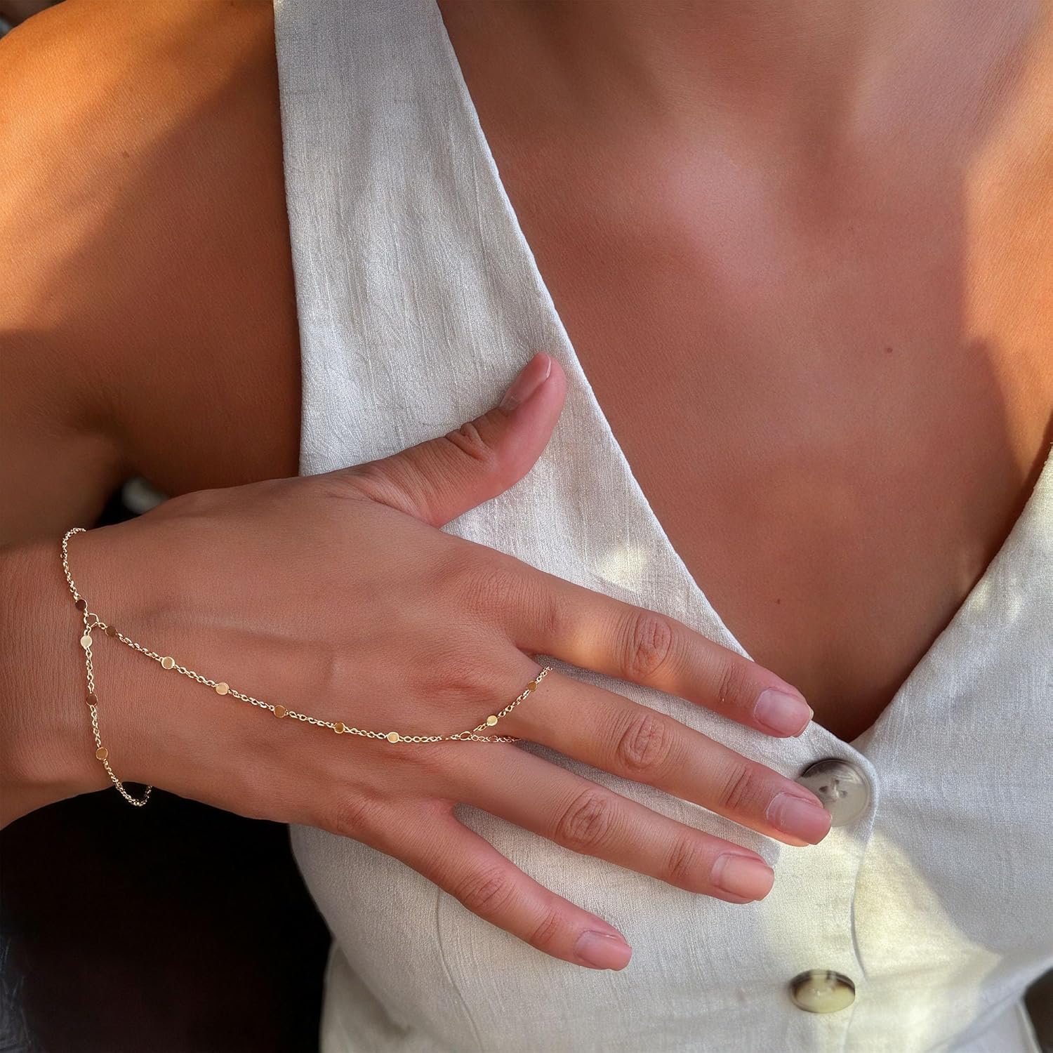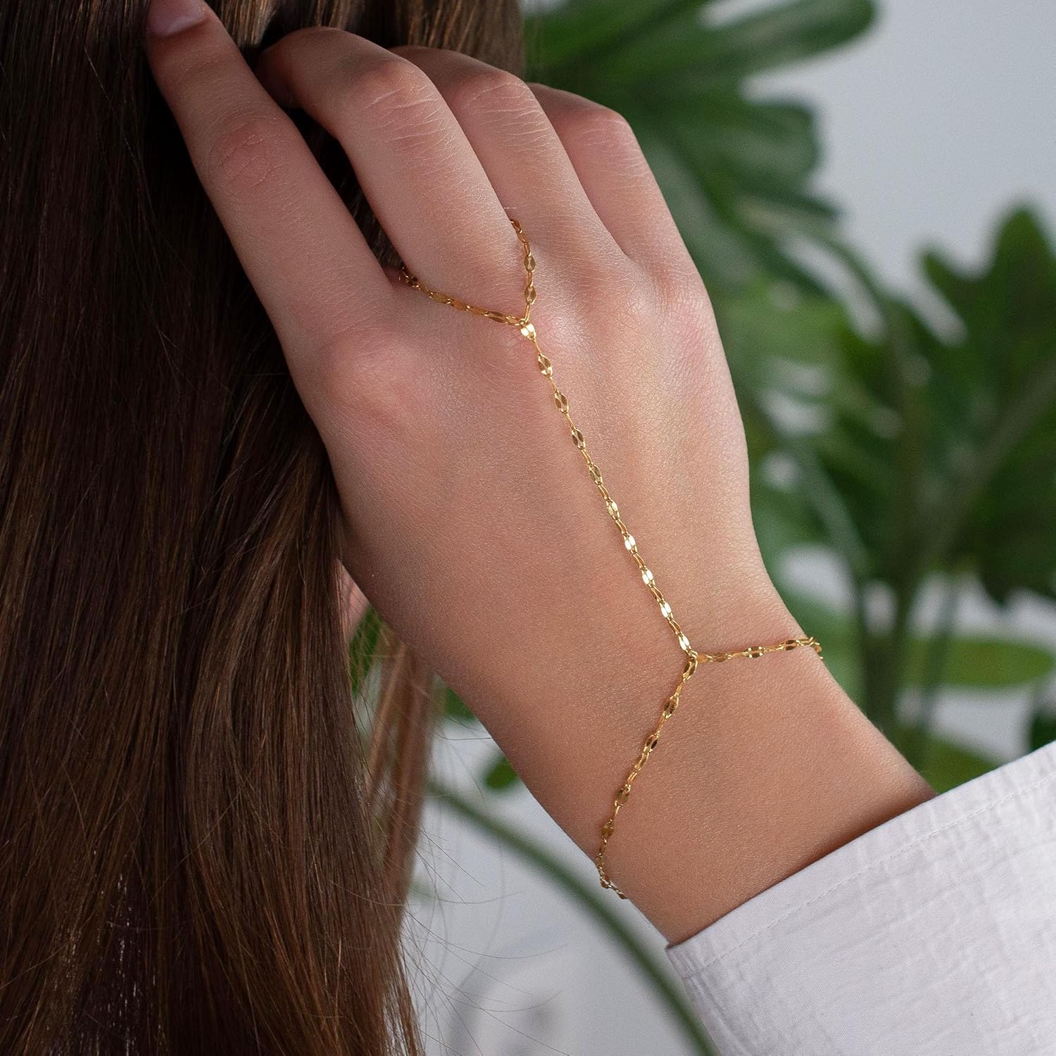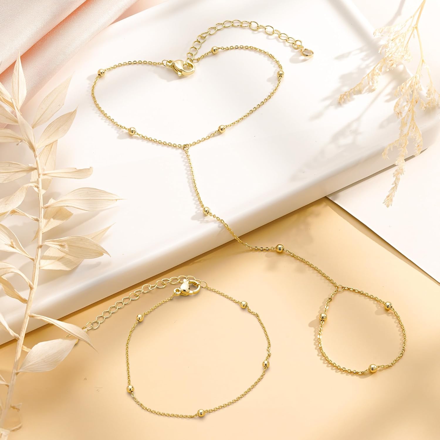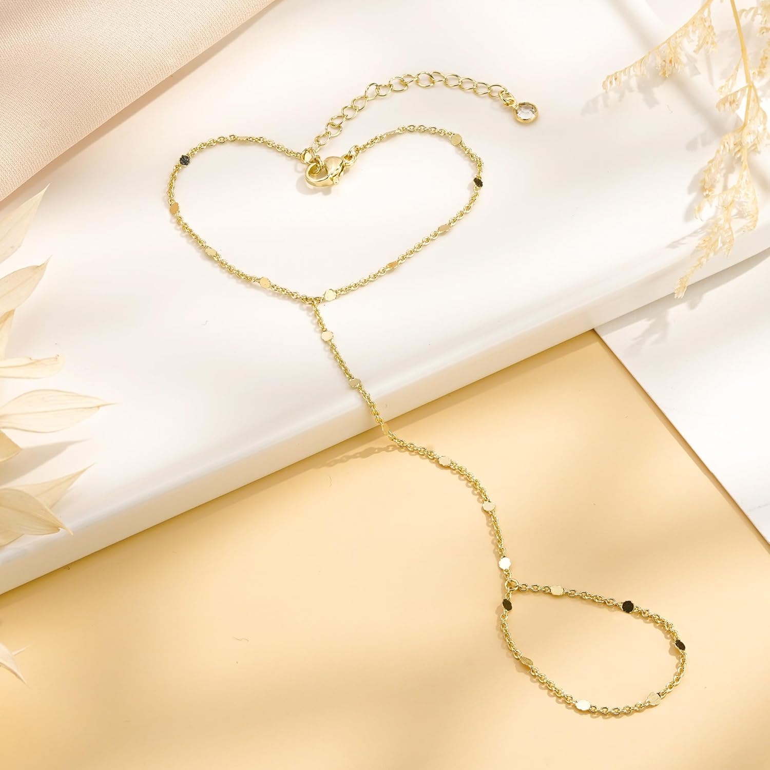 Turandoss Hand Chain Bracelets for Women Trendy - Dainty 14K Gold Plated Adjustable Evil Eye Finger Rings Cuff Bracelets Hand Chain Personalized Evil Eye Bracelet Waterproof Jewelry Accessories Gifts