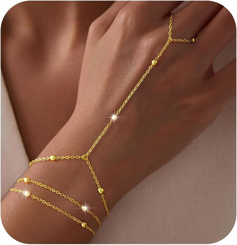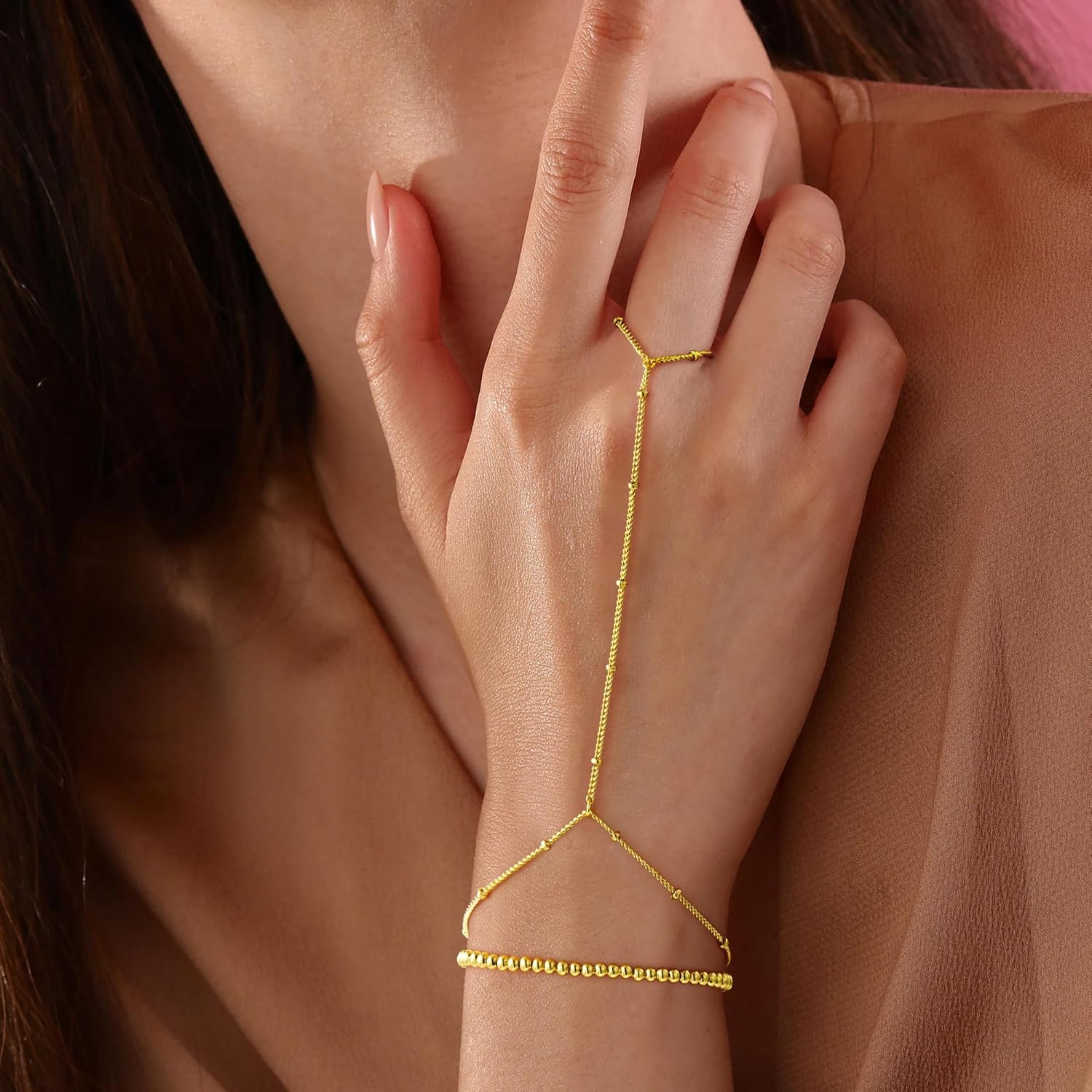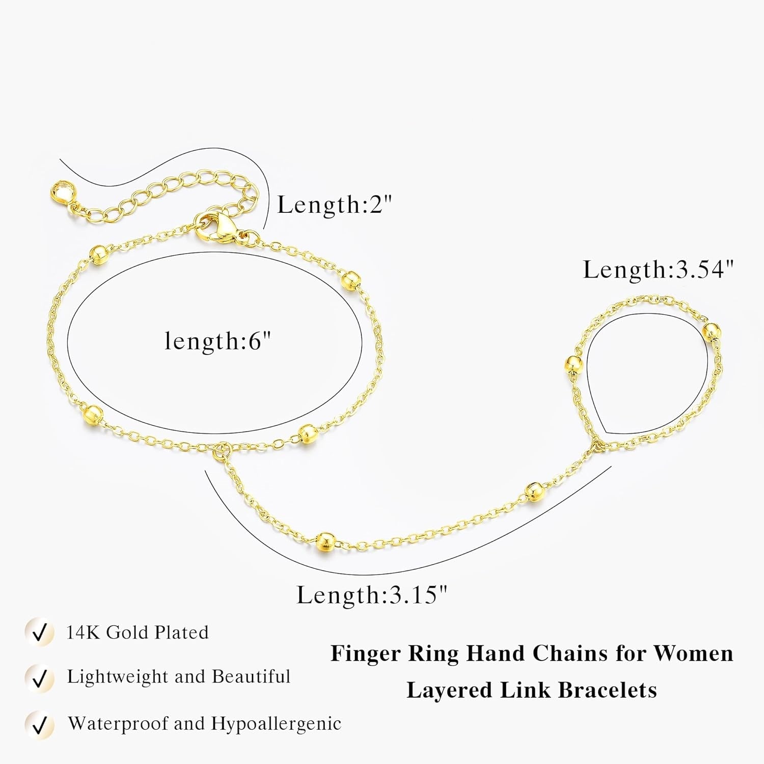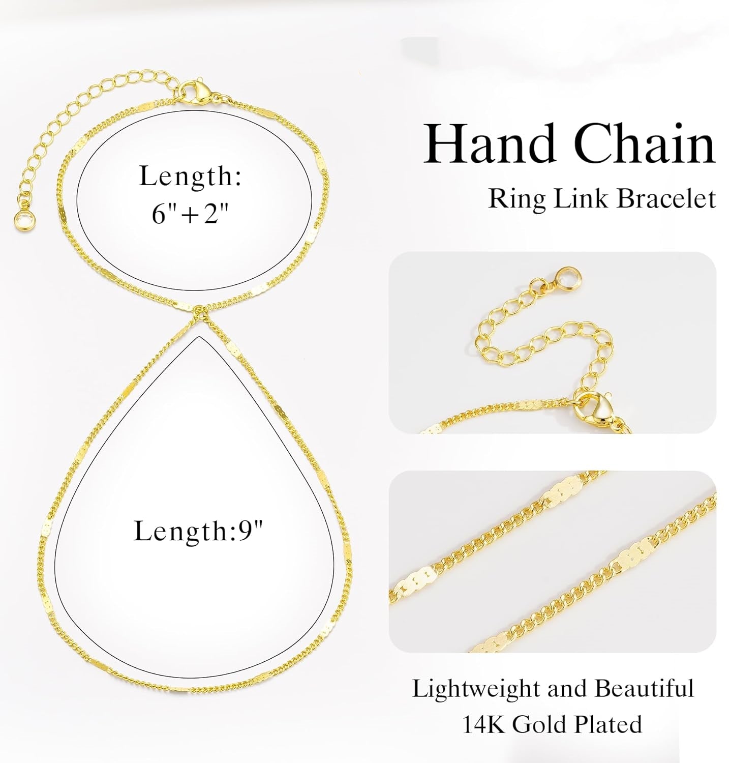 Turandoss Hand Chain Bracelet for Women - Layered Dainty Finger Ring Hand Chains 14K-Gold-Plated Link Bracelets Jewelry Trendy for Women Accessories