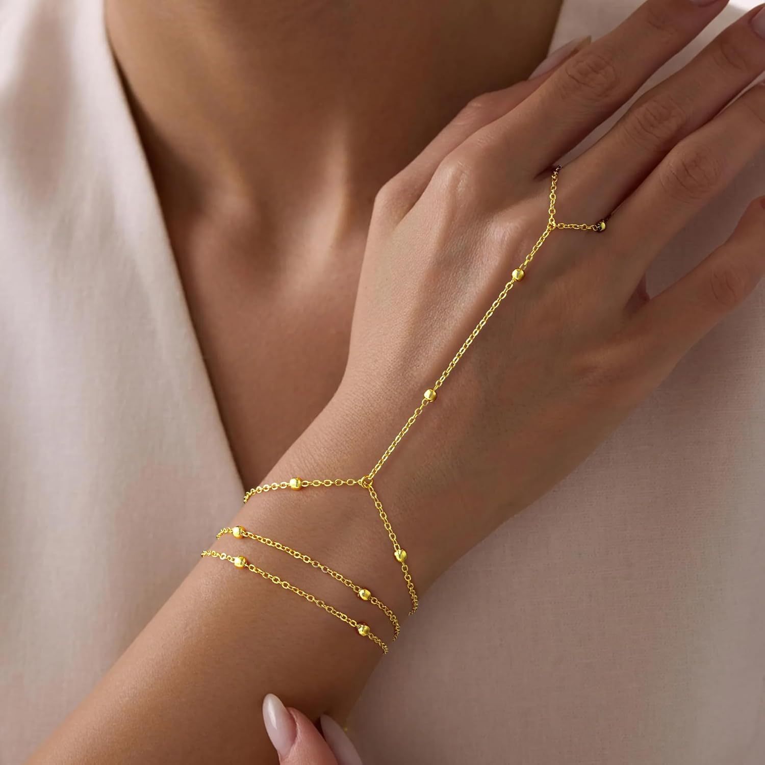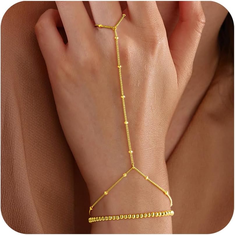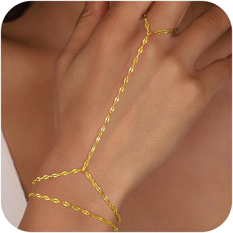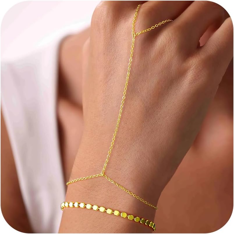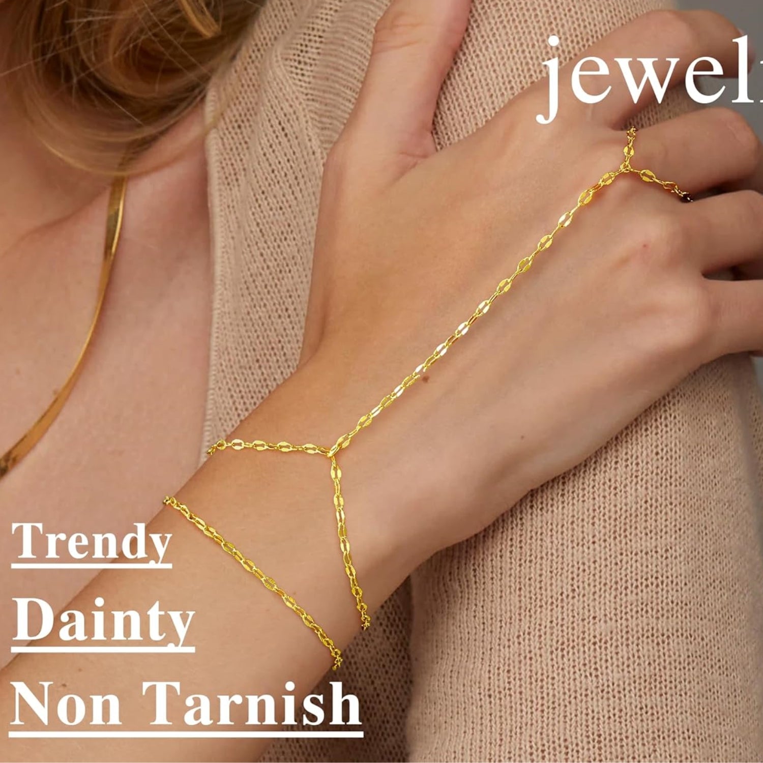 Turandoss Hand Chain Bracelet for Women - Layered Dainty Finger Ring Hand Chains 14K-Gold-Plated Link Bracelets Jewelry Trendy for Women Accessories