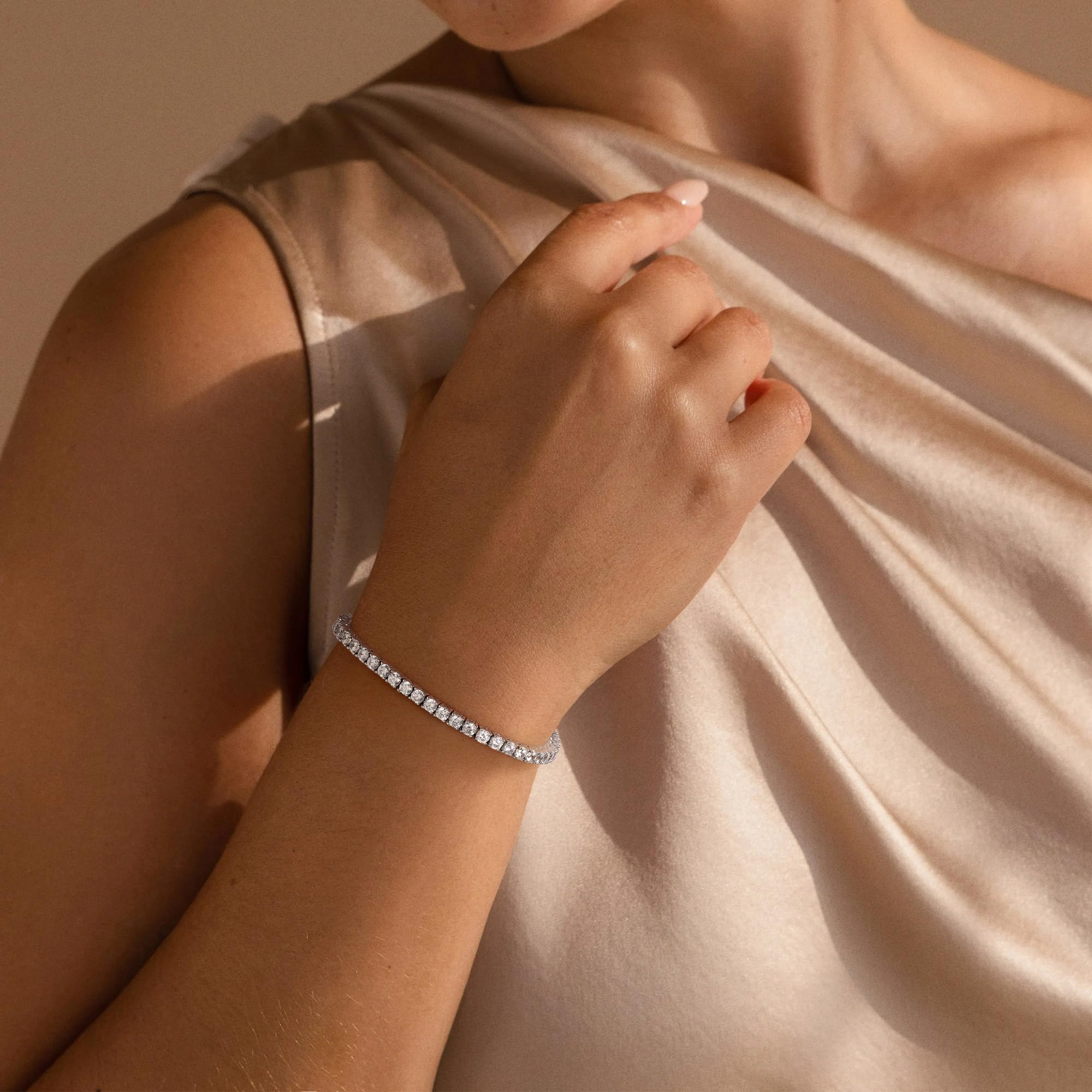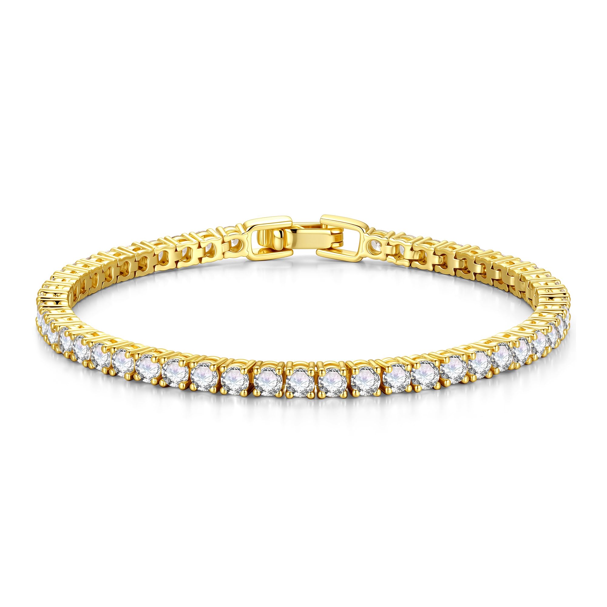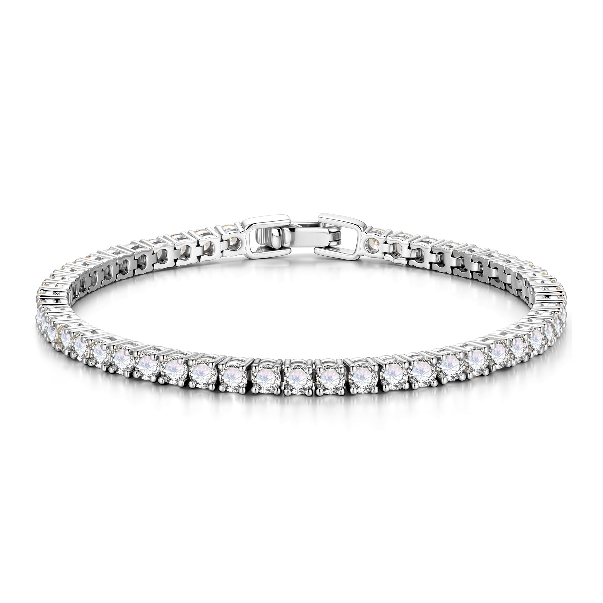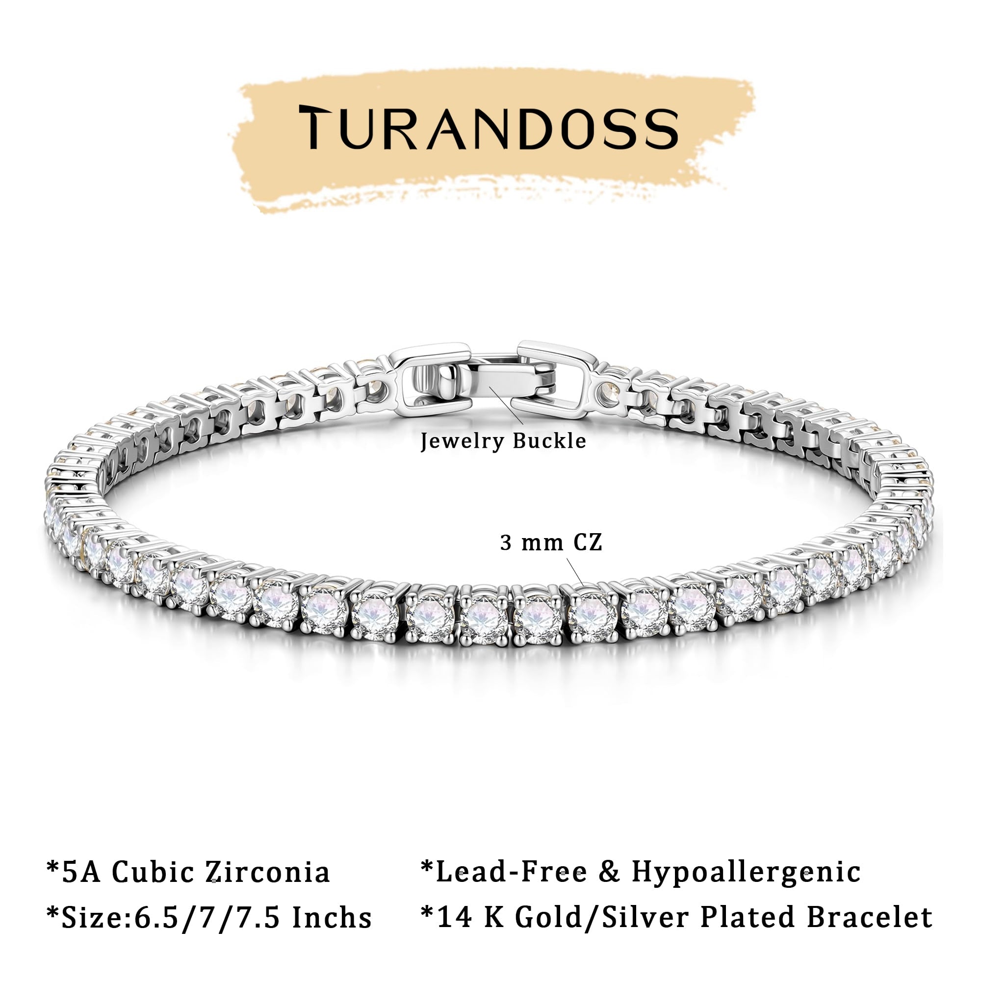 Turandoss Silver-Plated Cubic Zirconia Classic Tennis Bracelets for Women - 3Mm Cz 14K-14K-White Gold-Plated-Plated Bracelett for Women 7.5 Inch