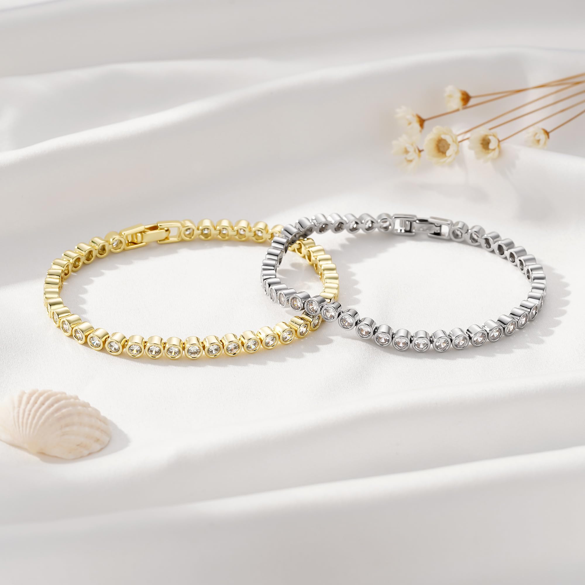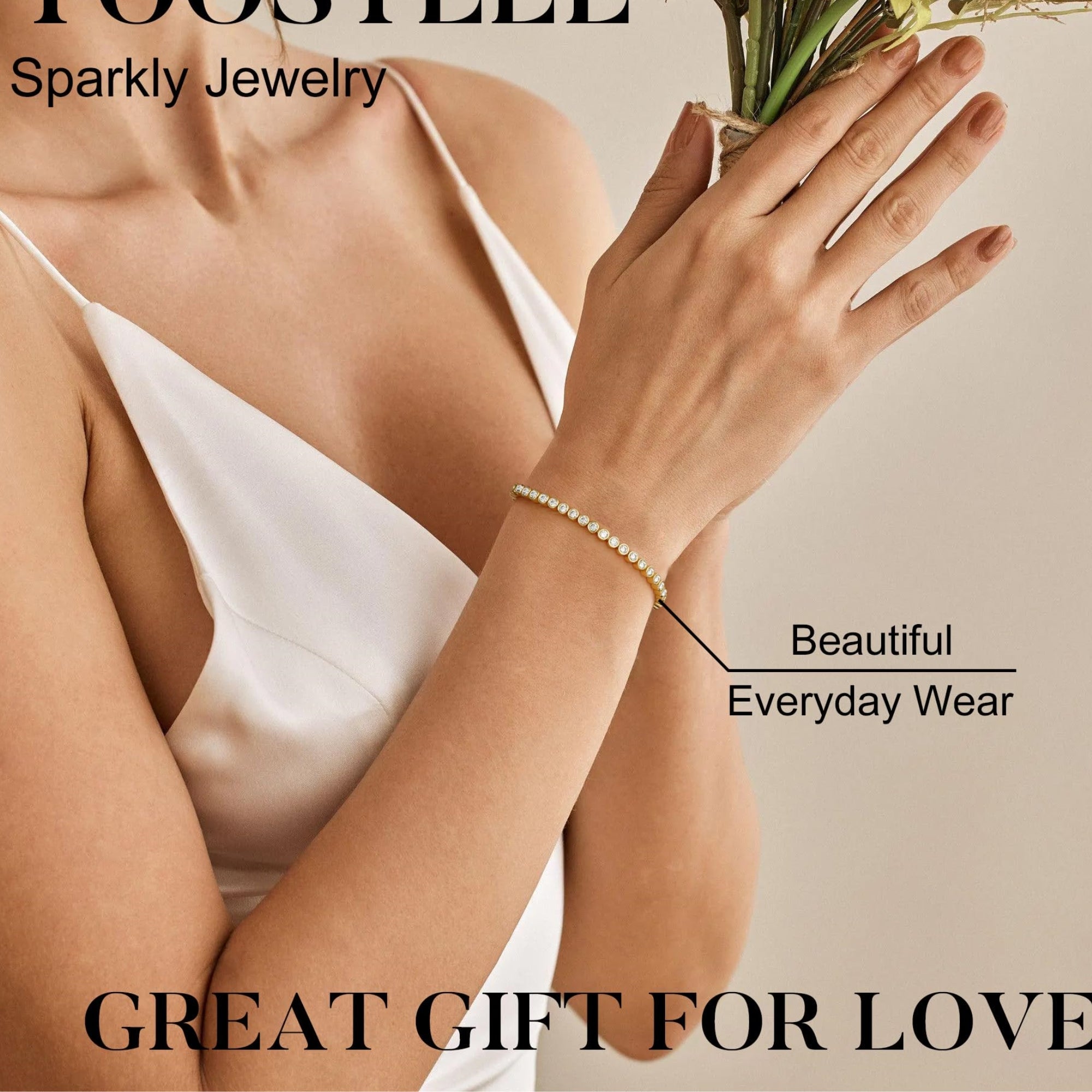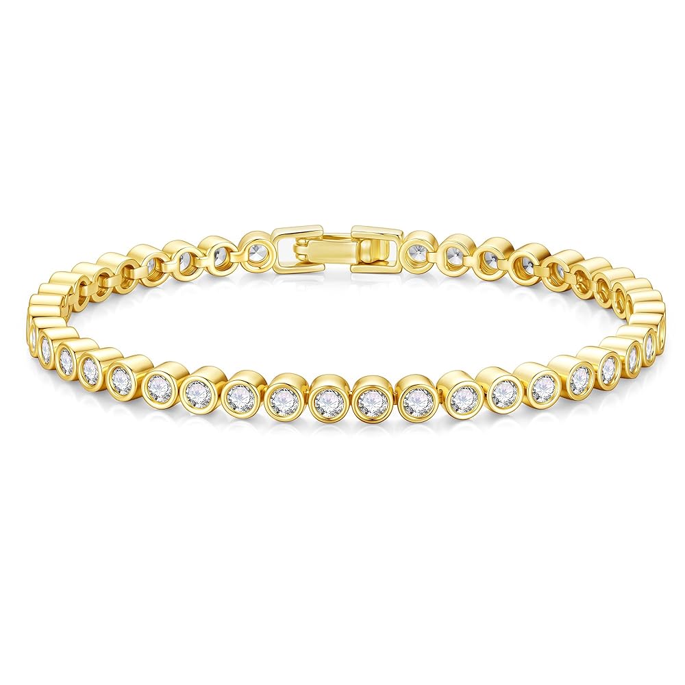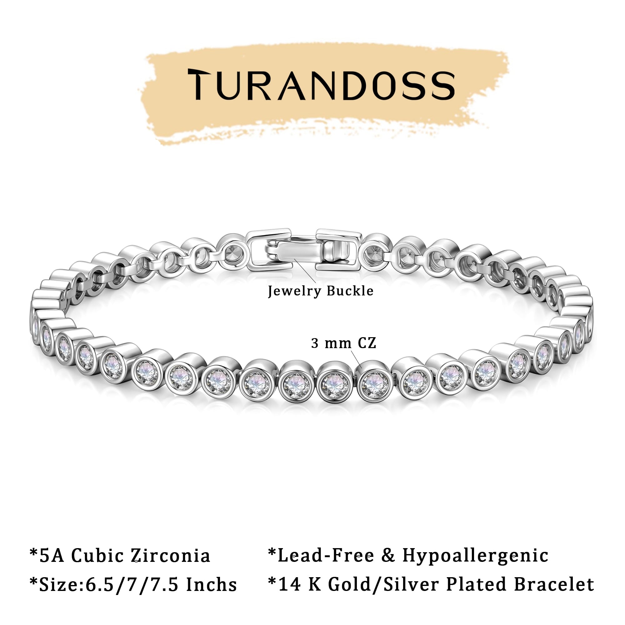 Turandoss Silver-Plated Cubic Zirconia Tennis Bracelets for Women - 3Mm Cz Classic 14K-White Gold-Plated-Plated Bracelett for Women 7.5 Inch Christmas
