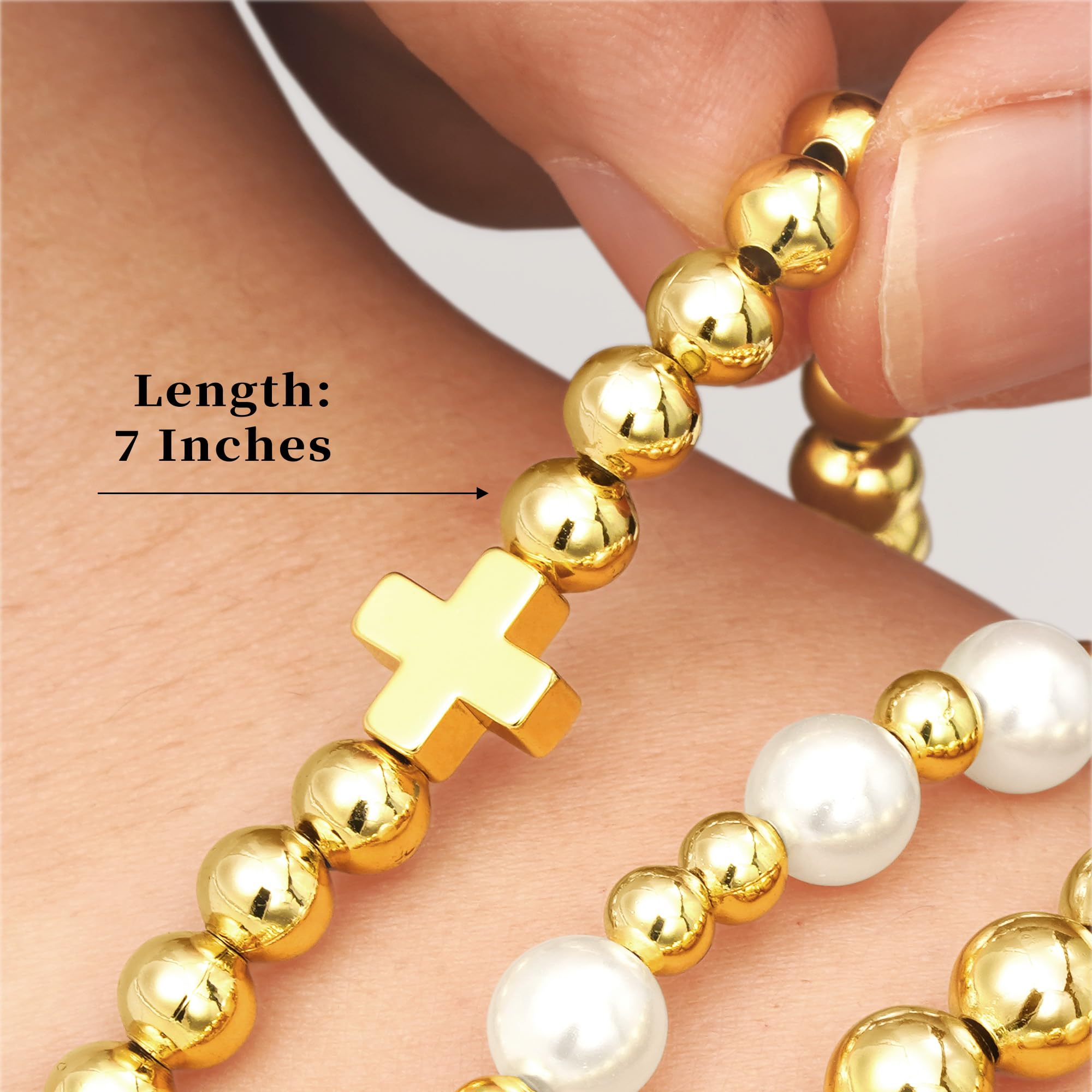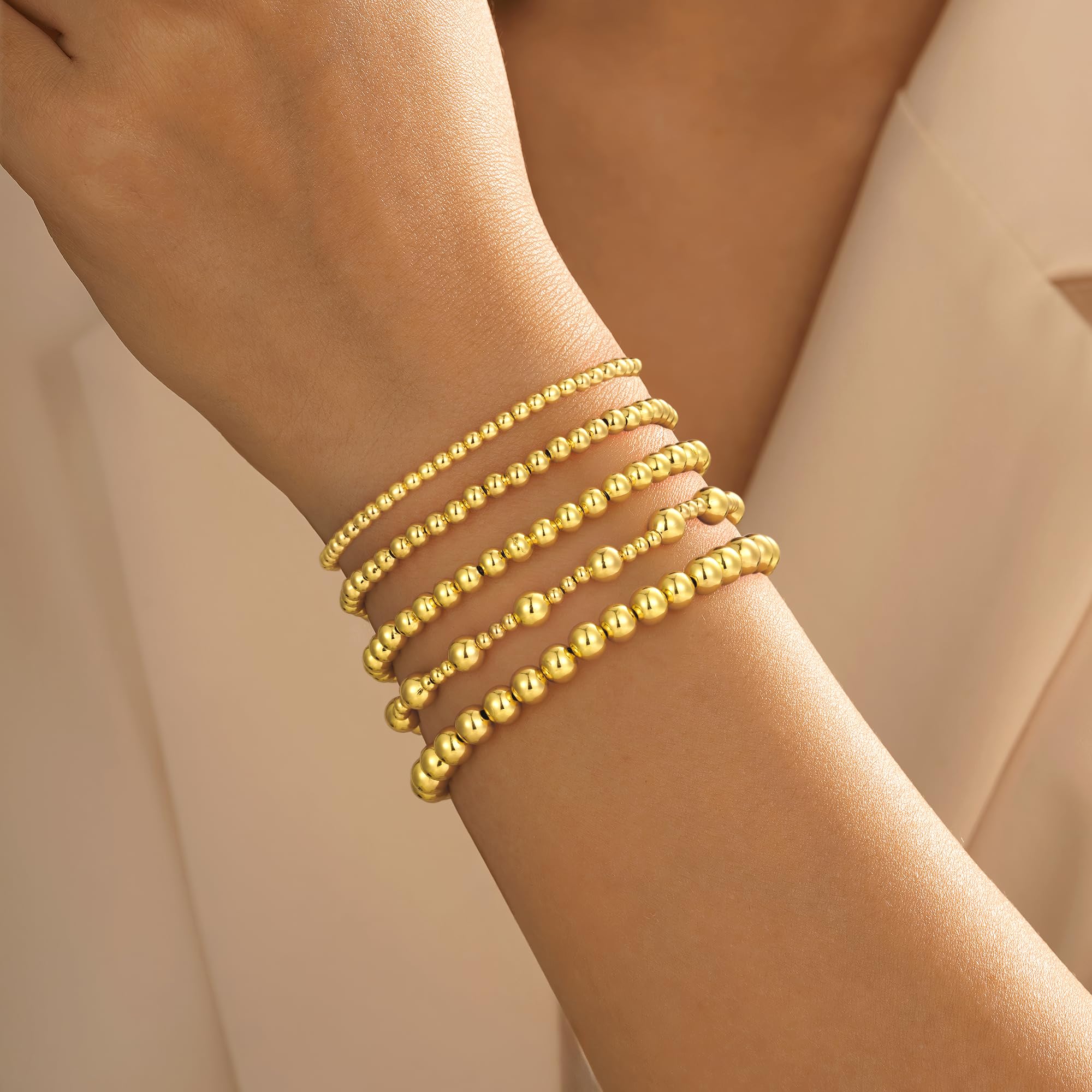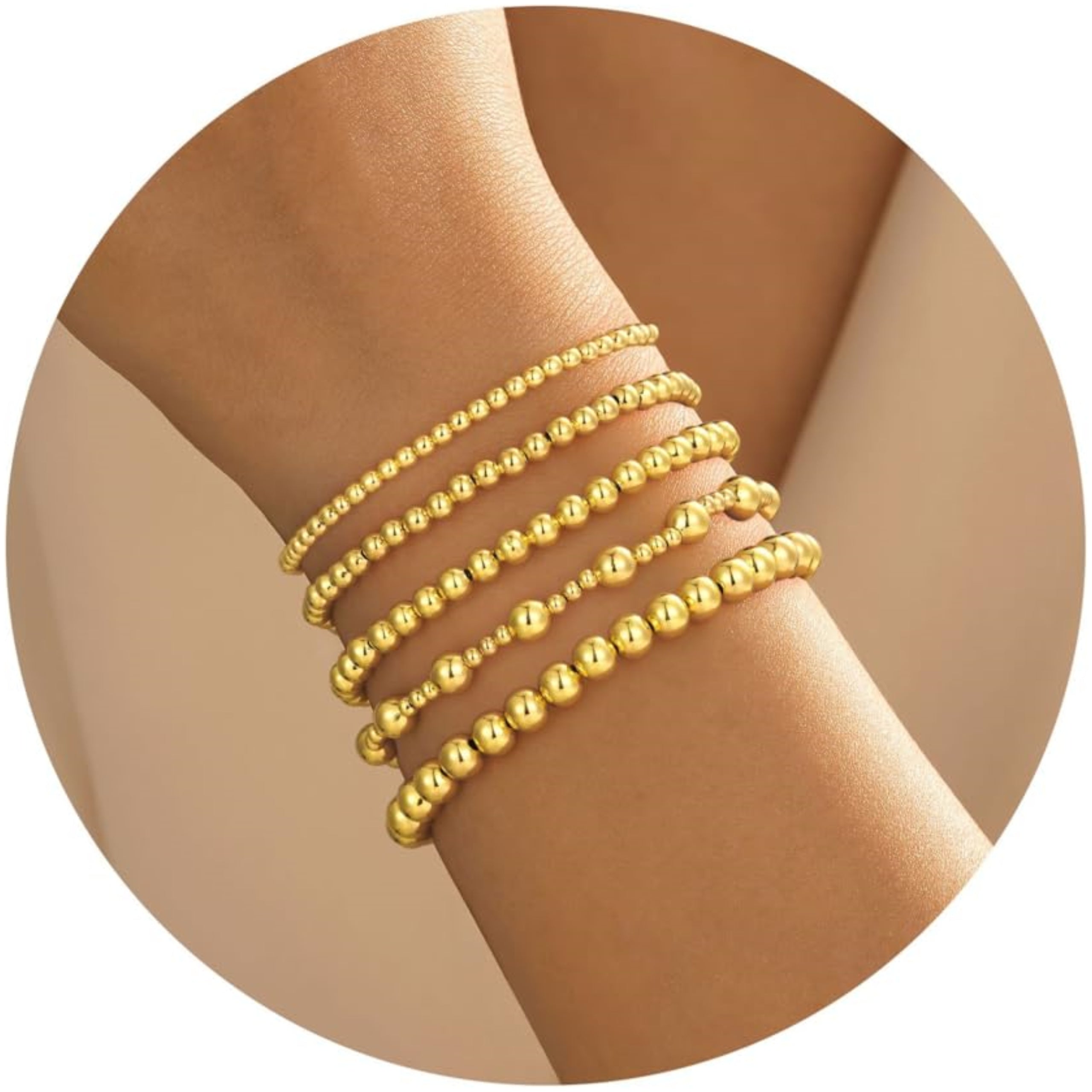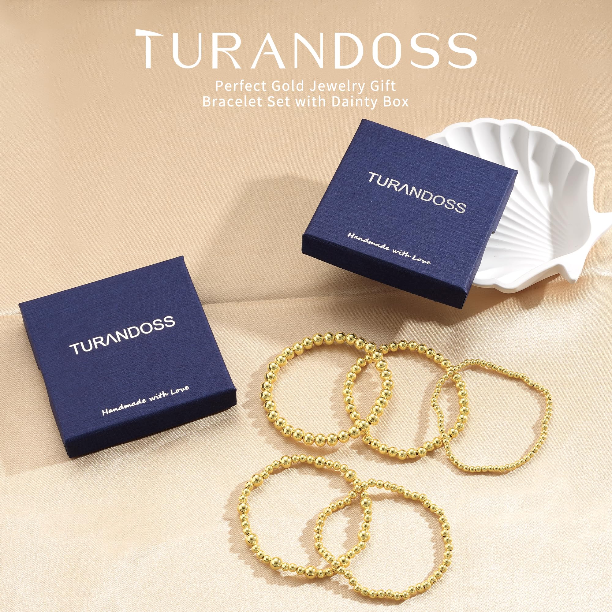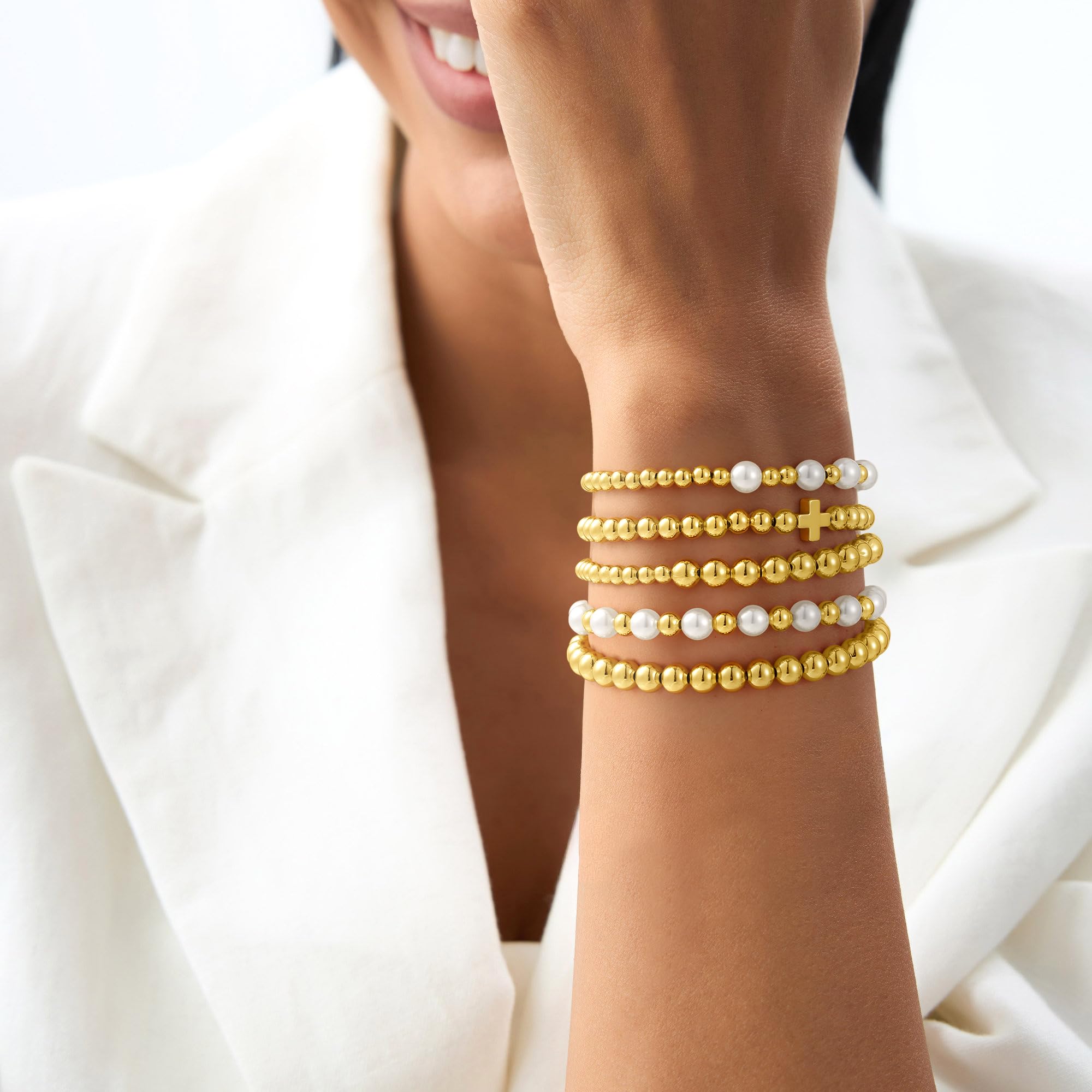 Turandoss 14K Gold Plated Bracelets for Women Trendy - 5Pcs Gold Pearl Heart Beaded Bracelet for Women, Layered Stackable Bracelets Gold Jewelry, Birthday Gifts for Her Mom Girlfriend Wife