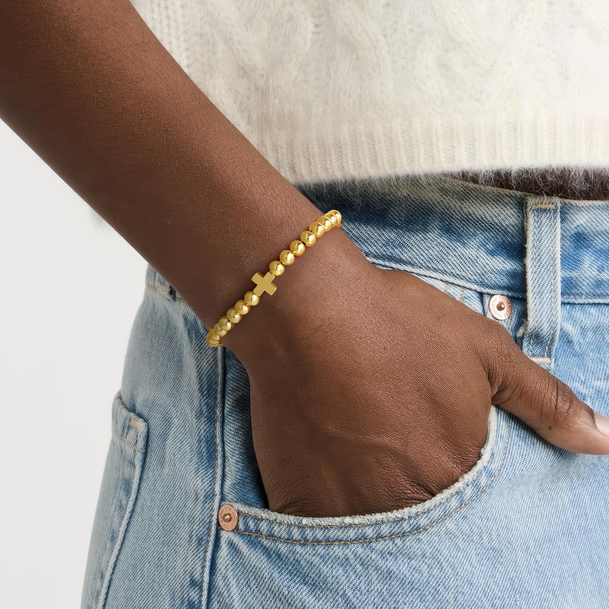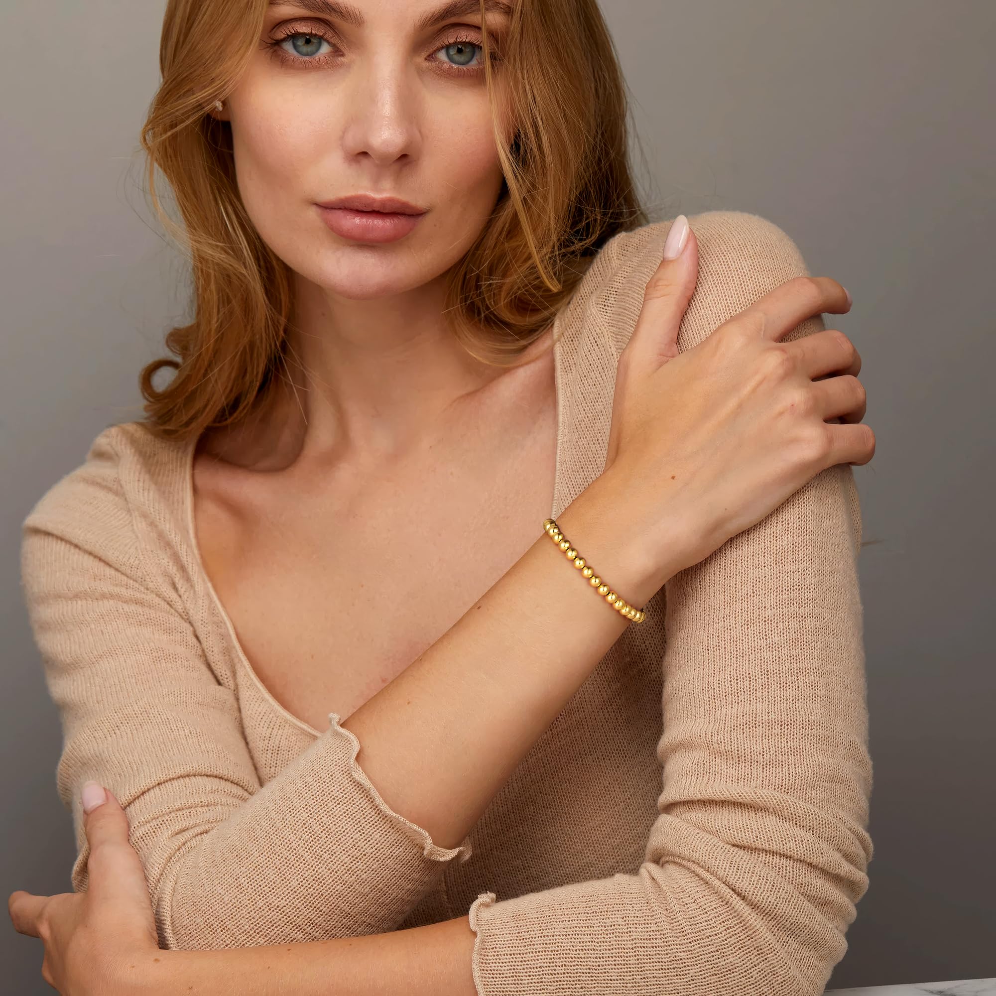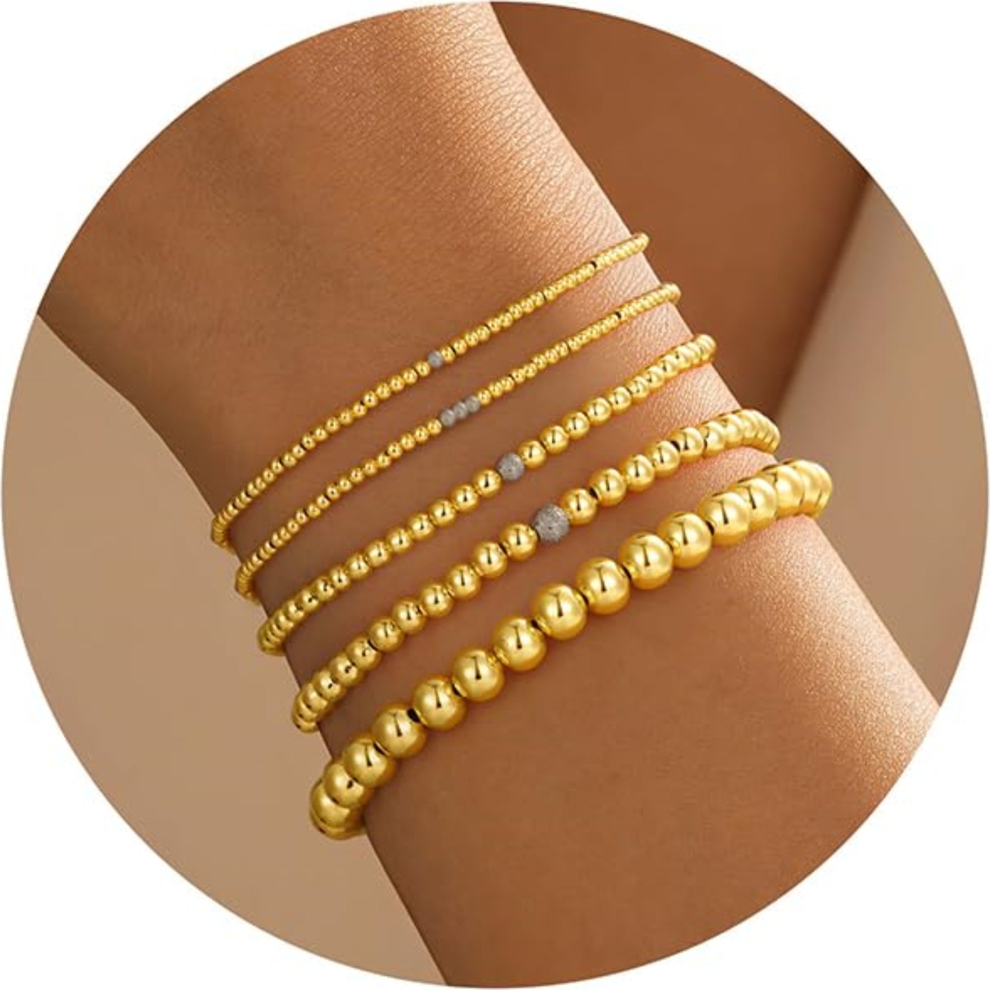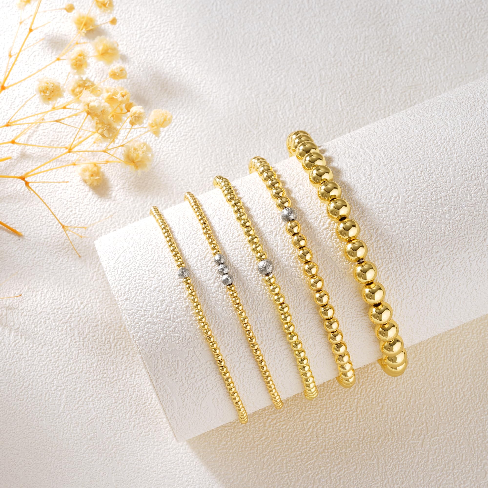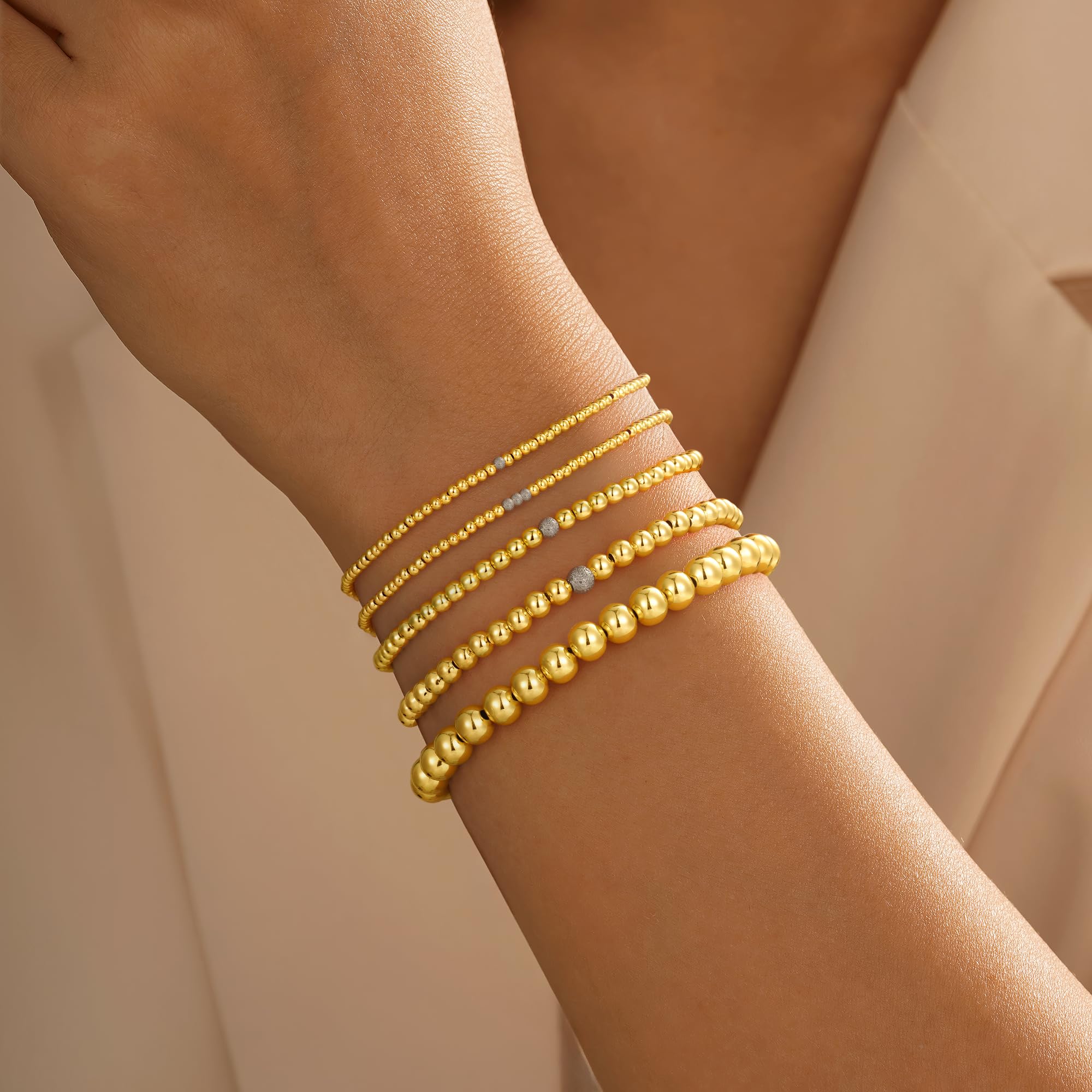 Turandoss 14K Gold Plated Bracelets for Women Trendy - 5Pcs Gold Pearl Heart Beaded Bracelet for Women, Layered Stackable Bracelets Gold Jewelry, Birthday Gifts for Her Mom Girlfriend Wife