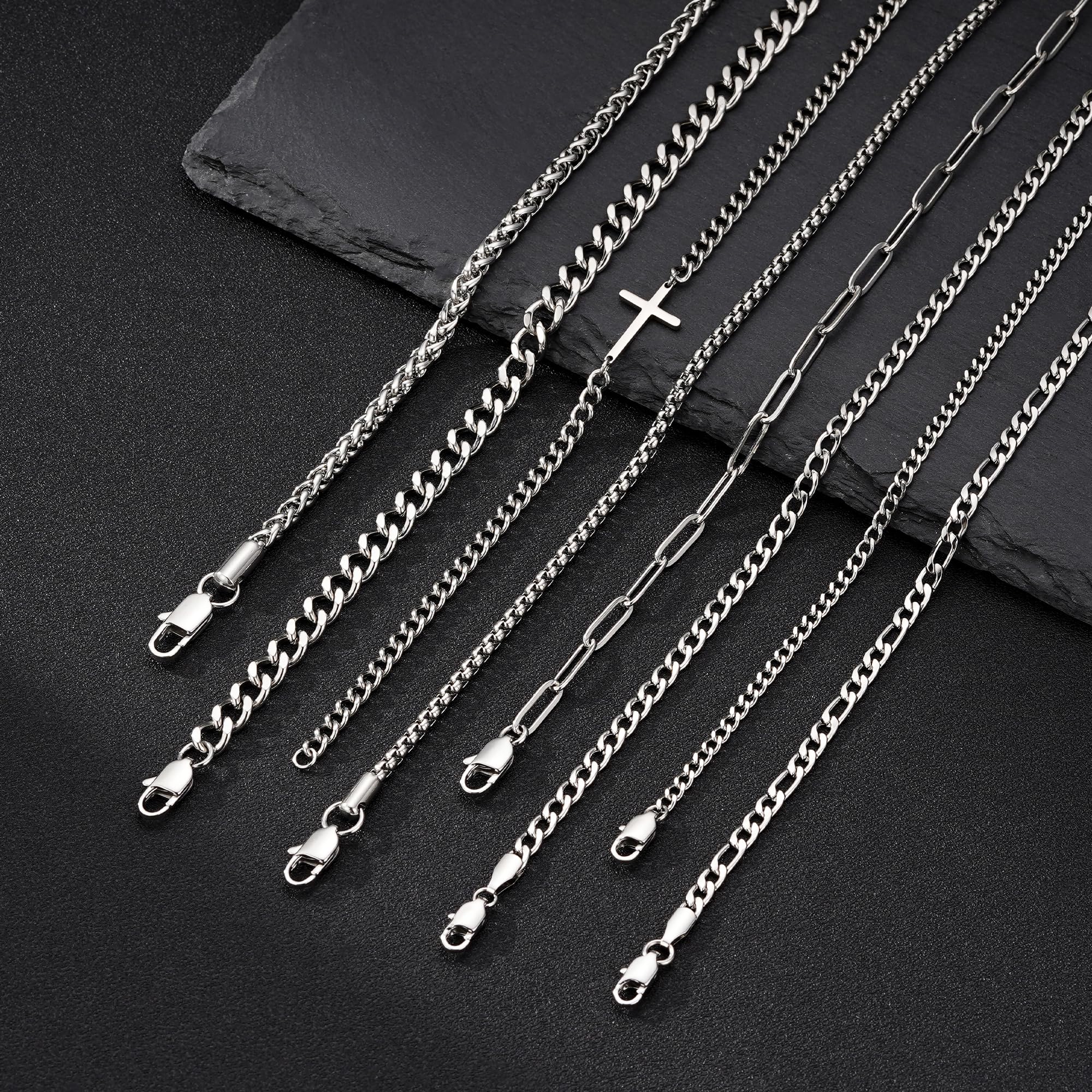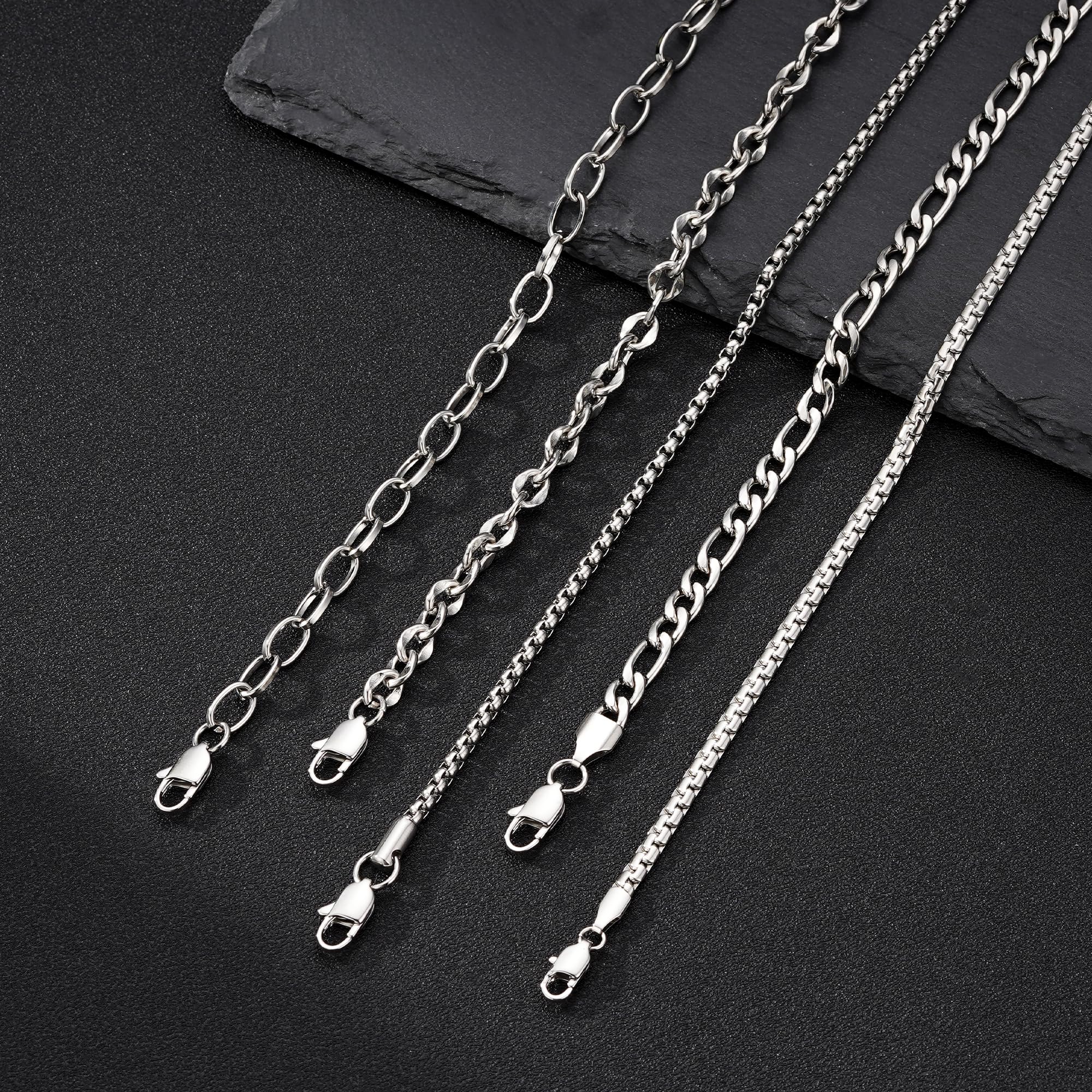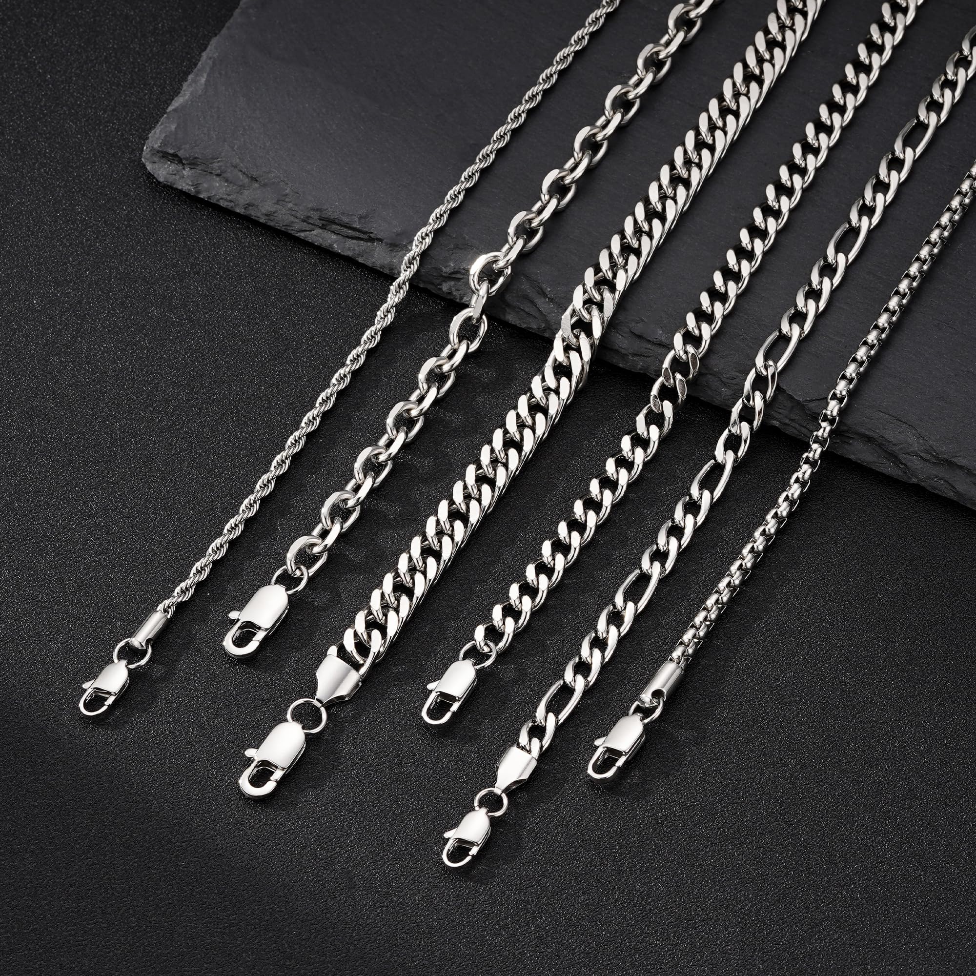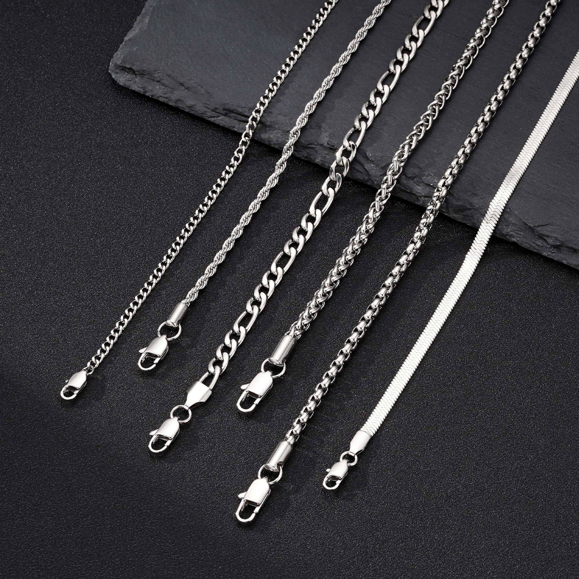 Turandoss Silver Figaro Chain Bracelets for Men - Stainless Steel Figaro Rope Link Bracelet Stack Chain Silver Bracelets Set Trendy Jewelry Gifts for Mens 8.3 Inches