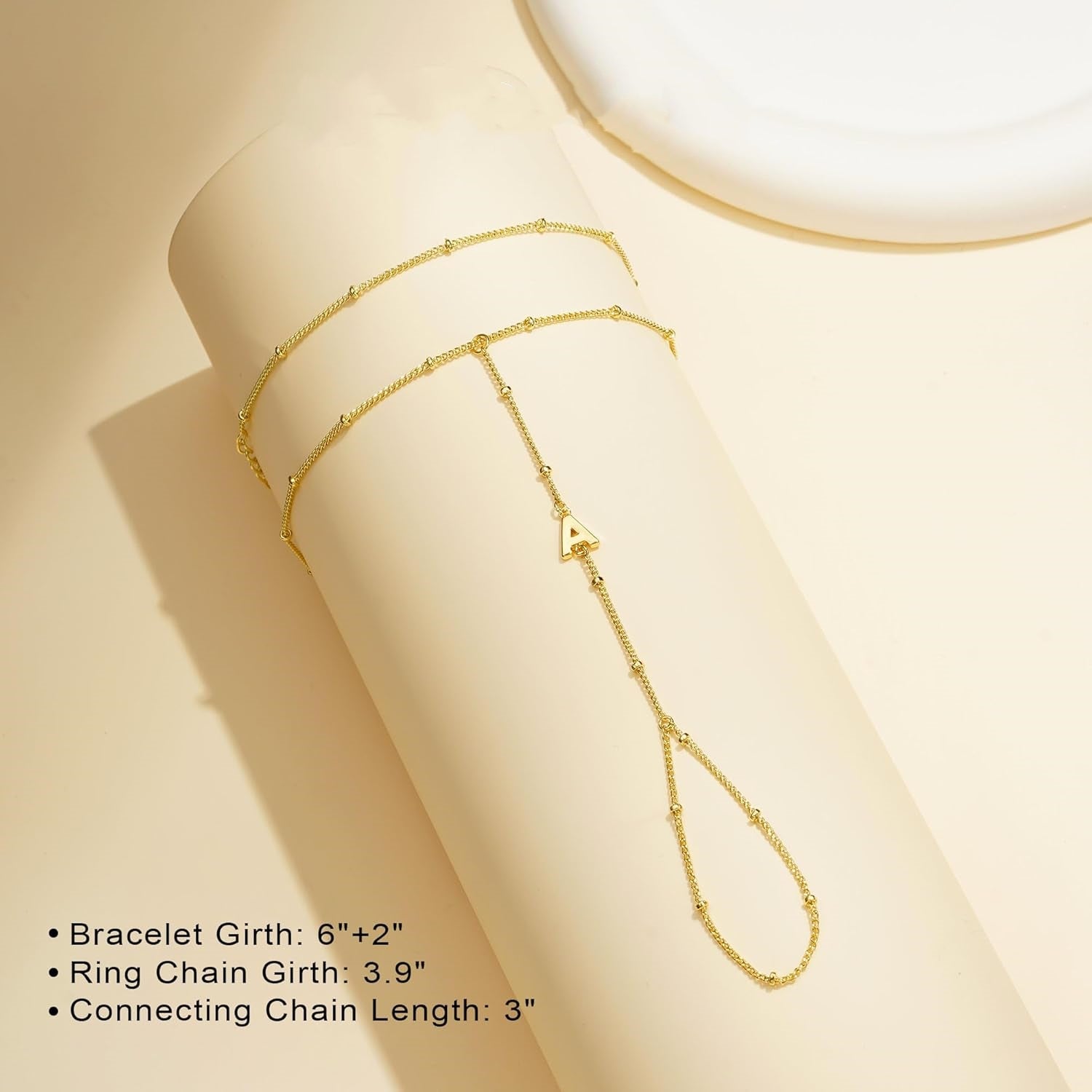 Turandoss Initial Hand Chain for Women - Dainty Gold Ring Bracelet Cuff Hand Chain for Women Trendy Letter T Initial Link Charm Bracelets Personalized Gold Jewelry Accessories Birthday Gift for Women