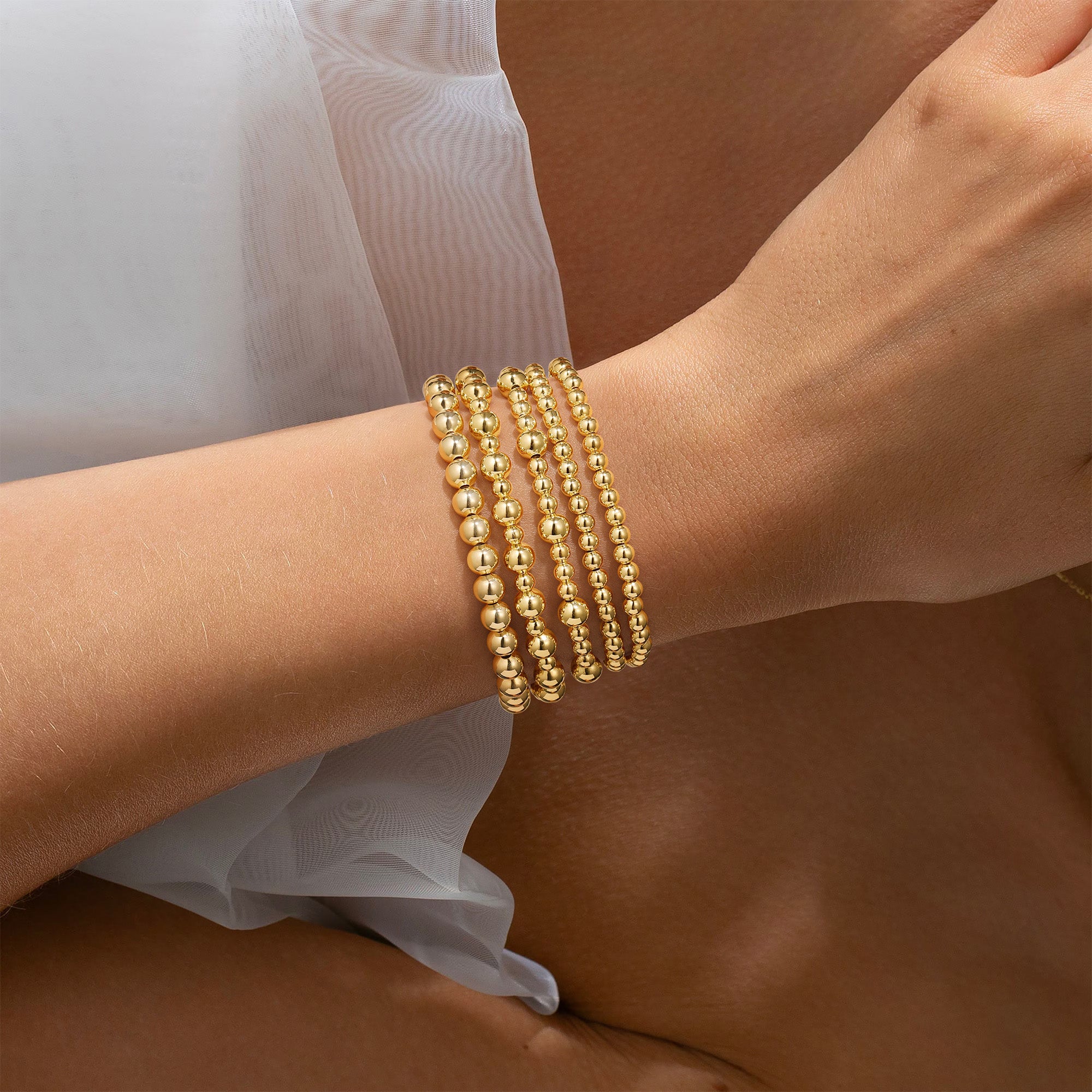 Turandoss 5PCS 14K Gold Plated Beaded Bracelets for Women Girls Stackable Stretch Beads Non Tarnish Layered Jewelry Set Birthday Gifts for Her