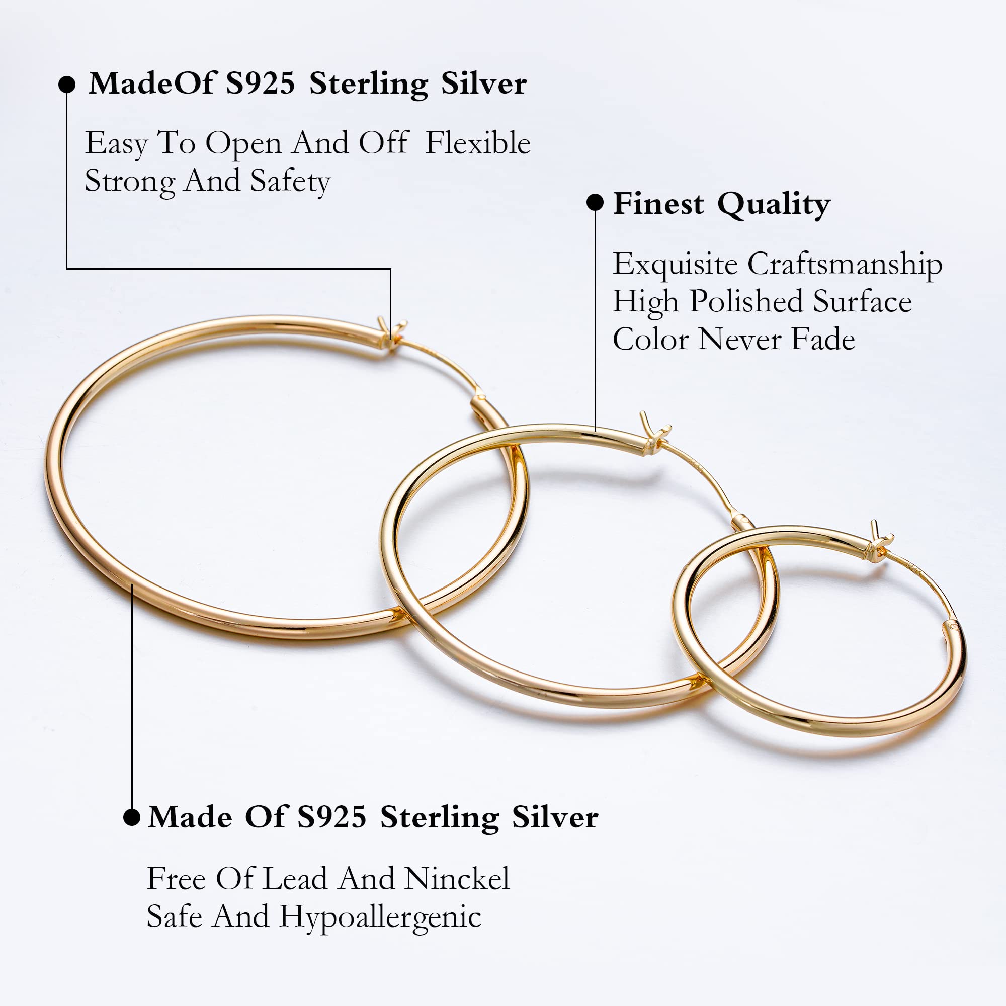 Material: Hoop earrings are plated with high-quality 14k gold and feature a 925 Sterling Silver Post .