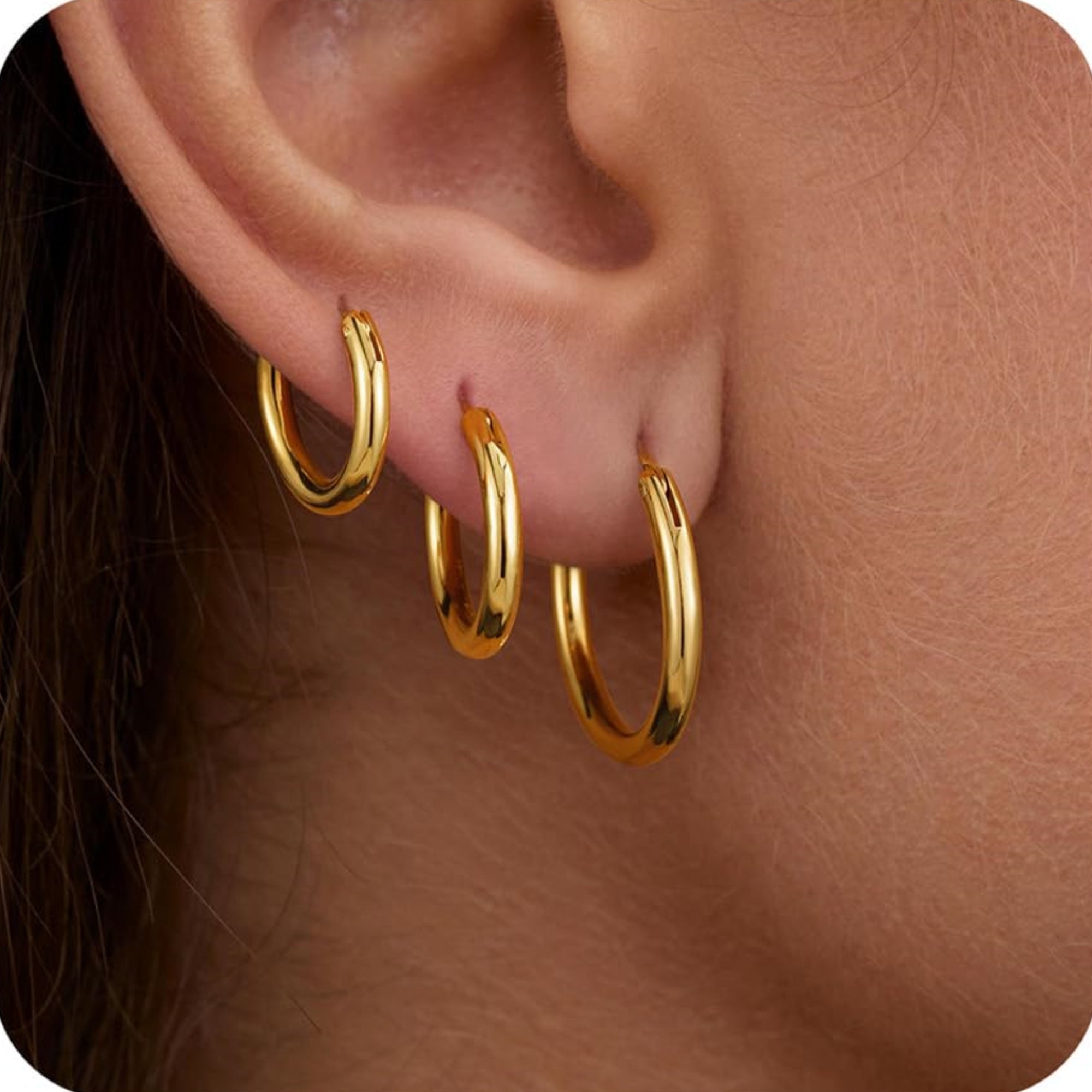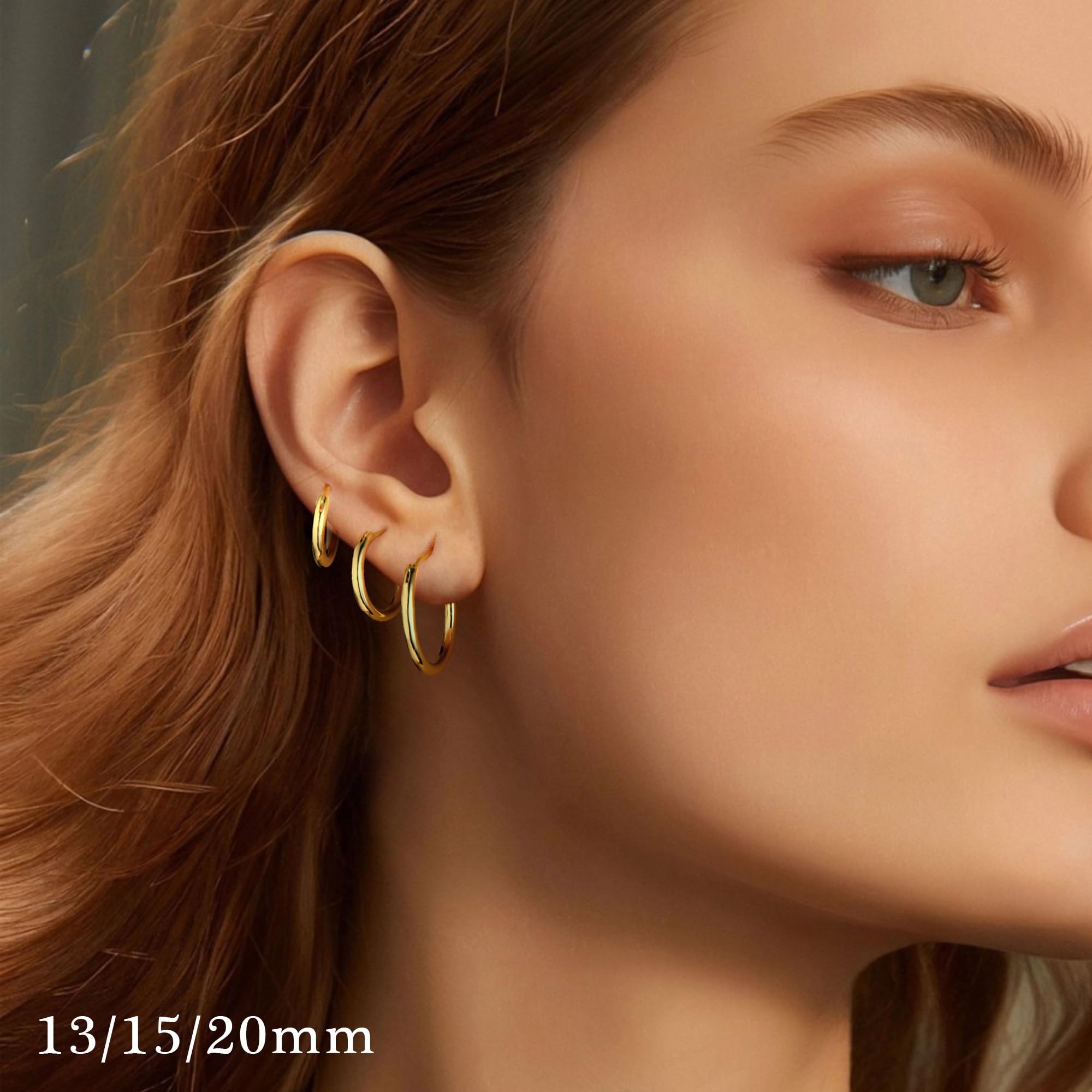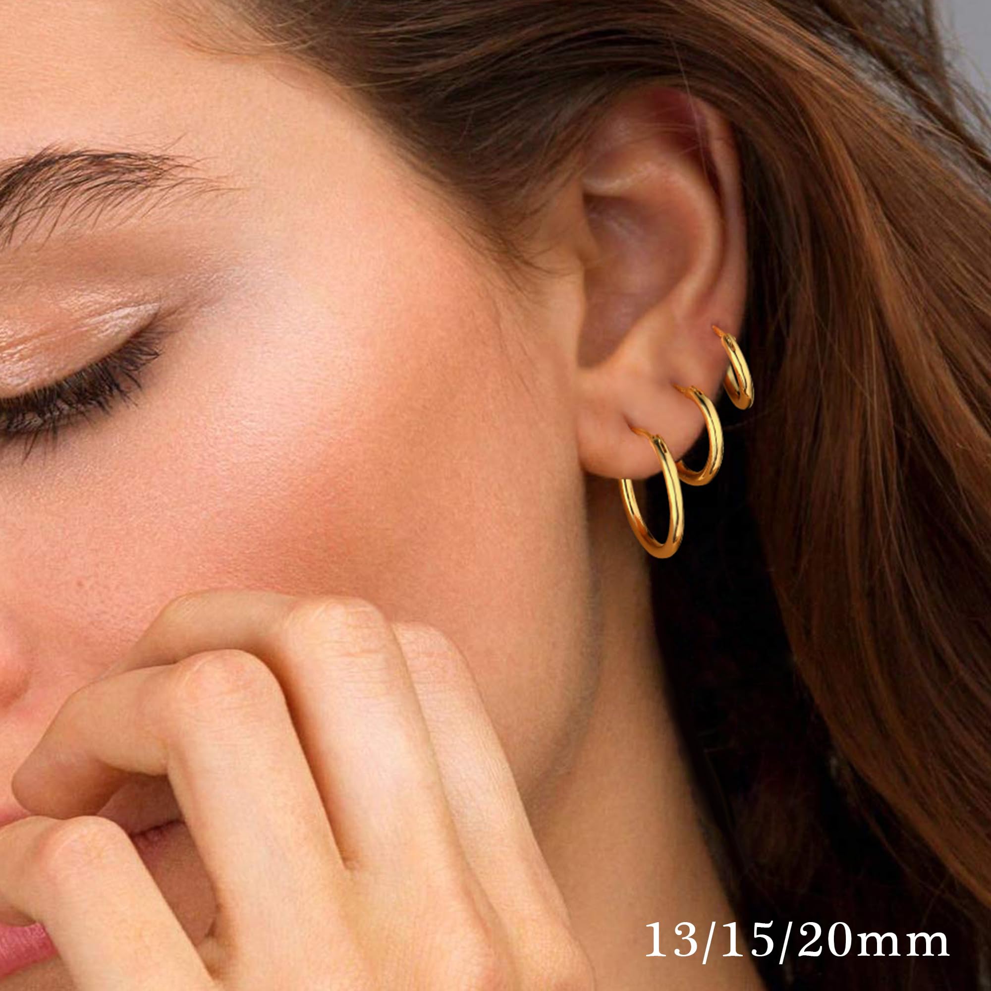 Turandoss Thick Gold Plated Chunky Small Hollow Tube Hoops Earrings for Women Nickel Free Hypoallergenic Lightweight Jewelry Birthday Gift for Women 13/15/20/25/30/40Mm