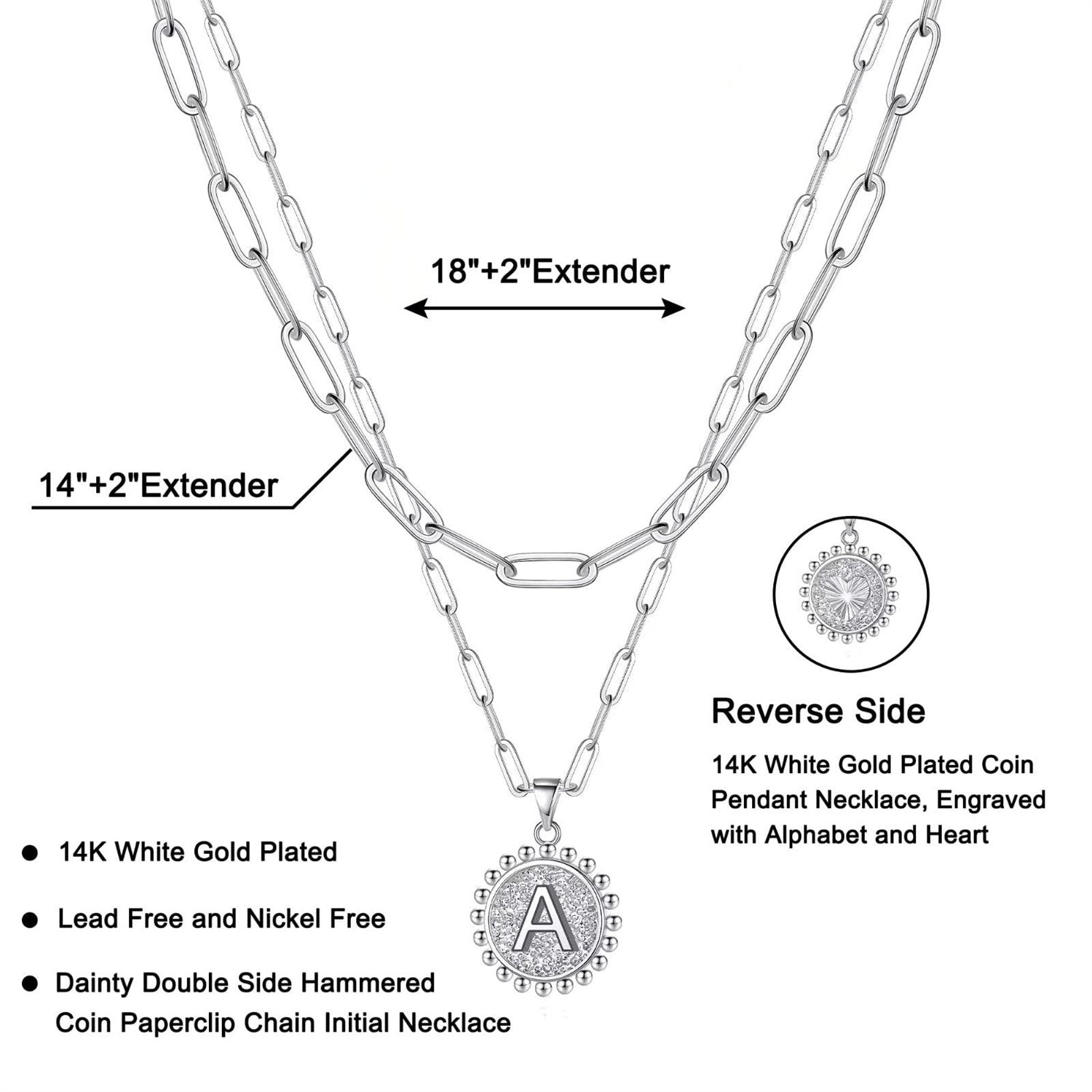 Turandoss 14K Gold Plated Layered Initial Pendant Necklace for Women Letter A-Z Fashion Adjustable Paperclip Link Coin Jewelry Birthday Gifts for Women Teen Girls